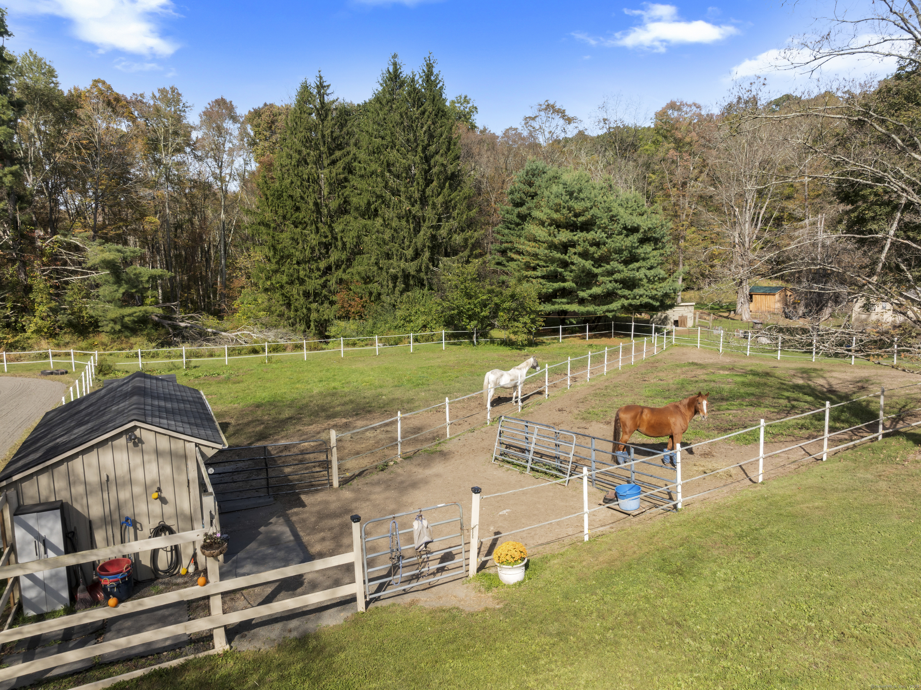 Charming Gentleman's Farm on 5.76 Acres. Welcome to this beautifully maintained gentleman's farm, perfectly set on 5.76 level acres of open pasture and riding space. Ideal for horse enthusiasts, the property features four barns with a total of 10 stalls, two wash stalls, and a 20x60 meter riding arena with quality stone dust and sand footing. The grounds offer a wonderful mix of functionality and tranquility, providing ample room for turnout, training, and leisure. The main residence is a warm and inviting three-bedroom, two-bath ranch showcasing country charm with modern updates. Enjoy vaulted ceilings, two fireplaces, and woodstoves that create a cozy ambiance throughout. An attached one-bedroom in-law or apartment offers an open-concept living area-perfect for guests, extended family, or rental income potential. Outdoors, relax in your private backyard with space for entertaining, plus a thriving vegetable garden to complete the rural lifestyle. A rare opportunity to own a true horse lover's retreat where comfort meets countryside elegance.