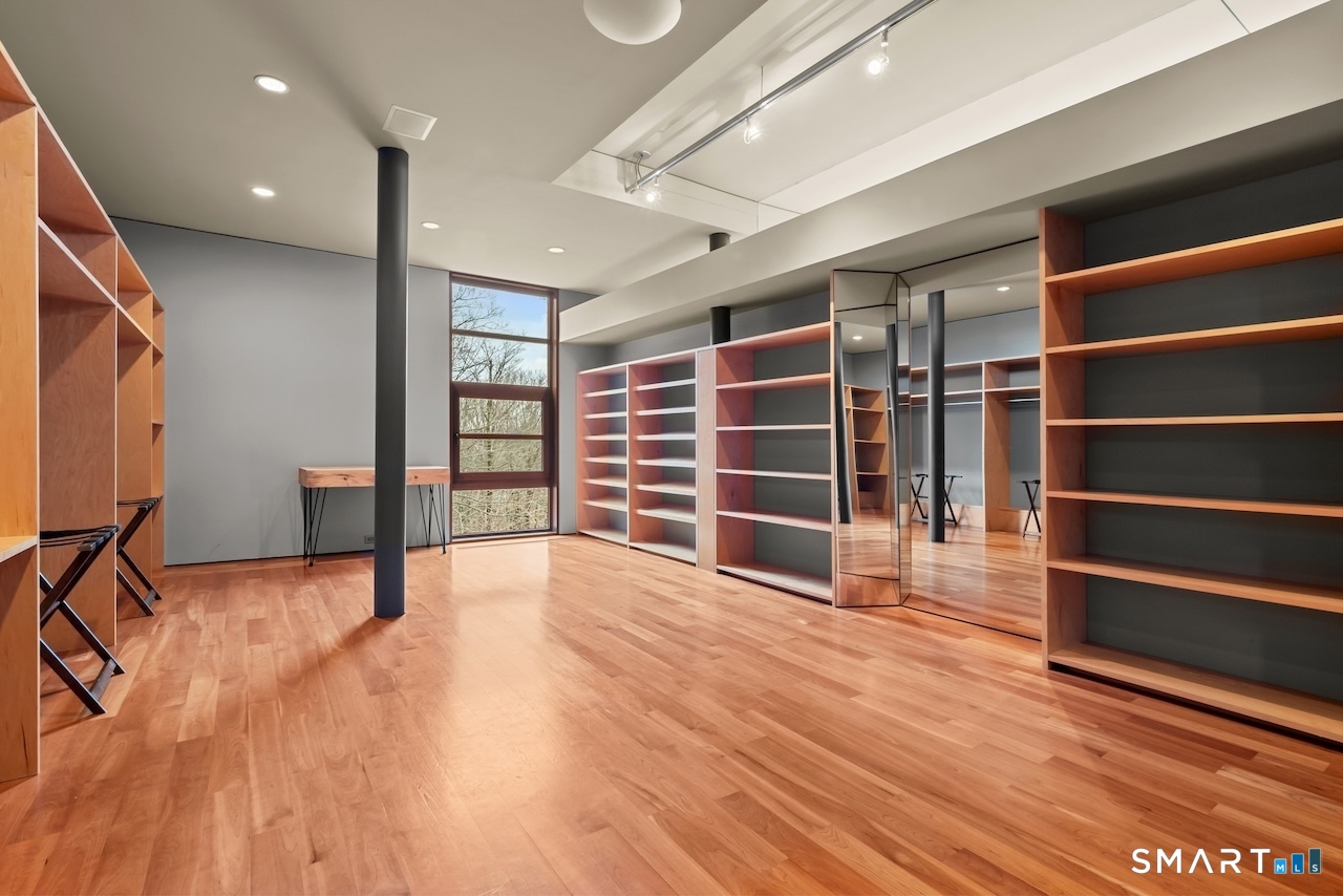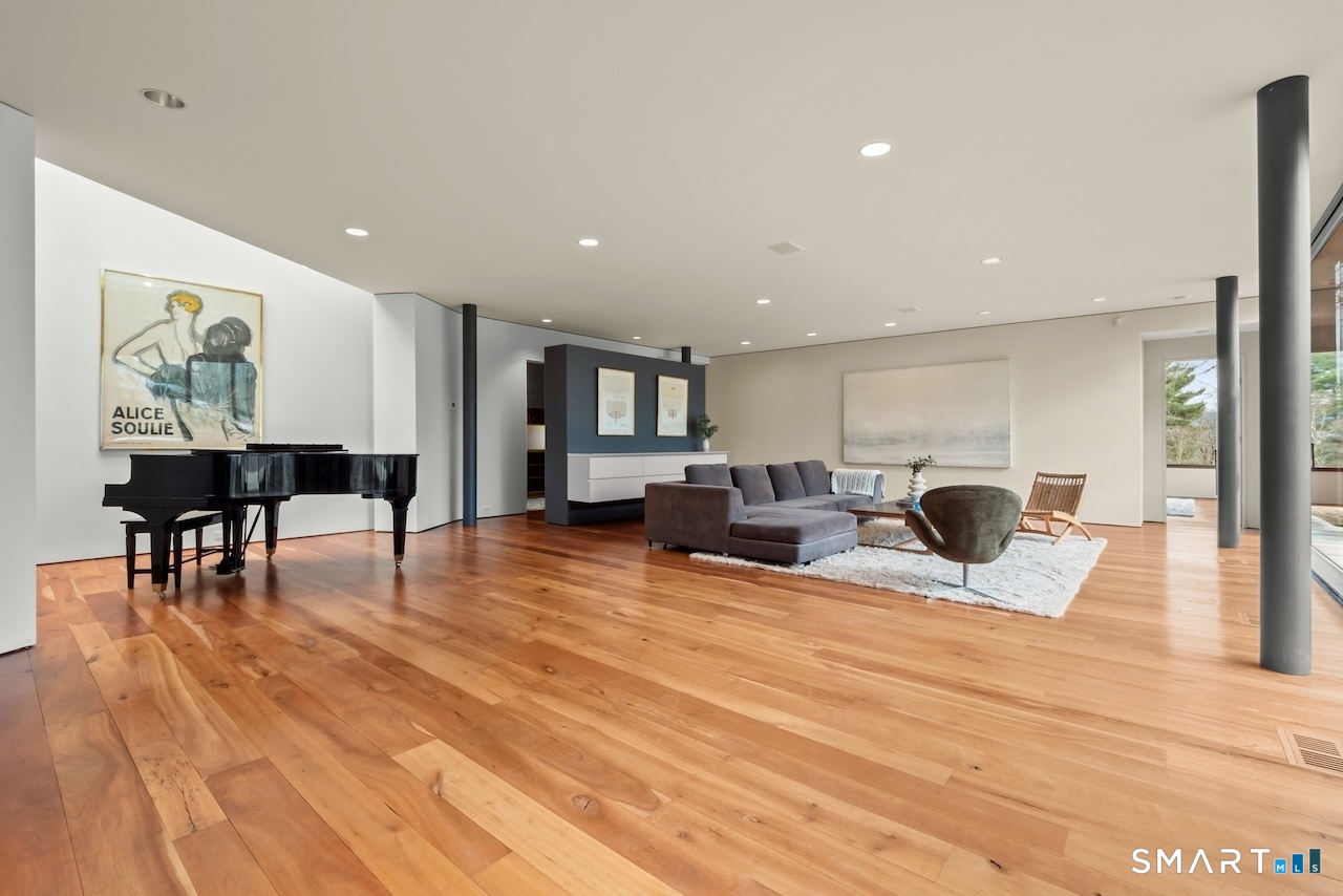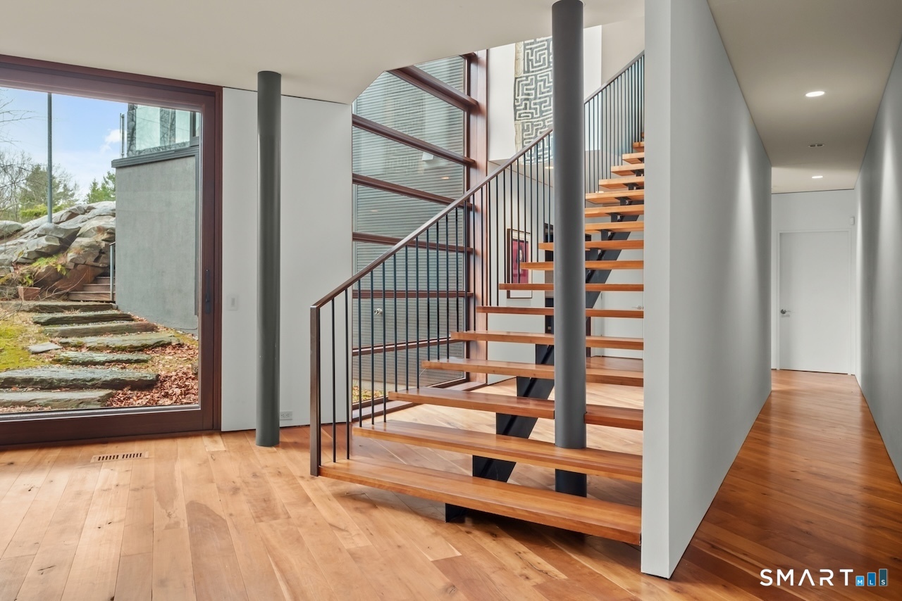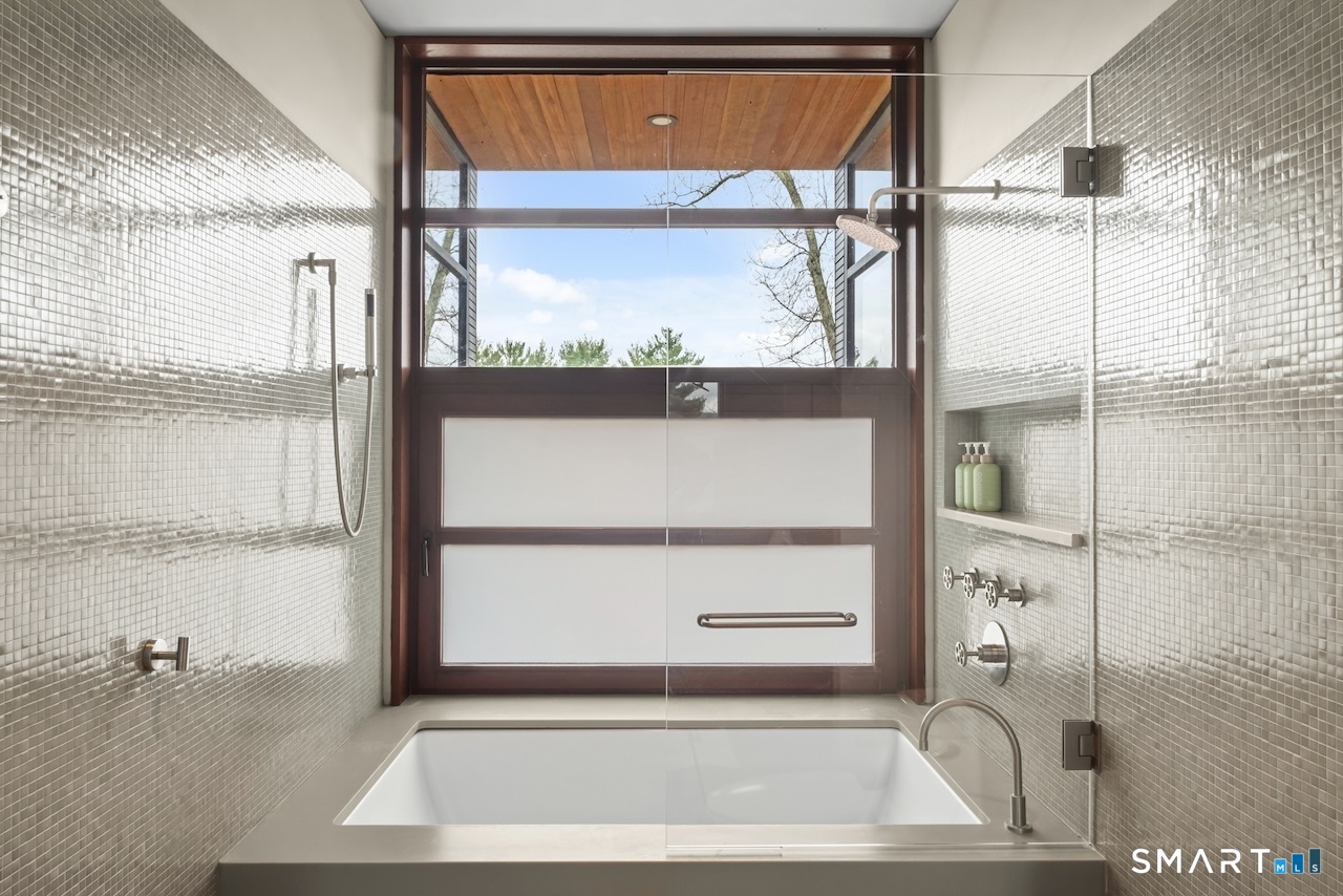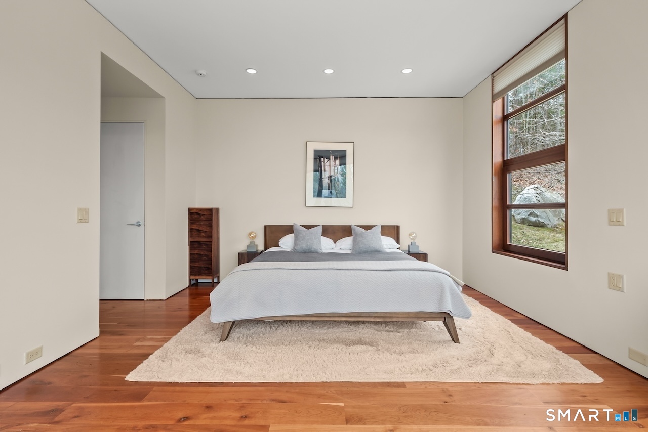 Experience a rare Zen-inspired retreat in the heart of the Berkshires, designed in harmony with its natural surroundings. Set on nearly 120 acres of protected land with striking rock outcroppings, sweeping mountain views, and ~1,000 feet along the Williams River, this architecturally significant Contemporary offers exceptional privacy just minutes from Great Barrington. Designed by Steven Haas, the home blends steel, glass, concrete, and wood, with soaring interiors and Sorpetaler sliding glass walls that open seamlessly to nature. Expansive decks overlook a 25-meter heated saltwater lap pool, hot tub, and fire pit. The open chef's kitchen with oversized wood-burning fireplace anchors the home, while the living room offers a second fireplace and serene views. A glass and stone courtyard enhances the tranquil design. The primary suite is a private sanctuary with spa-like bath, dressing room, office/lounge, and its own deck. Guest accommodations throughout offer comfort and privacy. The lower level includes a billiards room, wet bar, and additional living space. A separate guest house features two bedrooms, kitchenette, living/dining area, and rooftop deck. The 3,000 sq ft recreation barn offers a full kitchen, loft, gym, and flexible gathering space. Eight miles of private trails lead to the Williams River, completing this exceptional retreat just 10 minutes from town.