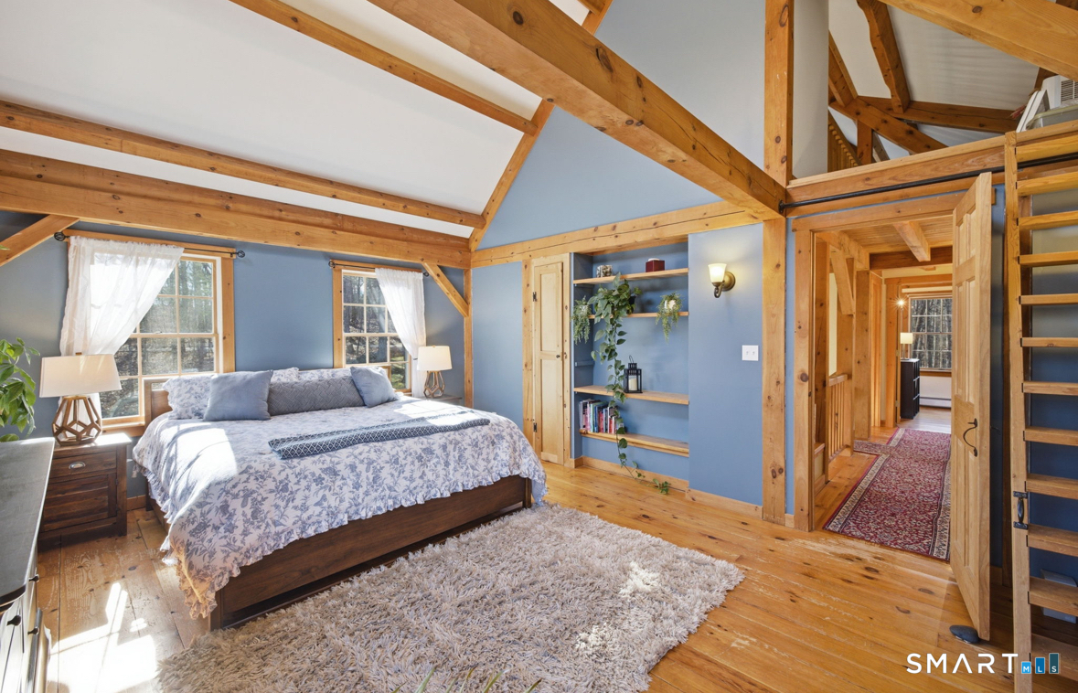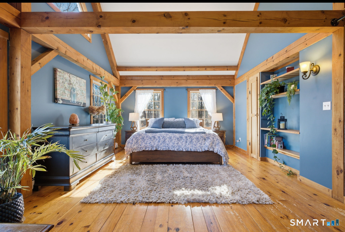 Welcome to 30 Bender Road, a remarkable timber-frame Colonial tucked away on a quiet backcountry road. This stunning home offers the perfect blend of privacy, character, and modern comfort. Set on 3.20 serene acres, the 3-bedroom, 2.5-bath property is surrounded by natural beauty and showcases exposed timber beams and rich wood flooring throughout. Step inside to a warm and inviting open-concept first floor filled with natural light. The spacious living area features a cozy wood-burning fireplace, creating the perfect gathering space, while the open stairwell enhances the home's architectural charm. The kitchen and dining areas flow seamlessly, making the space ideal for both everyday living and entertaining. Upstairs, the primary suite offers a peaceful retreat complete with a loft, a private full bath, and convenient in-suite laundry. Two additional bedrooms provide ample space for family or guests. The finished walkout basement expands the living area and is perfect for a home office, gym, or potential additional bedroom. Outside, enjoy the tranquility of the private setting from the large deck overlooking the expansive yard. Thoughtfully designed retaining walls and a storage shed add both function and appeal to the outdoor space. This is a rare opportunity to own a distinctive timber-frame home in a truly private and picturesque setting.