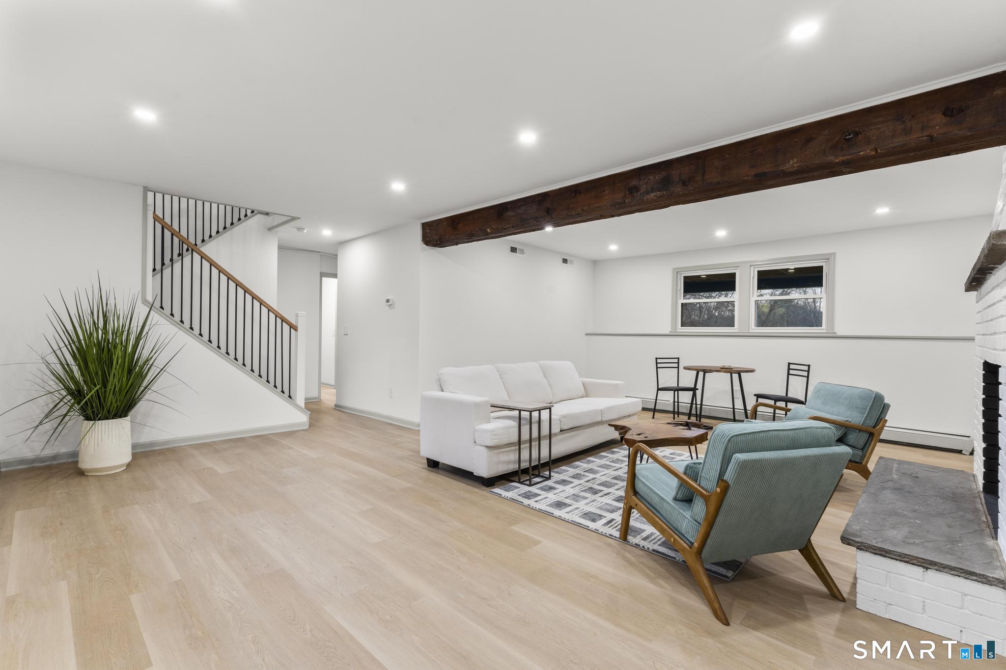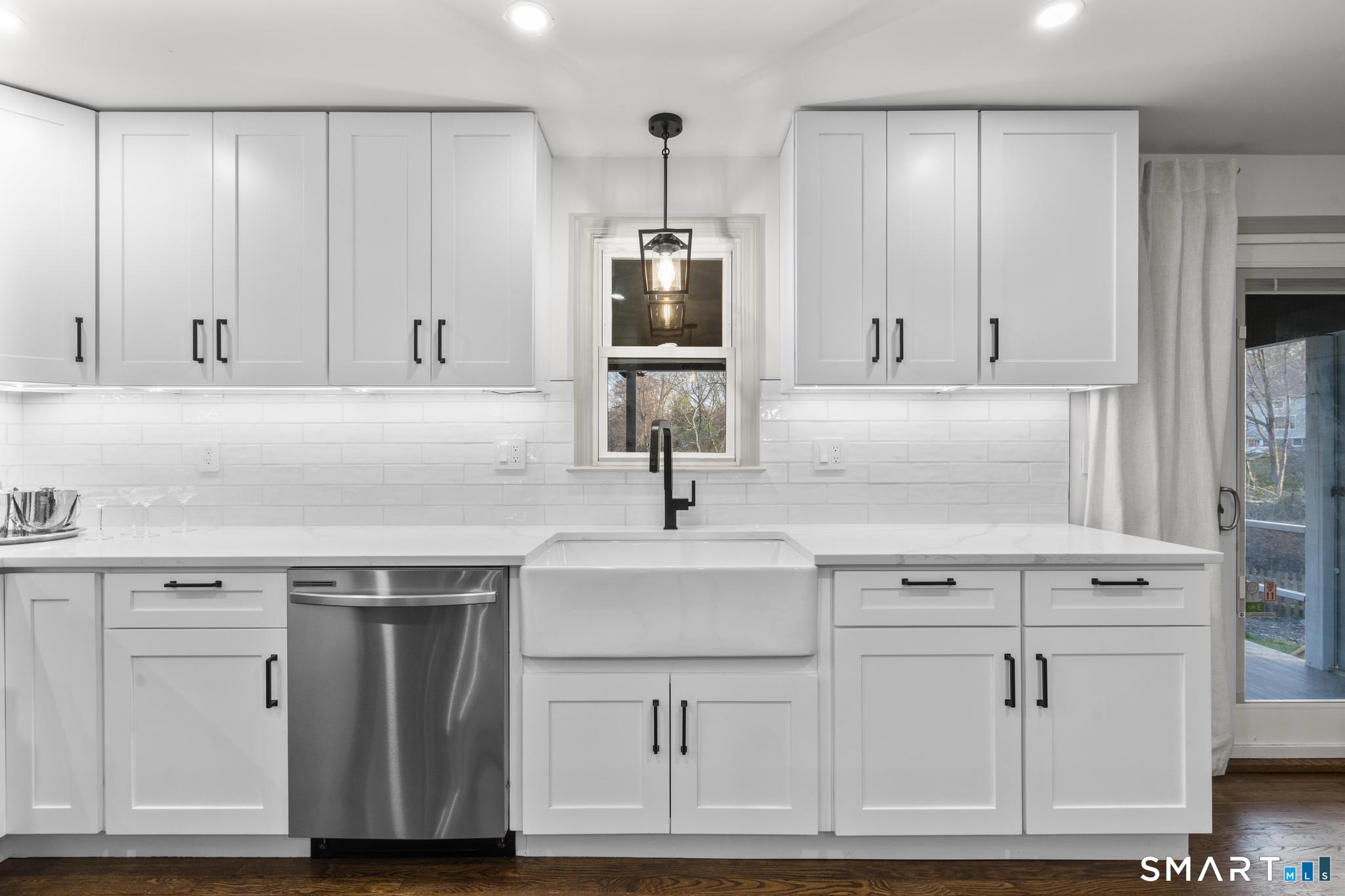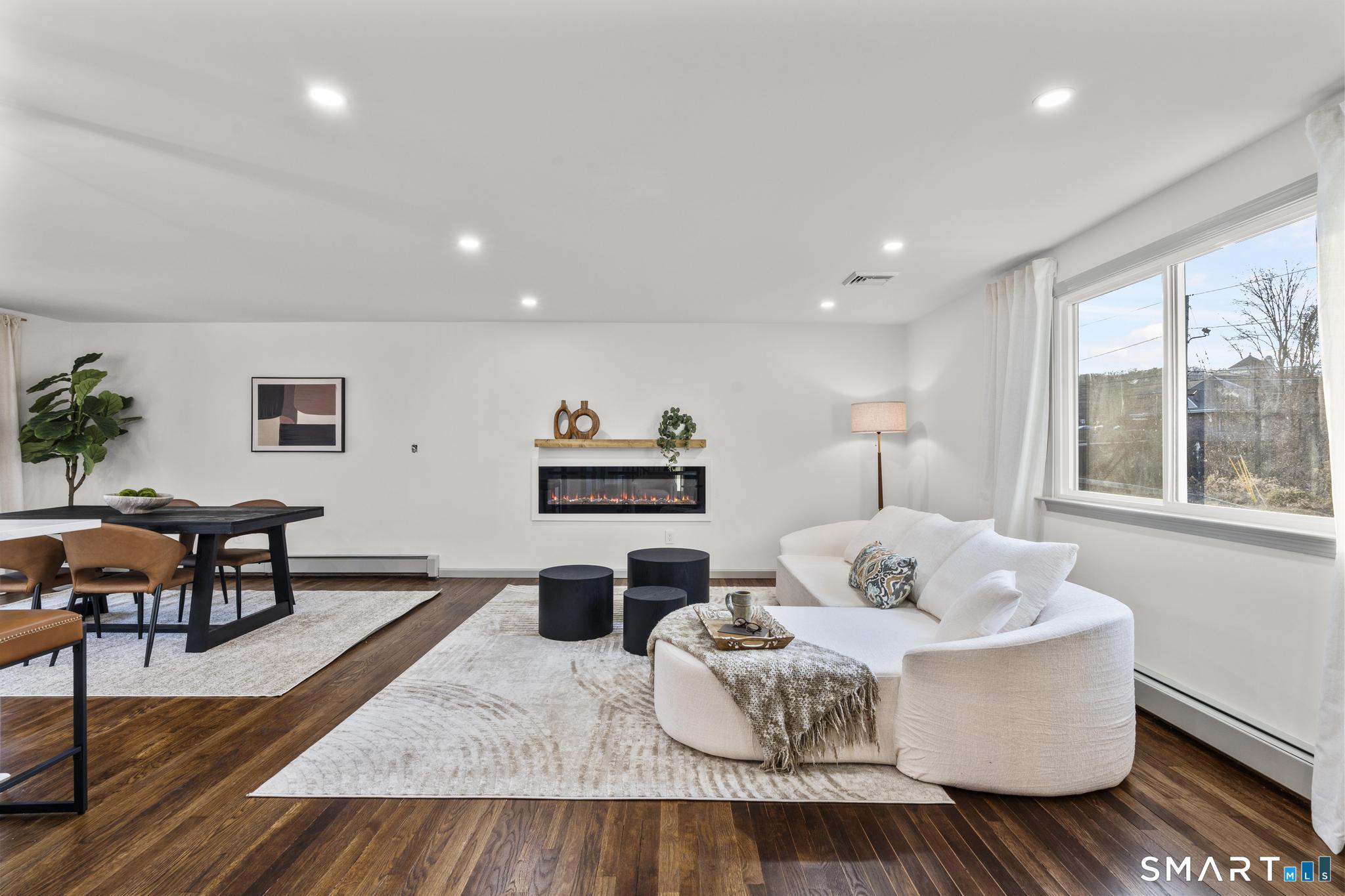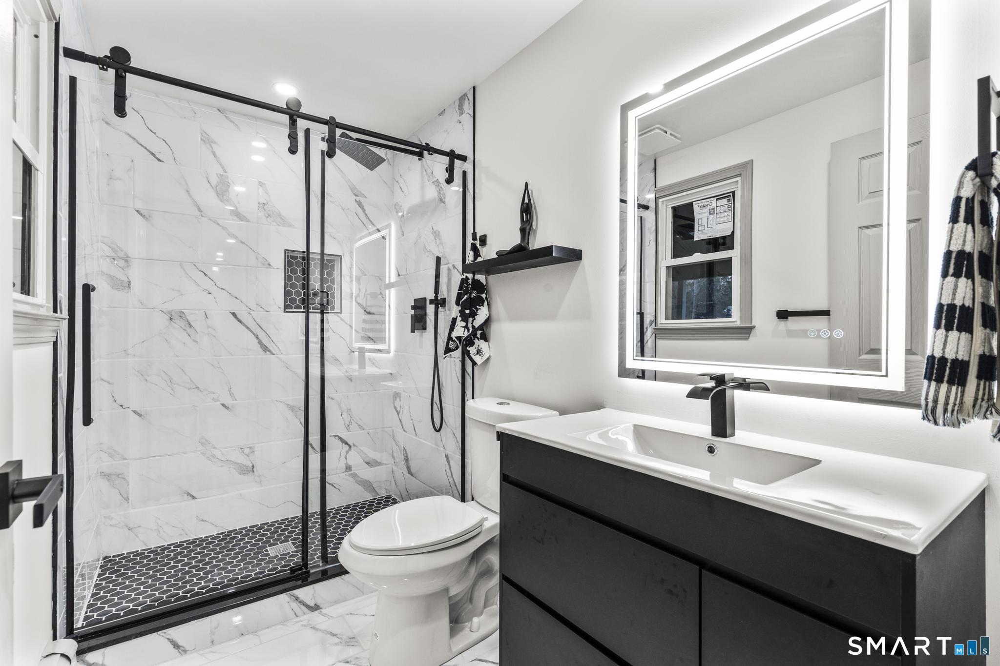 Completely reimagined from the studs up, this 4-bedroom, 3-bathroom raised ranch in the heart of Huntington Center delivers the rare combination of brand-new finishes and real livable space on nearly one acre. The open-concept main level features hardwood floors, a kitchen with quartz countertops, shaker cabinetry, stainless steel appliances, subway tile backsplash, and shiplap accents - all flowing seamlessly into the living and dining areas. Major updates include new windows, new siding, a new central air system, all-new plumbing for the kitchen and bathrooms, a fully rebuilt porch staircase, new fencing around the entire property, and a new roof on the oversized shed. Step out to an oversized screened porch with a hot tub overlooking the fully fenced, level backyard backing to a peaceful brook and mature tree line. The lower level offers a legal in-law suite with its own full kitchen, bedroom, and full bathroom - ideal for extended family, guests, or supplemental income. Located steps from the Shelton Rec Path walking trail and minutes from the historic Huntington Green, Brownson Country Club, Huntington Plaza shopping, and major commuter routes. Nothing to do here but move in.