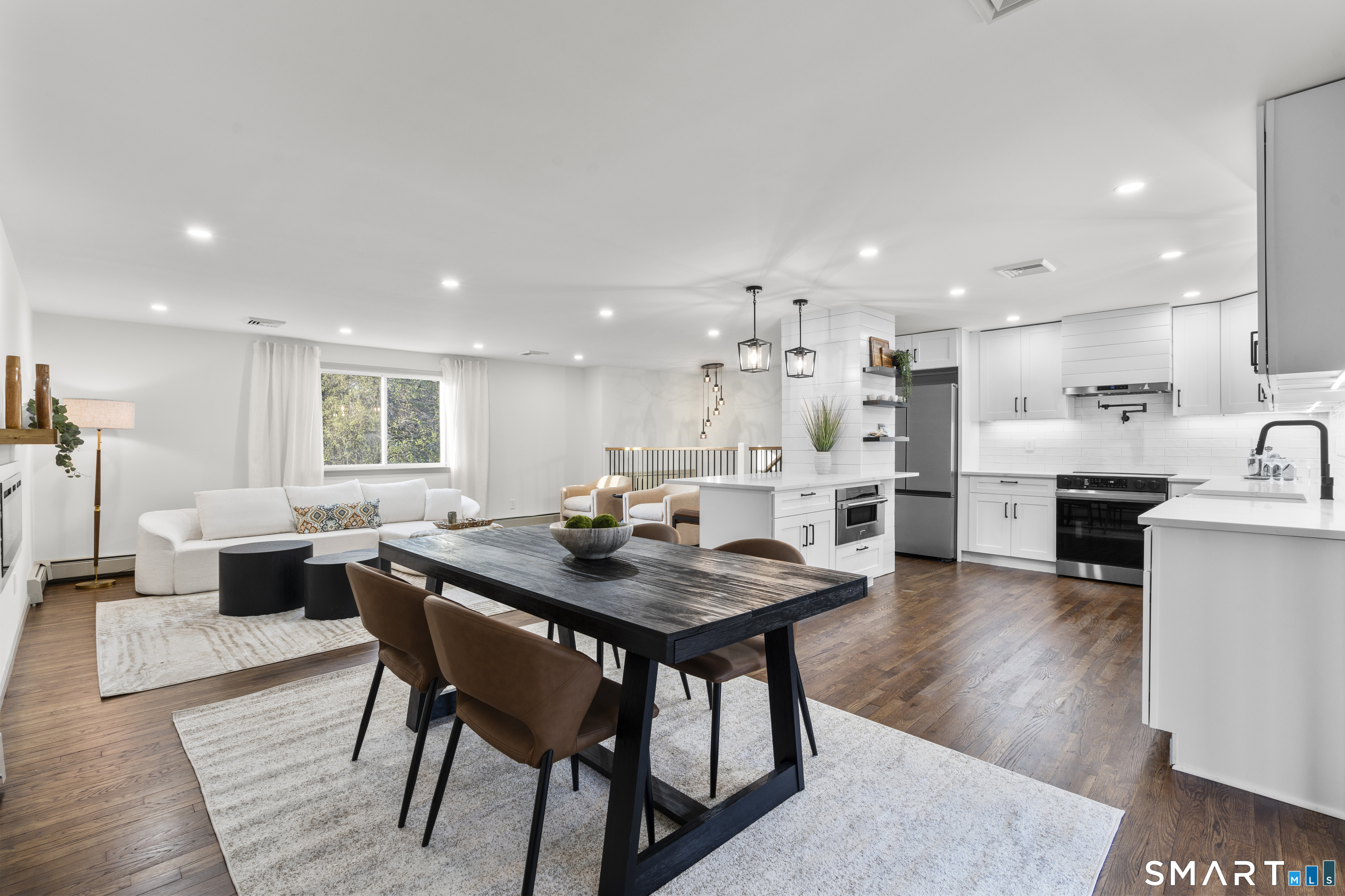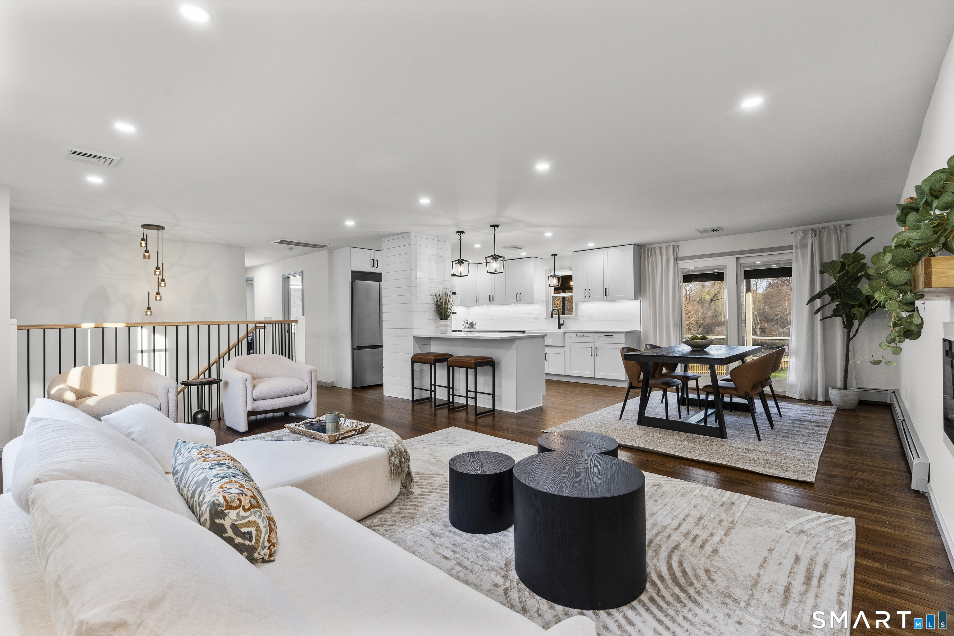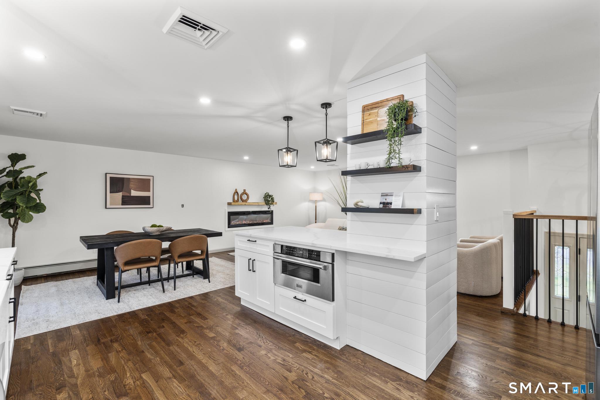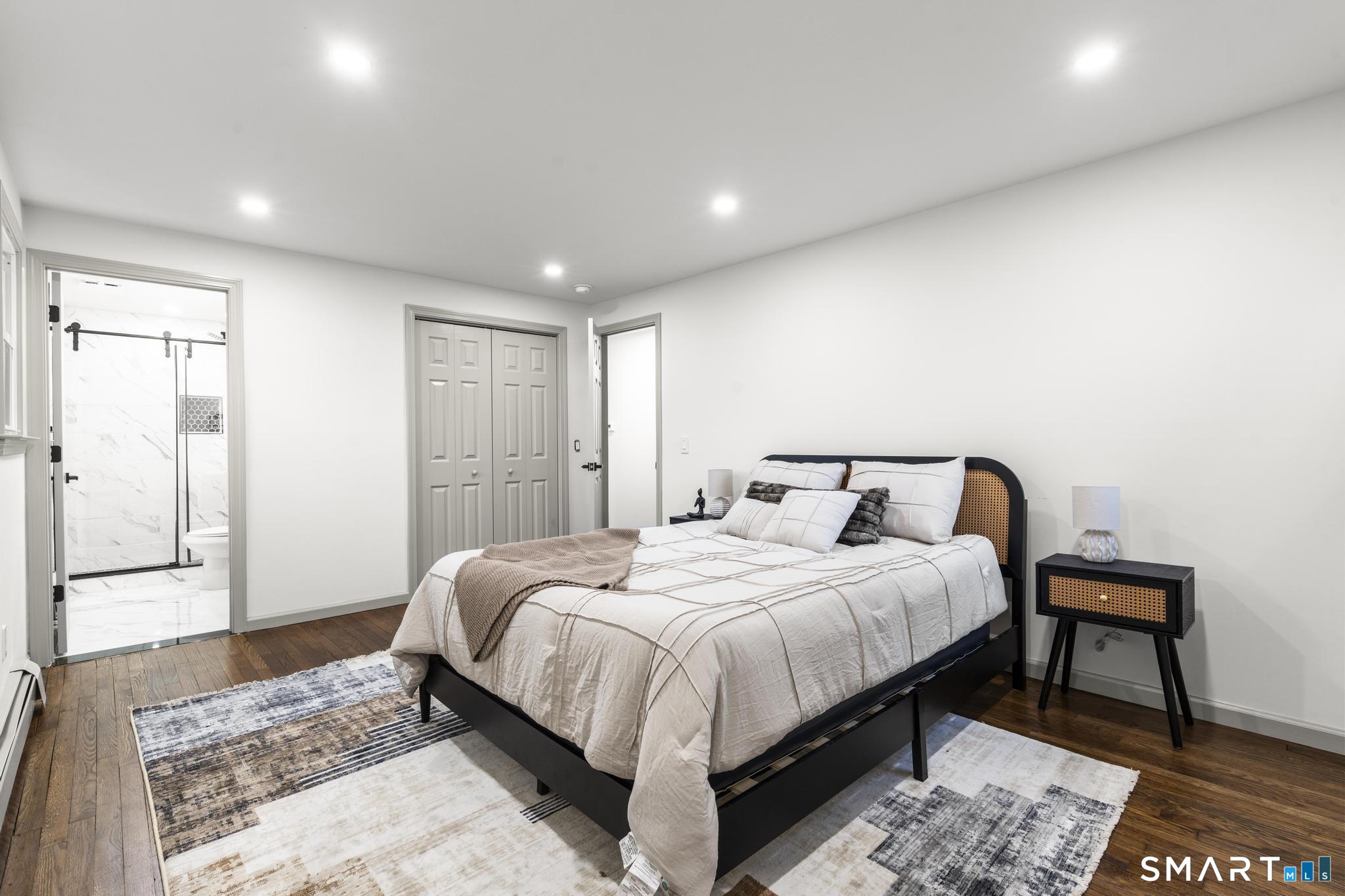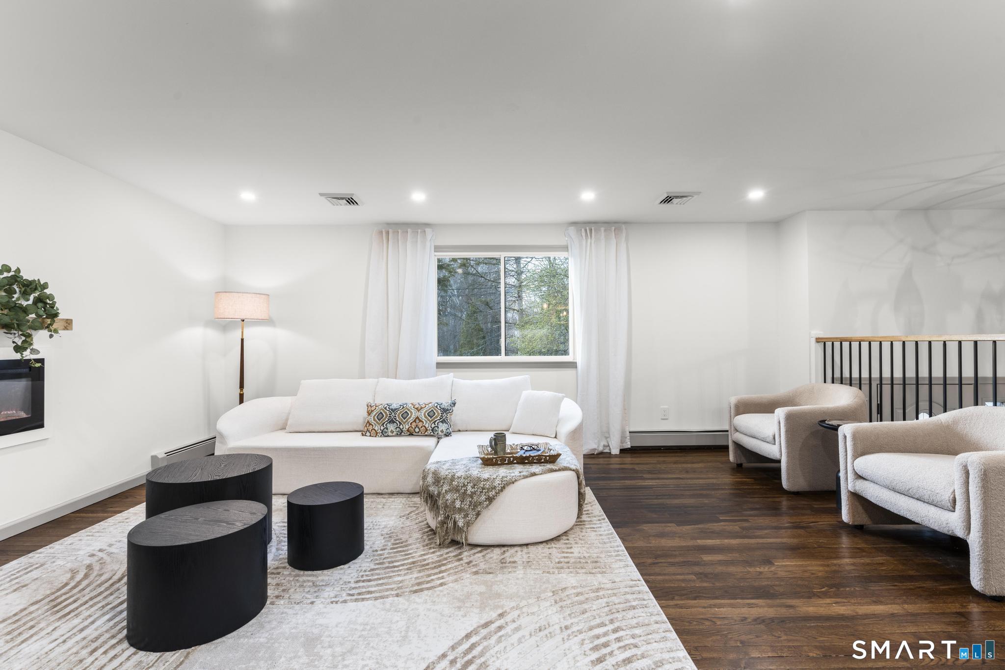 Completely reimagined from the studs up, this 4-bedroom, 3-bathroom raised ranch in the heart of Huntington Center delivers the rare combination of brand-new finishes and real livable space on nearly one acre. The open-concept main level features hardwood floors, a kitchen with quartz countertops, shaker cabinetry, stainless steel appliances, subway tile backsplash, and shiplap accents - all flowing seamlessly into the living and dining areas. Major updates include new windows, new siding, a new central air system, all-new plumbing for the kitchen and bathrooms, a fully rebuilt porch staircase, new fencing around the entire property, and a new roof on the oversized shed. Step out to an oversized screened porch with a hot tub overlooking the fully fenced, level backyard backing to a peaceful brook and mature tree line. The lower level offers a legal in-law suite with its own full kitchen, bedroom, and full bathroom - ideal for extended family, guests, or supplemental income. Located steps from the Shelton Rec Path walking trail and minutes from the historic Huntington Green, Brownson Country Club, Huntington Plaza shopping, and major commuter routes. Nothing to do here but move in.