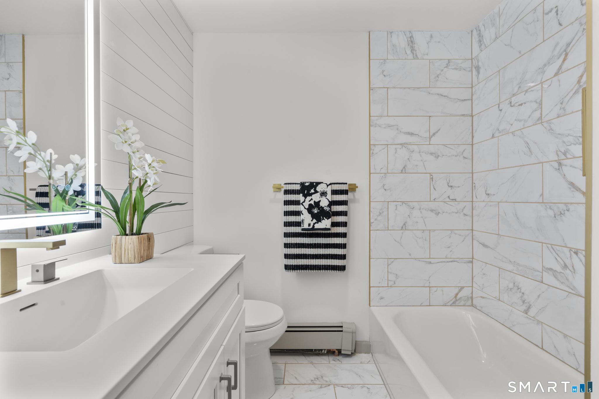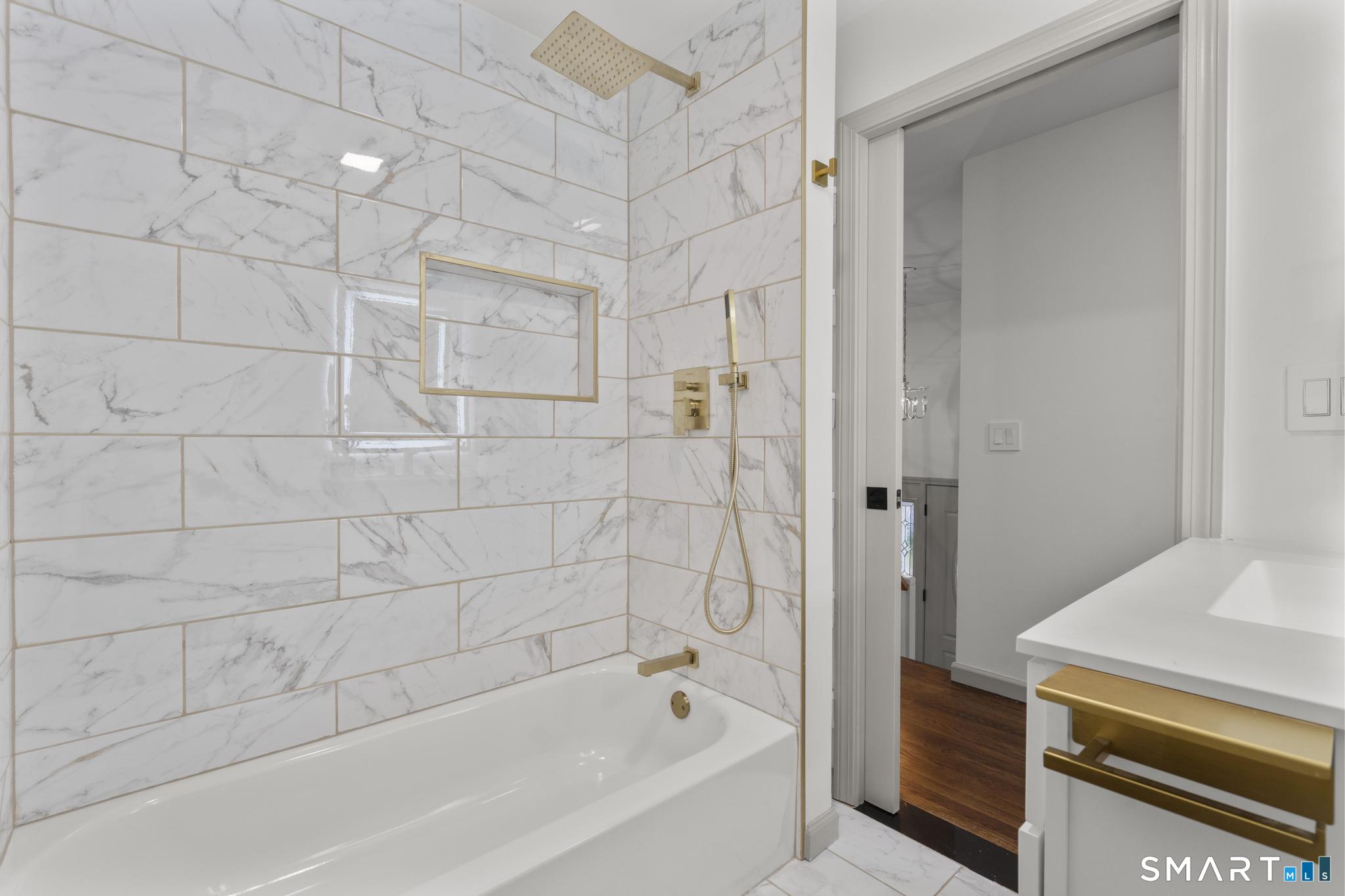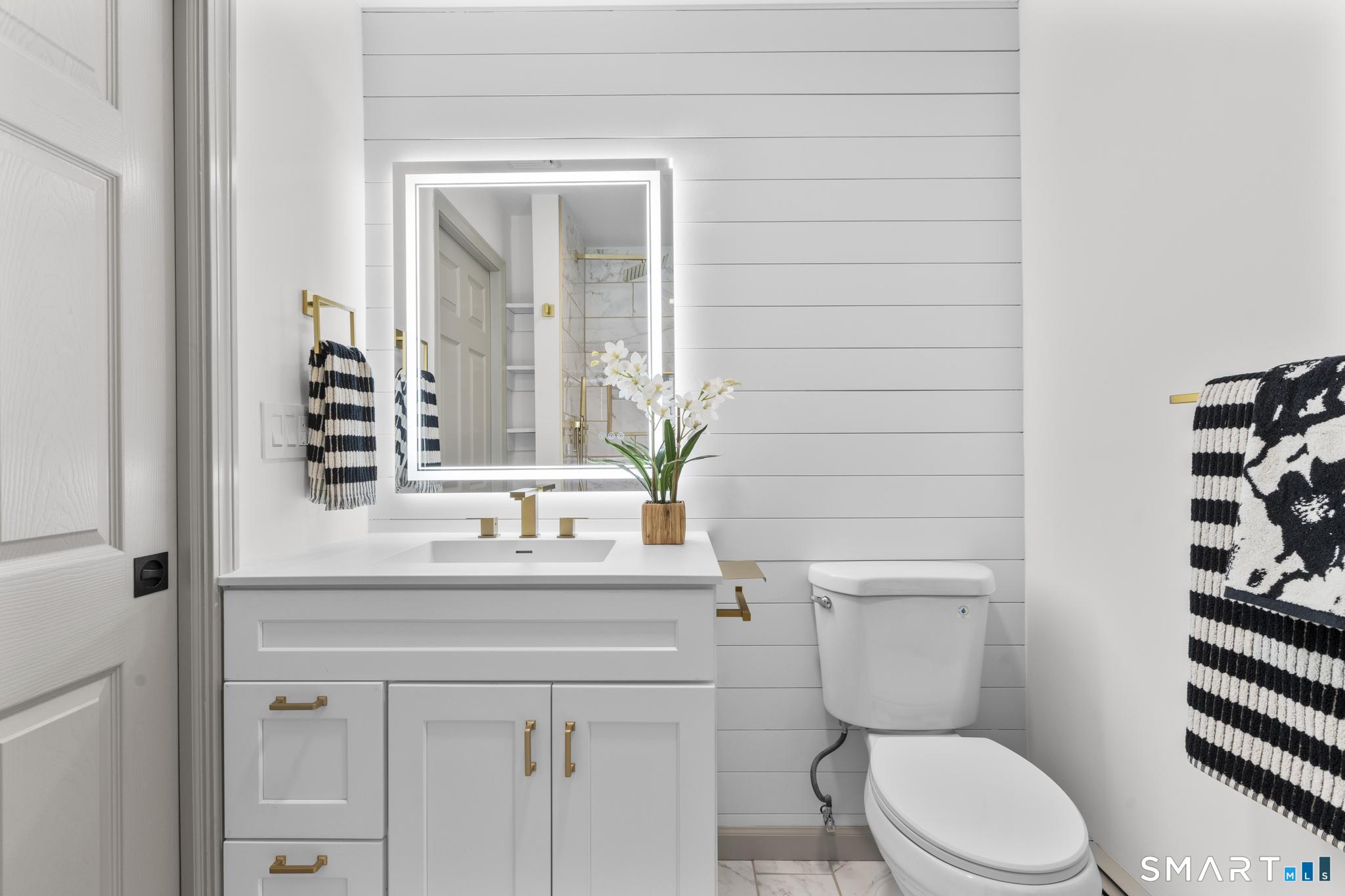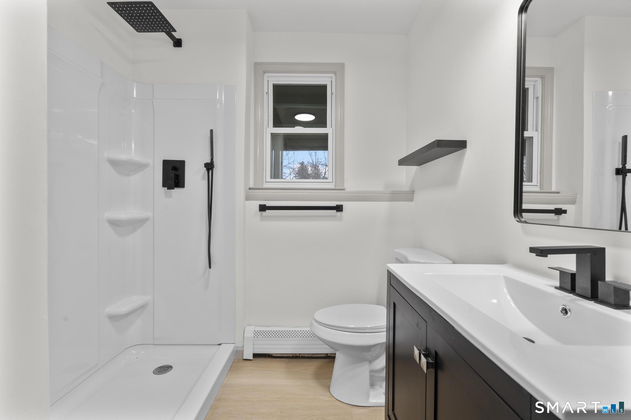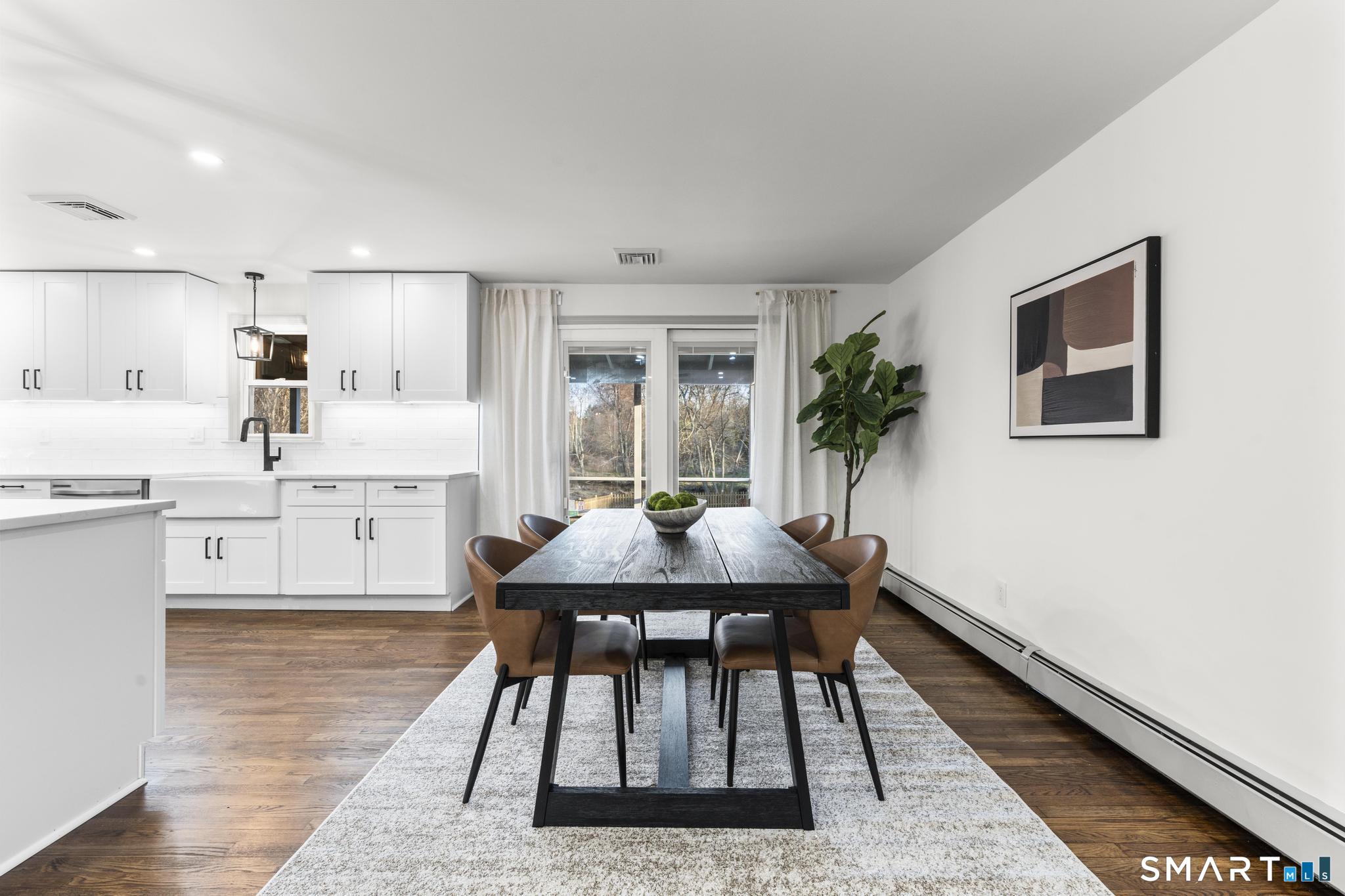 Completely reimagined from the studs up, this 4-bedroom, 3-bathroom raised ranch in the heart of Huntington Center delivers the rare combination of brand-new finishes and real livable space on nearly one acre. The open-concept main level features hardwood floors, a kitchen with quartz countertops, shaker cabinetry, stainless steel appliances, subway tile backsplash, and shiplap accents - all flowing seamlessly into the living and dining areas. Major updates include new windows, new siding, a new central air system, all-new plumbing for the kitchen and bathrooms, a fully rebuilt porch staircase, new fencing around the entire property, and a new roof on the oversized shed. Step out to an oversized screened porch with a hot tub overlooking the fully fenced, level backyard backing to a peaceful brook and mature tree line. The lower level offers a legal in-law suite with its own full kitchen, bedroom, and full bathroom - ideal for extended family, guests, or supplemental income. Located steps from the Shelton Rec Path walking trail and minutes from the historic Huntington Green, Brownson Country Club, Huntington Plaza shopping, and major commuter routes. Nothing to do here but move in.