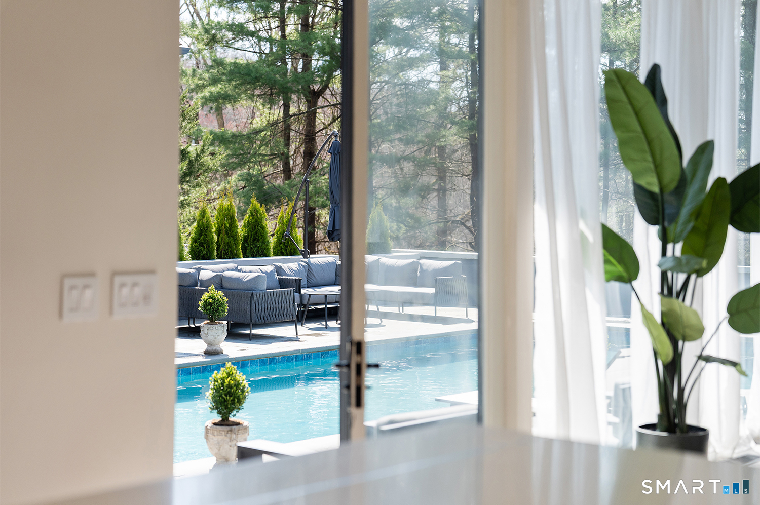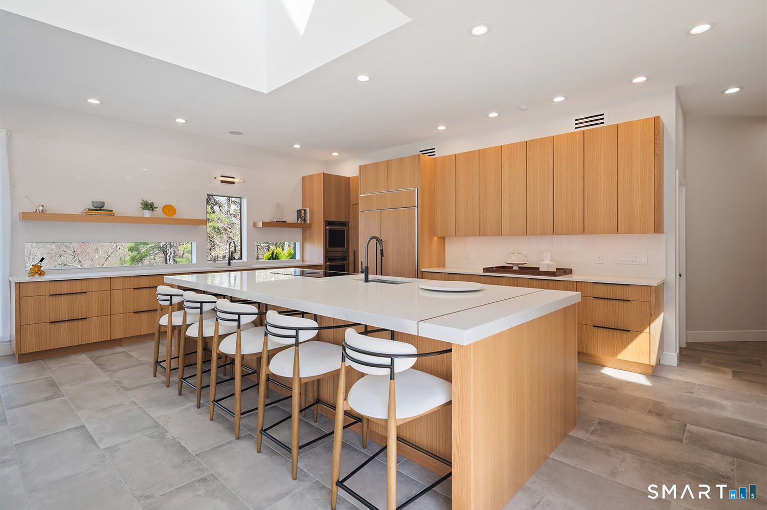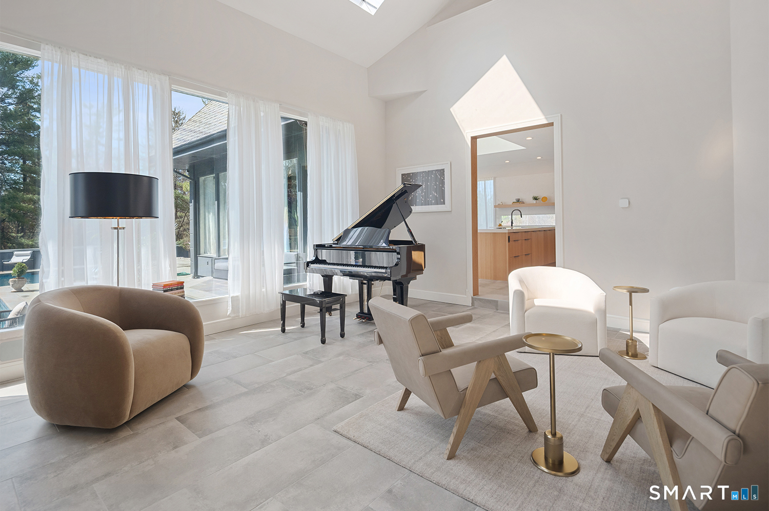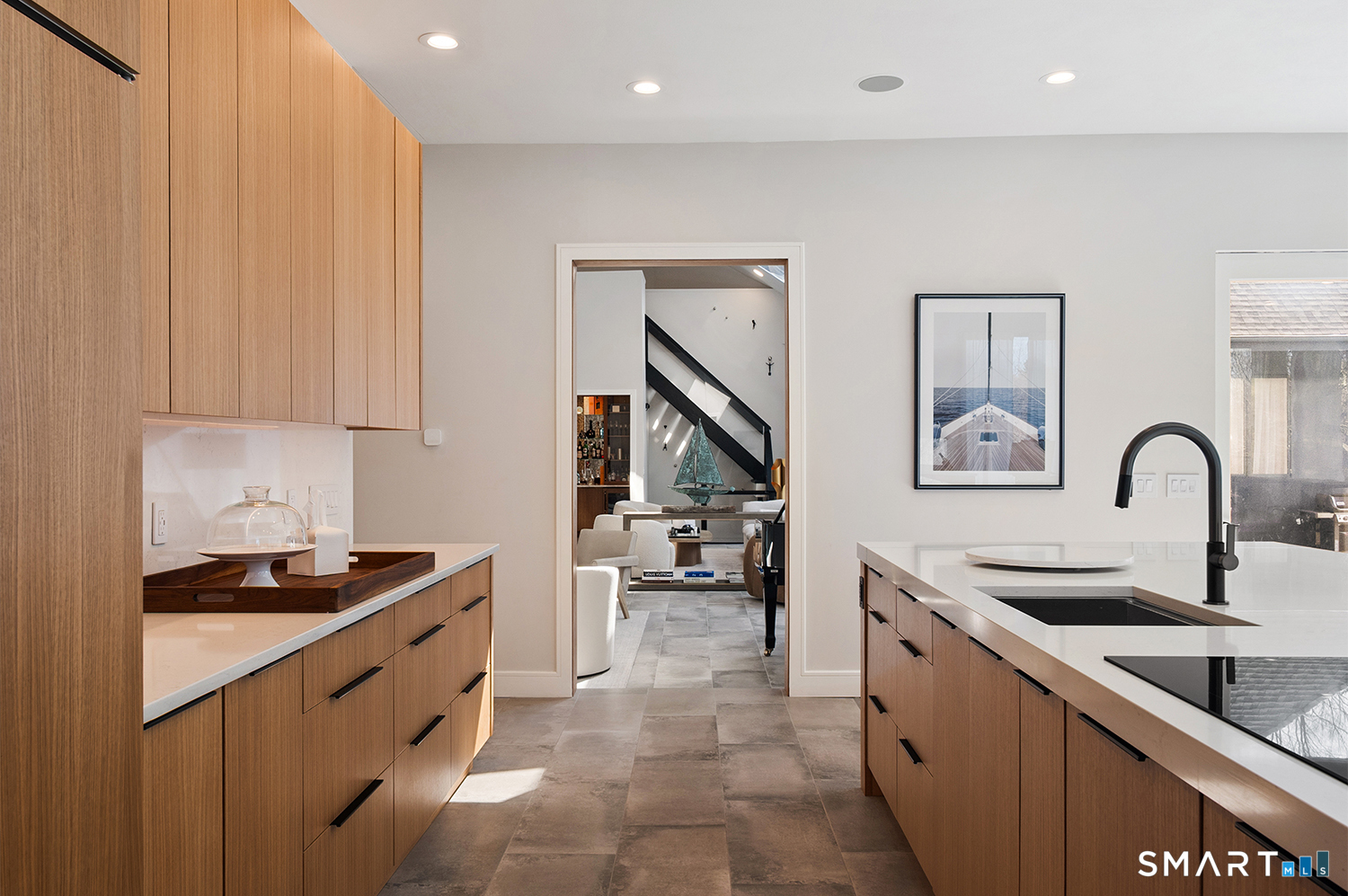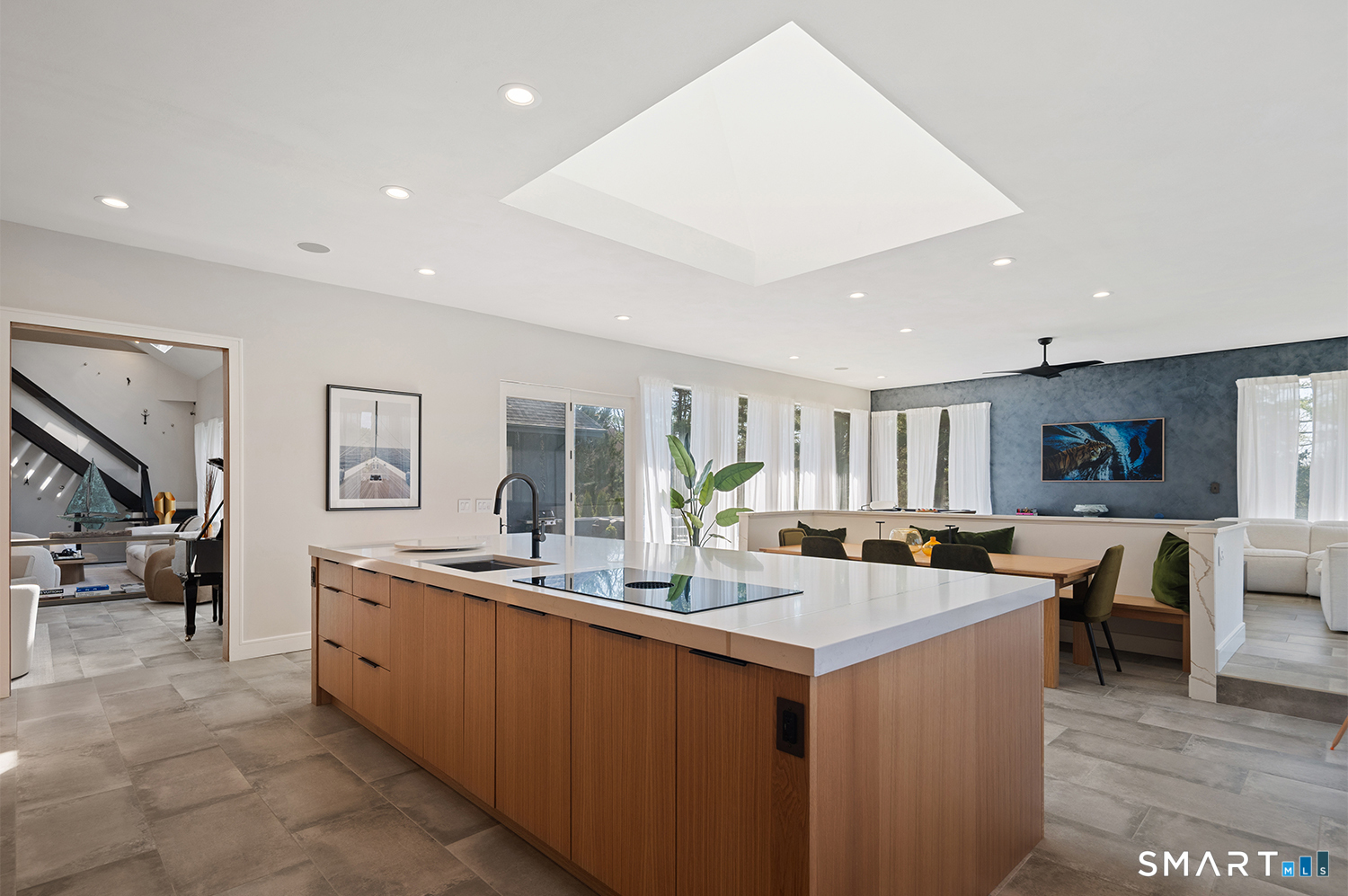 Greenwich address, Stamford taxes & schools. Behind a private, tree-lined driveway on 2 beautifully landscaped acres, this exceptional backcountry compound offers over 6,300 SF of sun-filled, single-level living at a scale rarely achieved in today's market, centered around a resort-scale gunite pool, spa, & sweeping bluestone terrace designed for seamless indoor-outdoor living. Walls of glass, skylights, & soaring cathedral ceilings create a sanctuary of proportion rarely found in single-level homes. Comprehensively renovated in 2026, the home features a custom rift-cut white oak kitchen anchored by a dramatic 6' x 12' island, complemented by designer baths, new flooring, roof, driveway, stonework, & curated landscaping throughout. The approximately 1,200 SF primary suite opens directly to the pool & offers a spa-inspired bath, infrared sauna, & steam shower. 2 additional en-suite bedrooms anchor the main residence. A fully self-contained residence within the home-featuring 2 bedrooms, full bath, living room, dining area, kitchenette, separate entrance, & independent HVAC & security-offers exceptional flexibility for extended family, live-in staff, or long-term guests. 5 bedrooms & 4.5 baths. Additional highlights incl 3 fireplaces, wet bar, 5-zone integrated surround sound, whole-house generator, & oversized 4-car garage. An additional 5,400+ SF lower level with fireplace & wine storage offers exceptional potential for future build-out.
