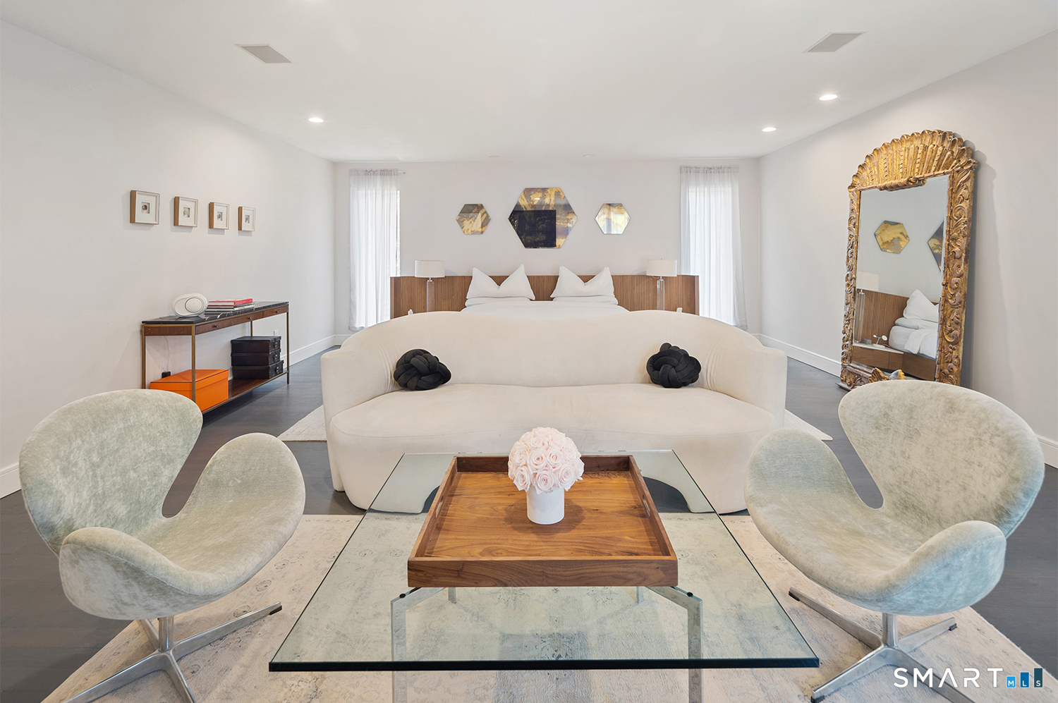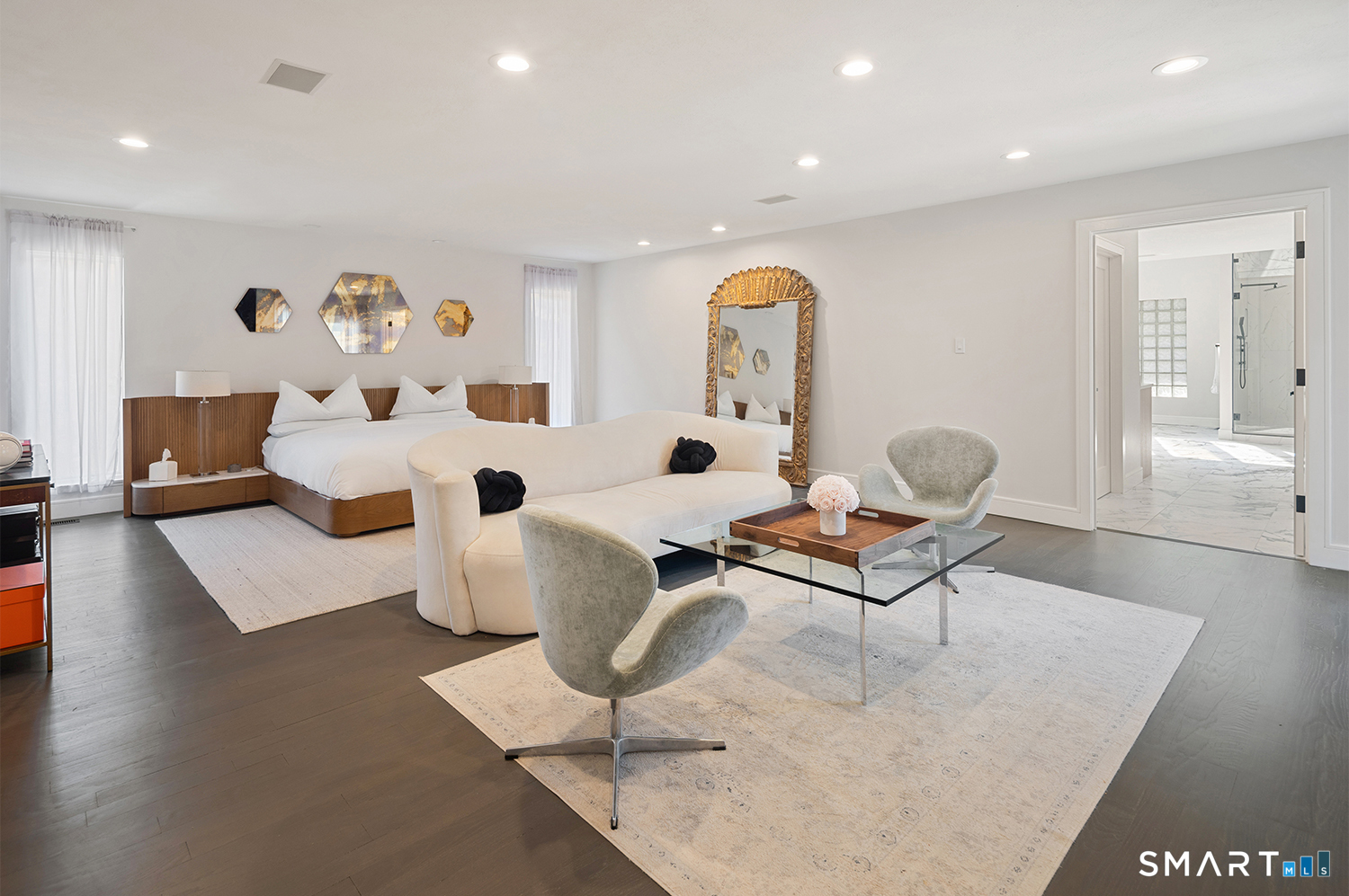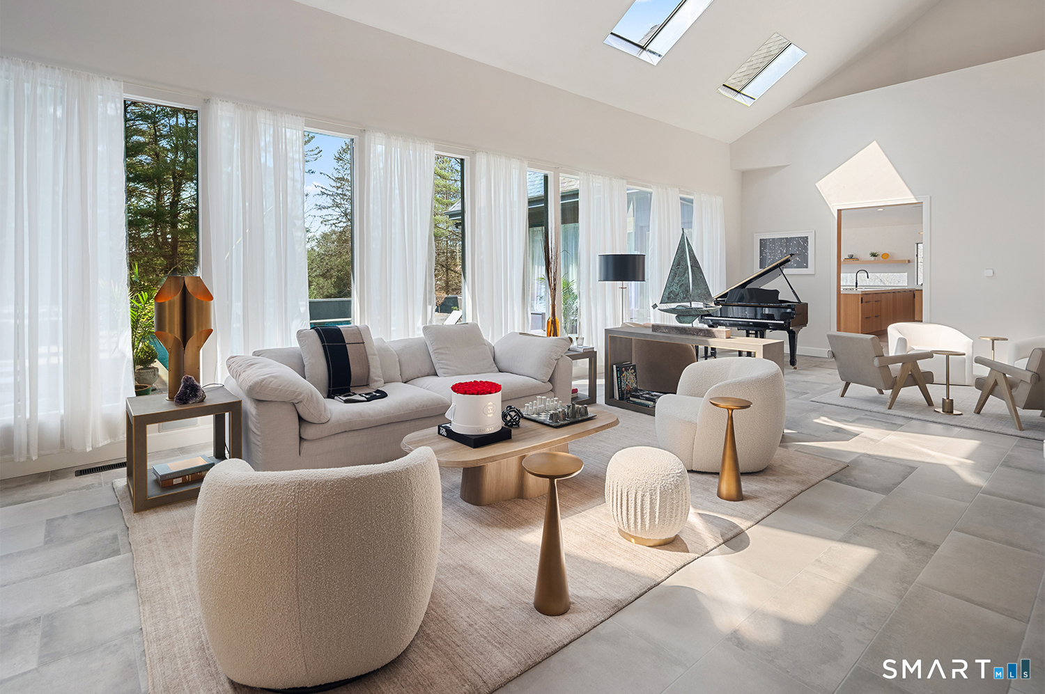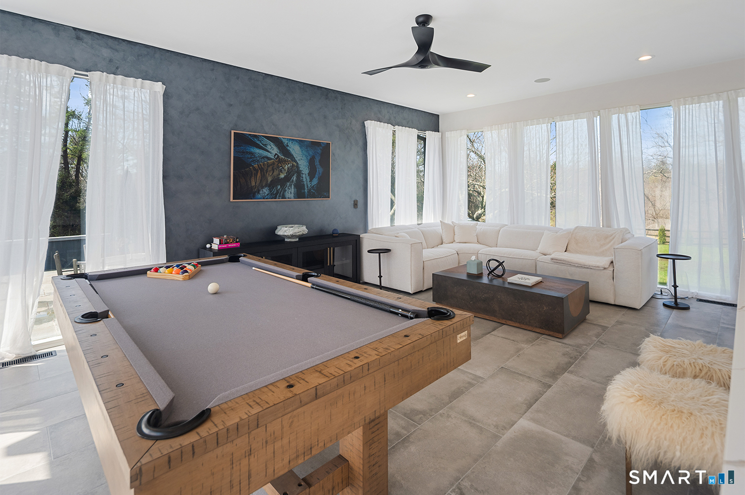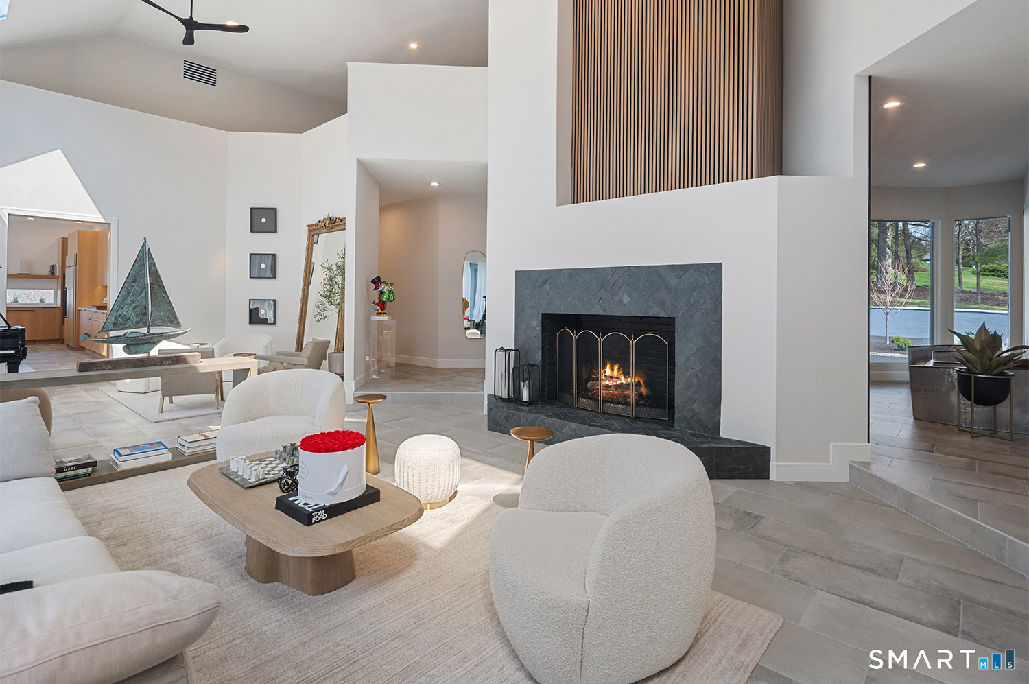 Greenwich address, Stamford taxes & schools. Behind a private, tree-lined driveway on 2 beautifully landscaped acres, this exceptional backcountry compound offers over 6,300 SF of sun-filled, single-level living at a scale rarely achieved in today's market, centered around a resort-scale gunite pool, spa, & sweeping bluestone terrace designed for seamless indoor-outdoor living. Walls of glass, skylights, & soaring cathedral ceilings create a sanctuary of proportion rarely found in single-level homes. Comprehensively renovated in 2026, the home features a custom rift-cut white oak kitchen anchored by a dramatic 6' x 12' island, complemented by designer baths, new flooring, roof, driveway, stonework, & curated landscaping throughout. The approximately 1,200 SF primary suite opens directly to the pool & offers a spa-inspired bath, infrared sauna, & steam shower. 2 additional en-suite bedrooms anchor the main residence. A fully self-contained residence within the home-featuring 2 bedrooms, full bath, living room, dining area, kitchenette, separate entrance, & independent HVAC & security-offers exceptional flexibility for extended family, live-in staff, or long-term guests. 5 bedrooms & 4.5 baths. Additional highlights incl 3 fireplaces, wet bar, 5-zone integrated surround sound, whole-house generator, & oversized 4-car garage. An additional 5,400+ SF lower level with fireplace & wine storage offers exceptional potential for future build-out.