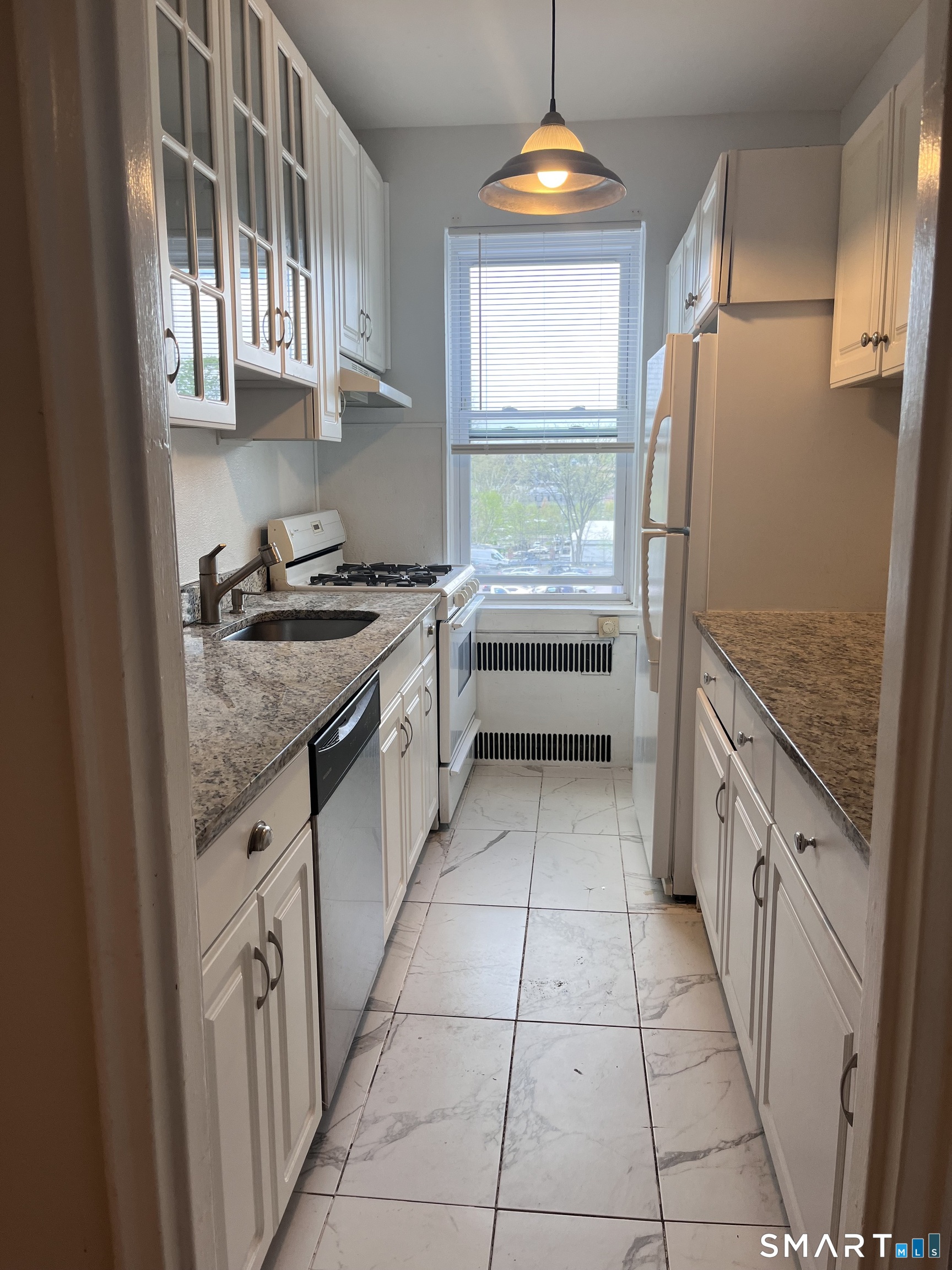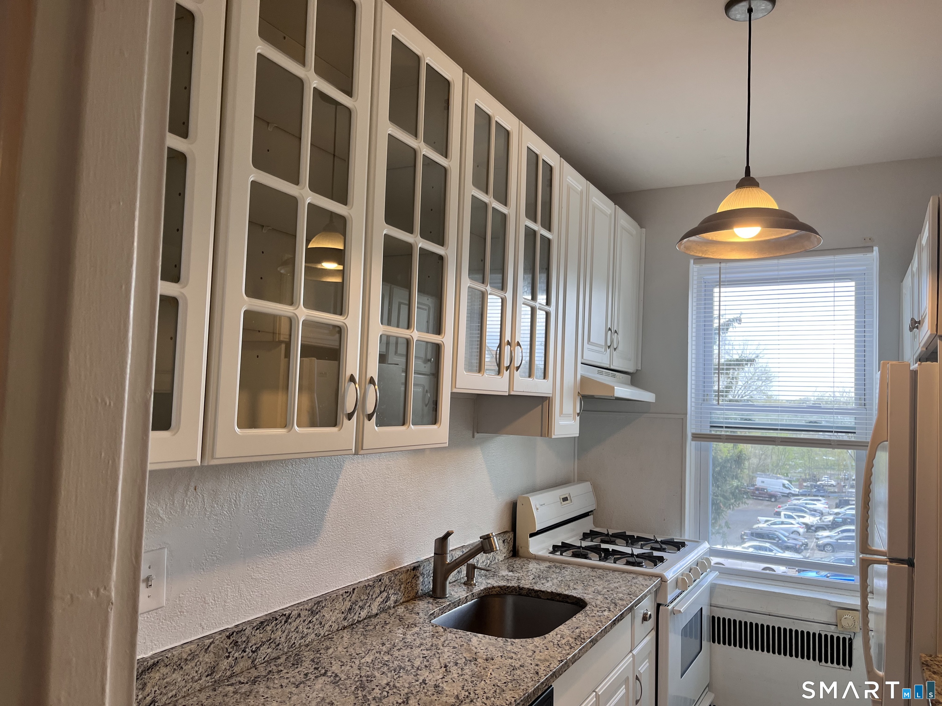 Welcome to this bright and spacious 1-bedroom, 1-bath condo in a prime Stamford location, offering both comfort and convenience. The unit features an expansive living and dining area, enhanced by hardwood floors and high ceilings that create an open, airy feel with abundant natural light. The kitchen and bathroom have been tastefully updated for modern living. Located on the first floor, this home provides easy access and everyday practicality. The well-maintained complex includes multiple laundry facilities and beautifully landscaped courtyards, ideal for relaxing outdoors. Heat and hot water are included in the rent, adding extra value. The unit also comes with one assigned parking space, along with ample visitor parking. Perfectly situated near public transportation, schools, shopping, dining, and everything Stamford has to offer. It is an ideal place to call home.