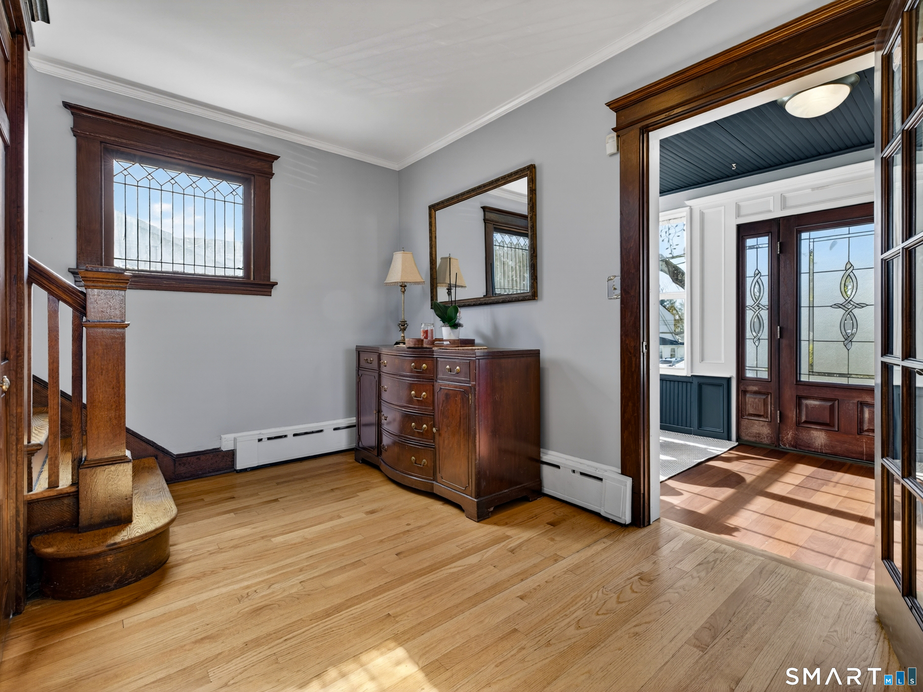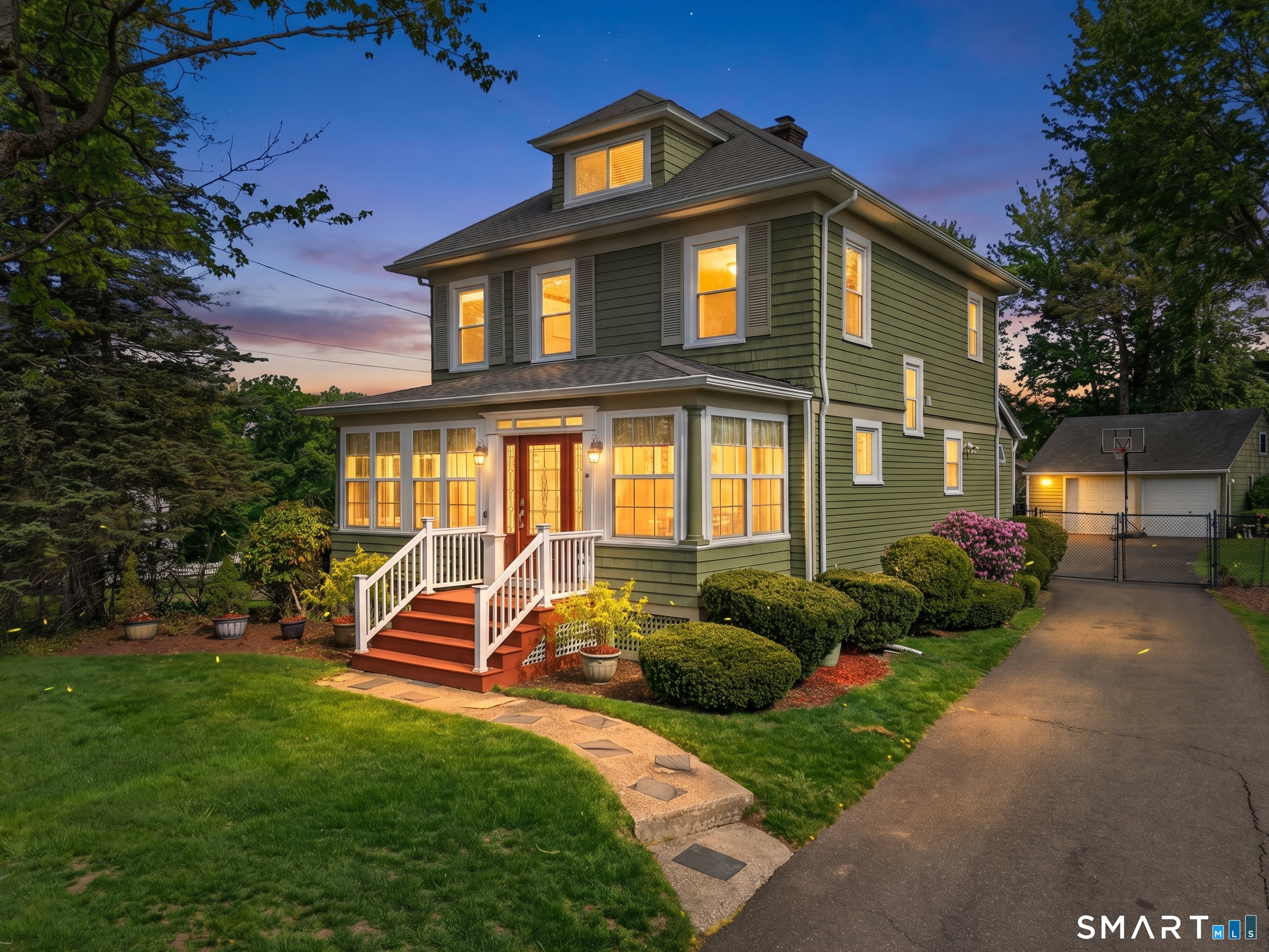 **Charming 1919 Fully Restored Home** Step into this beautifully restored 1919 gem, offering the perfect blend of vintage charm and modern amenities. This stunning 3-bedroom home features an additional finished attic space, complete with a closet, that serves as a cozy fourth bedroom. As you enter, you'll be greeted by natural hardwood floors that flow throughout the main living areas. The original brick beams add character and warmth, while freshly painted walls create a bright and inviting atmosphere. The heart of the home boasts stainless steel appliances in the kitchen, making it a chef's delight. Enjoy your morning coffee in the sunlit three-season glassed-in porch, perfect for year-round relaxation. The third-floor bedroom features a dormer skylight, filling the space with natural light and offering a peaceful retreat. Recent upgrades include a newly updated bathroom, brand new furnace, new hot water heater, a new roof, and new leaf filter gutters, ensuring peace of mind for years to come. The two car detached garage also has a new roof for added convenience. Step outside to discover a beautifully landscaped private backyard, lovingly nurtured over the years with a variety of perennials, creating a serene outdoor oasis. This home is truly a rare find, blending history with modern comforts. Don't miss your chance to make it yours!