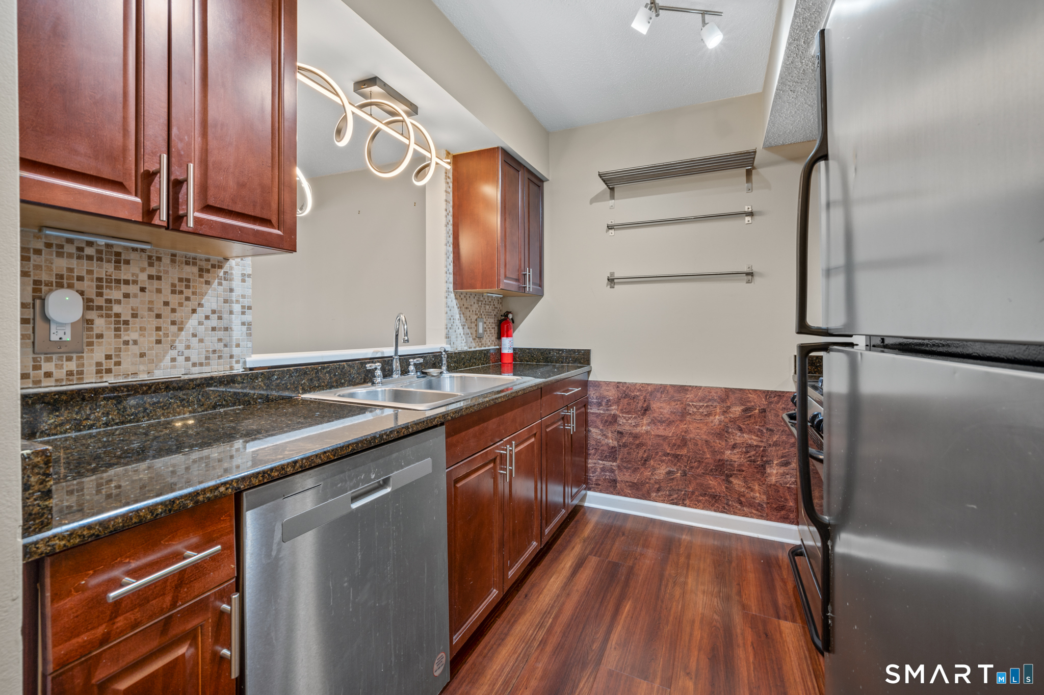 Welcome to 1690 Dixwell Avenue #C-8! This bright and inviting loft-style condo offers an open-concept layout with high ceilings, oversized windows, and a skylight that fills the space with natural light. The main level features a spacious living and dining area with updated flooring and a clean, functional galley kitchen, complete with ample cabinet space, granite counters, stainless steel appliances, and a new dishwasher (2024). Upstairs, the loft-style primary bedroom overlooks the main living space and offers an airy, open feel with great natural light. Additional highlights include in-unit laundry, a walk in closet, a new hot water heater (2024), dedicated parking, nearby visitor parking, and valuable attic storage located above the walk-in closet. This home is conveniently located close to shopping, restaurants, public transportation, as well as the Merritt Parkway! This is a great opportunity for an owner-occupant or investor alike.