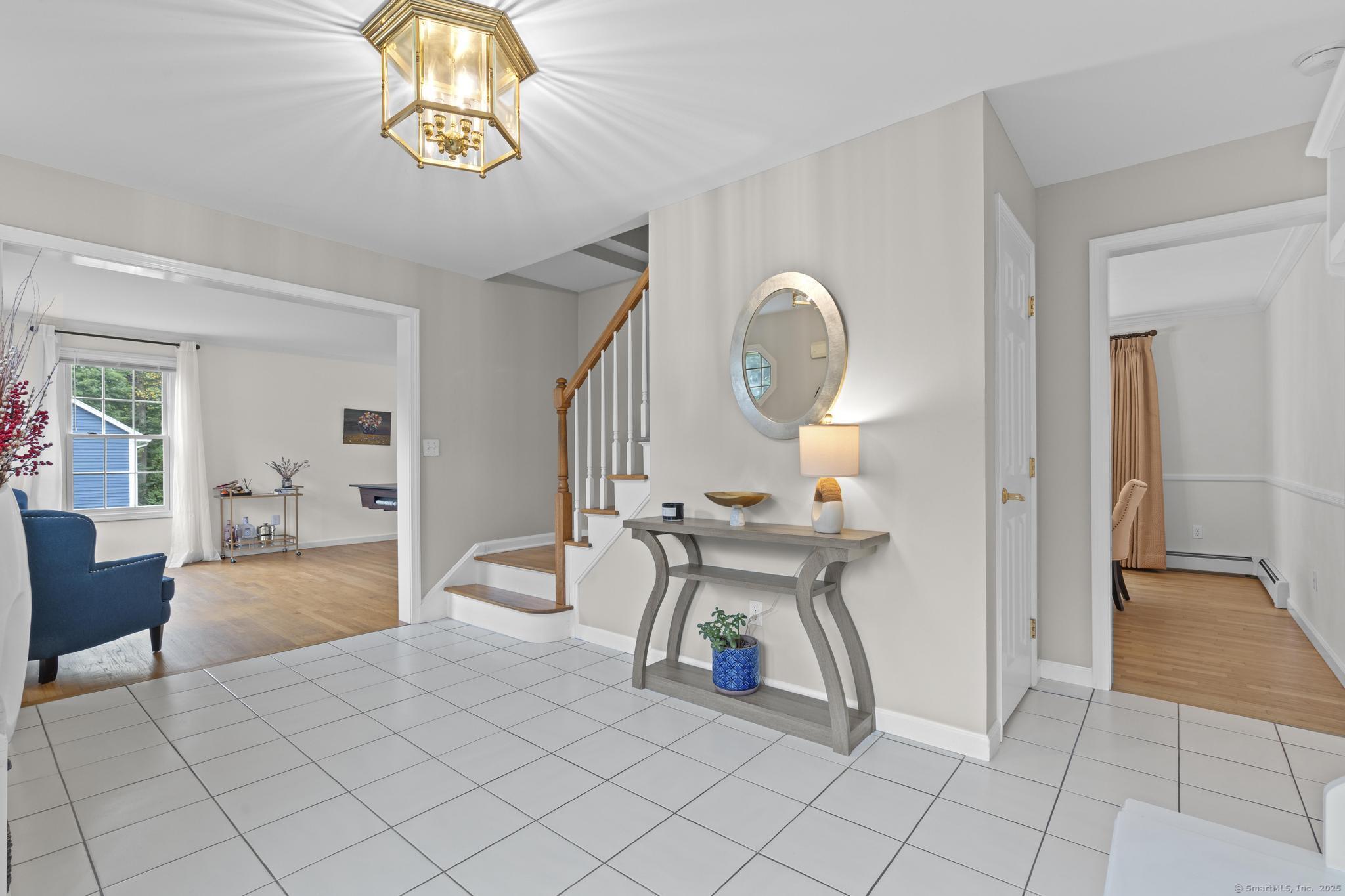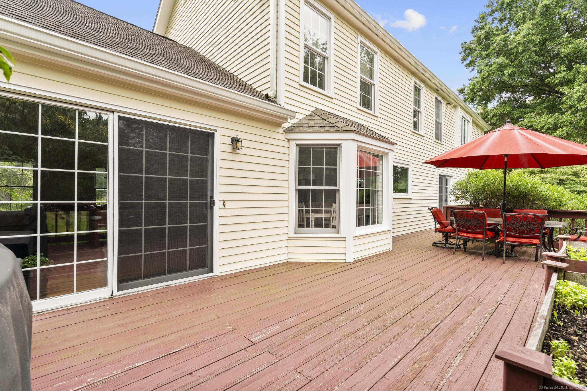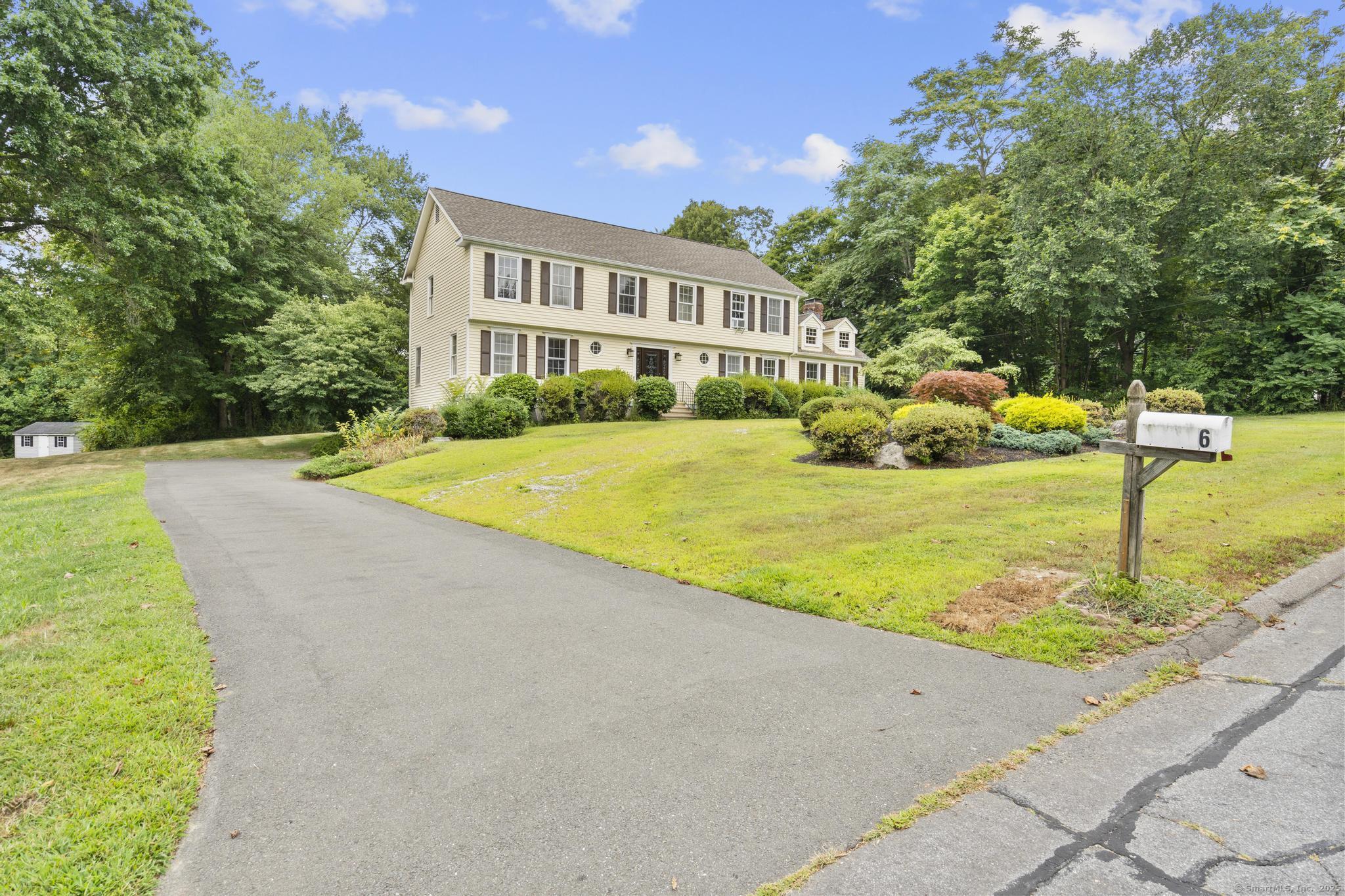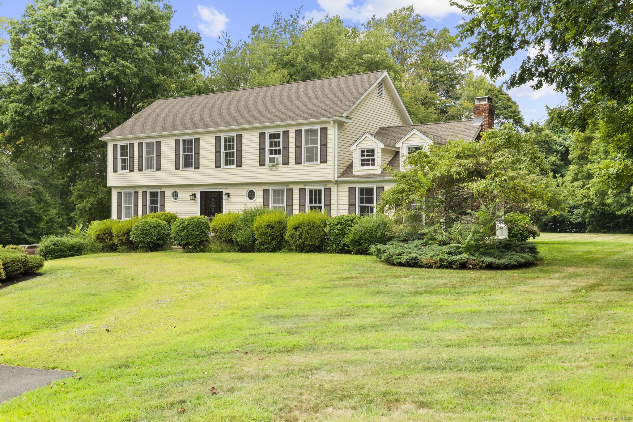 Welcome Home! This spectacular 4 bedroom colonial home boasts many features! Corner lot- level, open backyard w/ deck - easy to maintain. Tree line offers visual & sound privacy from main road. Off street parking - driveway easily fits 6 vehicles. 2 bay garage. Front yard used to have gravel circular driveway - this can easily be recreated! Basement is open/ unfinished, high ceilings...ideal for a future finished space! Access to garage & main level (stairway to kitchen). Kitchen has stainless appliances, granite counters, newly painted cabinets, designated kitchenette dining w/ lots of natural light! Easily fits a large table/ seating for 6. Family room is grand w/ vaulted ceilings and slider to deck. Private office/ additional guest quarters on main. Formal dining room. Spacious formal living room. Foyer/ front entry is spectacular! Upper level: primary bedroom (private bath w/ dual vanity, jacuzzi tub, separate shower & water closet) 3 additional bedrooms that share a hallway bathroom. Spacious laundry closet. Pulldown attic (great storage space), central air, oil heat. Septic located in backyard, regularly maintained. Public water. This property is a "must see"!