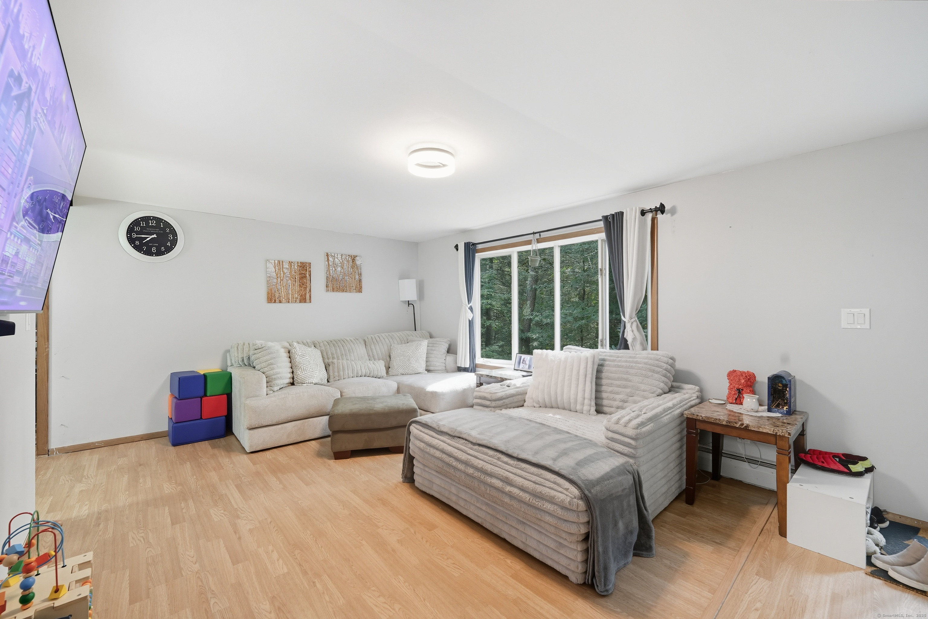 Situated in tranquil Woodstock, this spacious four bedroom Cape is the ultimate hidden treasure. It's calm, tree-lined 4.23 acres opens up to offer a large yard to allow space for all of your outdoor activities. Inside, you will be met with a smooth-flowing layout, 9ft ceilings, and plenty of natural lighting. The first level homes two sizeable bedrooms that transition into the main living space and a charming multi-use room currently being used as a play room! Up the stairs you will find the remaining two bedrooms, an open foyer area, and half bathroom. Don't forget to make your way down to the walk-out basement to be surprised with another half bath/ wet bar and a garage with workshop area. Don't miss out, schedule your private showing today!
