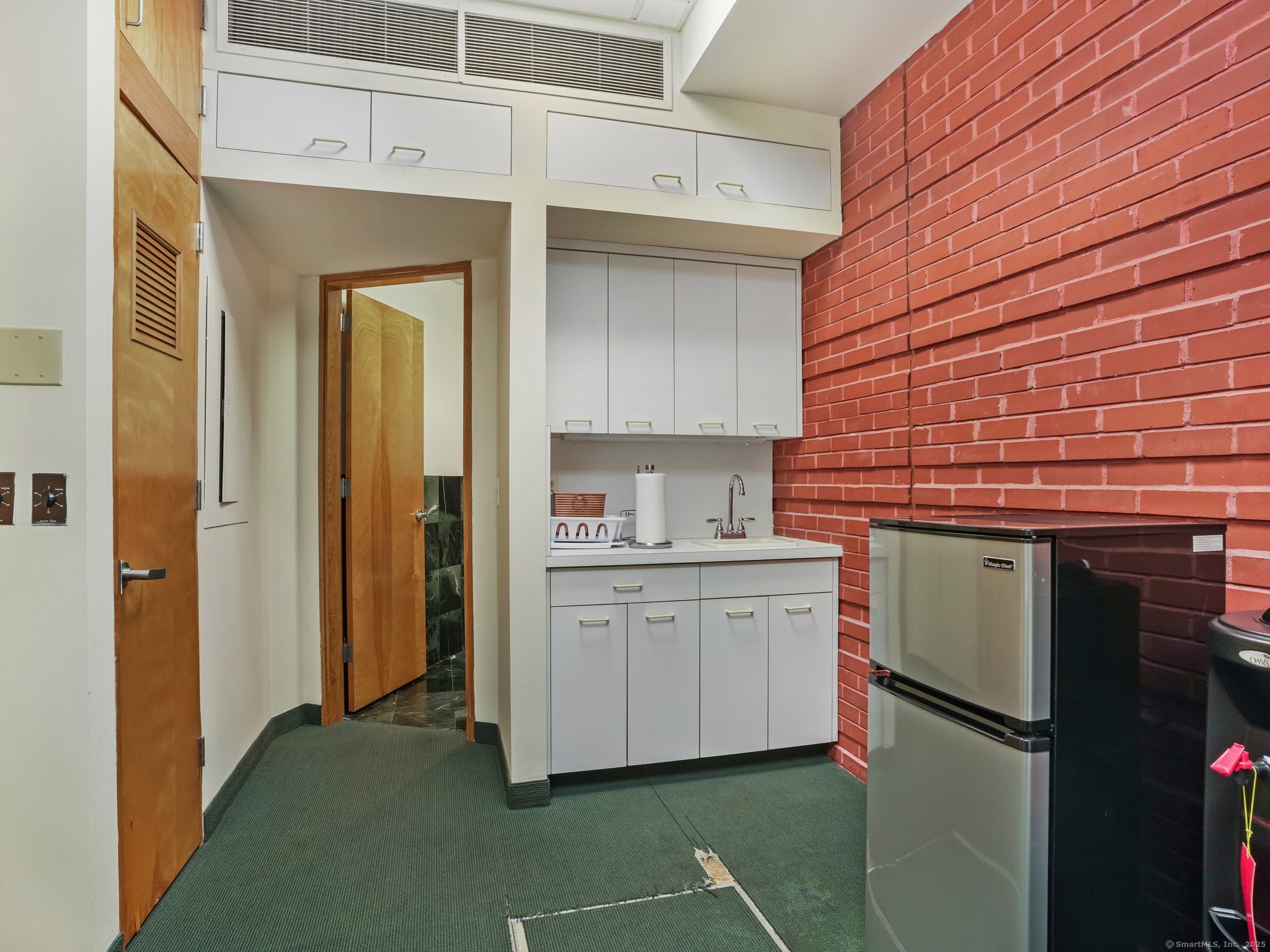 Office #1. Welcome to the Glenville Business Lofts, prime private offices in the downtown Glenville area of Greenwich. Enter to a 2nd floor with 11.5 ft ceilings, walls of glass, and distinct green structural beams. An open great room connects various sized sun filled offices, break room, and bathroom. Situated above a community staple, Finch Pharmacy, a ideal location for both visibility and accessibility. Enjoy the flow of business with easy access to the Merritt & I-95, metro north train, and the Westchester Airport. Ample on-site parking. With so few downtown offices available, don't miss this workplace with parking, in an intimate yet vibrant community. 644 is Rentable Square Feet.