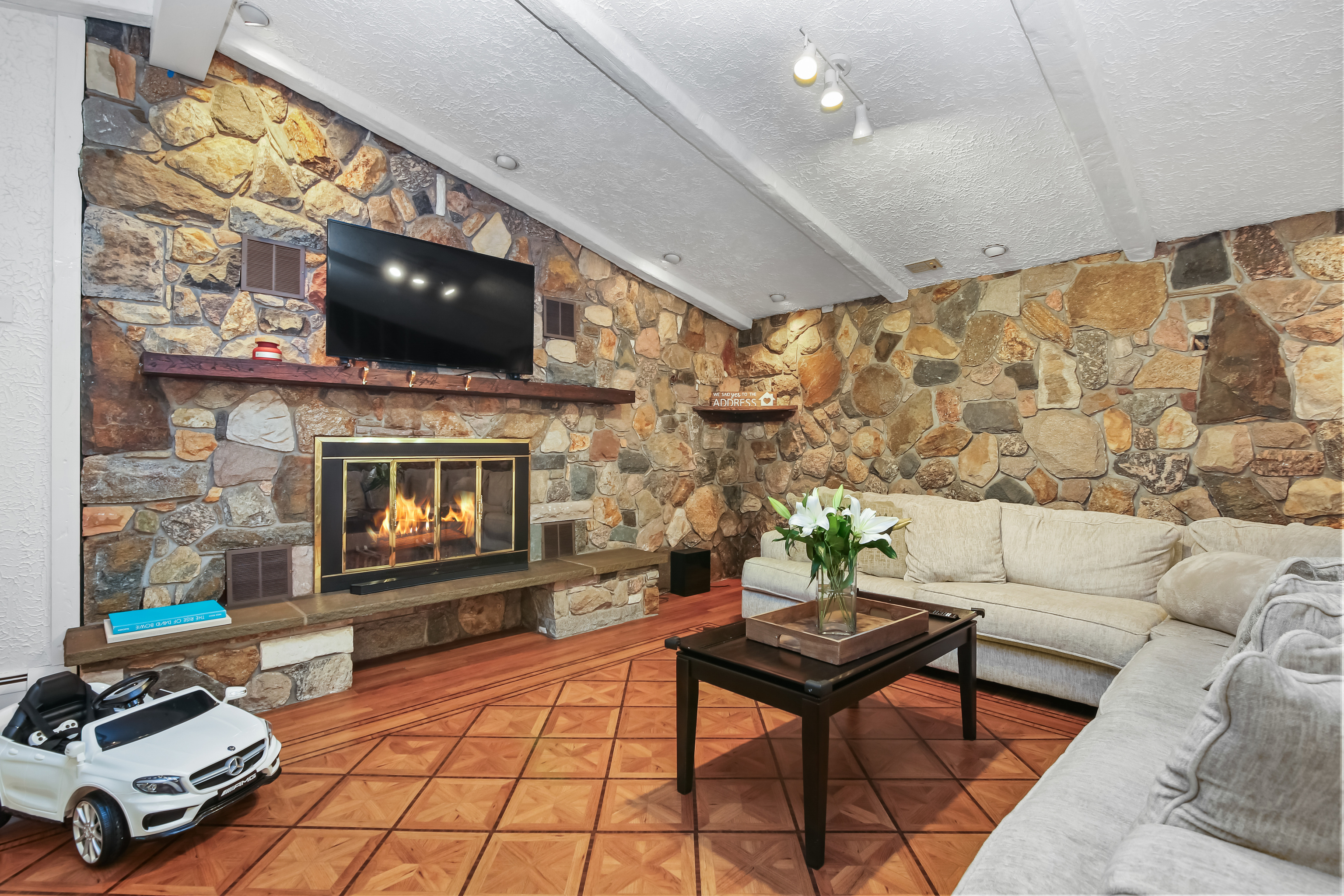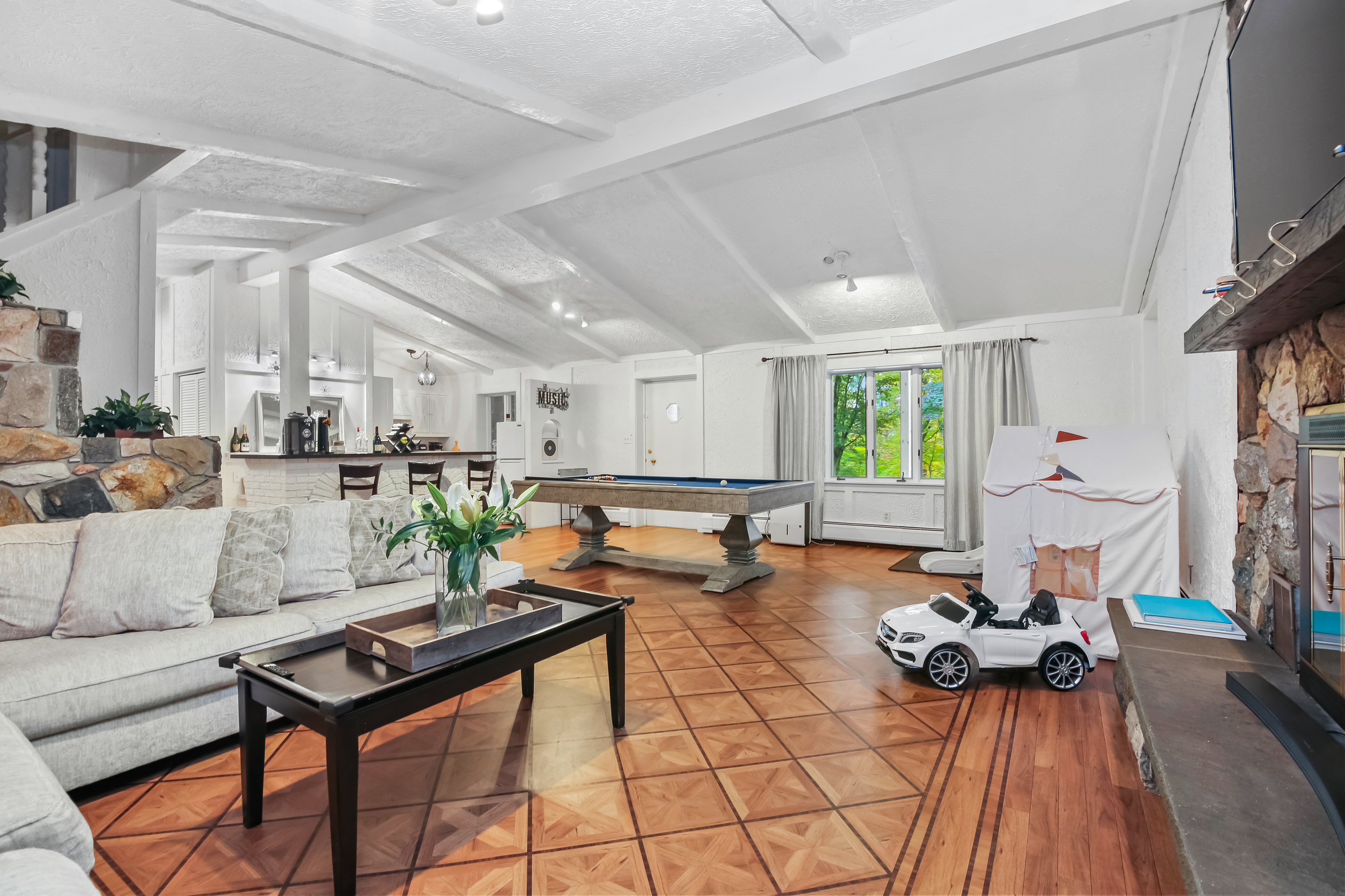 Welcome to 244 Strobel Road - a one-of-a-kind Trumbull residence that perfectly balances space, lifestyle, and location. Privately set on a wooded lot with deeded Pinewood Lake rights, this 4,075 sq ft expanded Colonial has some beautiful updates with endless potential for more. Discover 3 bedrooms and 3.5 baths with a thoughtfully designed layout ideal for everyday living and entertaining. The main level features sun-filled living and dining spaces, hardwood floors, and a first-floor en-suite bedroom with radiant heated floors-perfect for guests or multi-generational living. The kitchen, also with radiant heat, opens seamlessly to the dining area for effortless flow. Step outside to a brand-new composite deck overlooking a peaceful, wooded backdrop. Below, a patio with a screened-in porch extends the living space, creating the perfect spot for relaxing or entertaining. The walk-out lower level impresses with vaulted ceilings, a second kitchen, and bar area, offering flexibility for gatherings, extended family, or a private in-law suite. Car enthusiasts will love the five-car garage, a rare find, with room for vehicles, storage, boat, or a workshop. A dedicated home office and cedar closet add comfort and functionality. Located in one of Trumbull's most desirable neighborhoods, this home offers easy access to award-winning schools, parks, shopping, major commuting routes, and Pinewood Lake for swimming, kayaking, and year-round recreation.