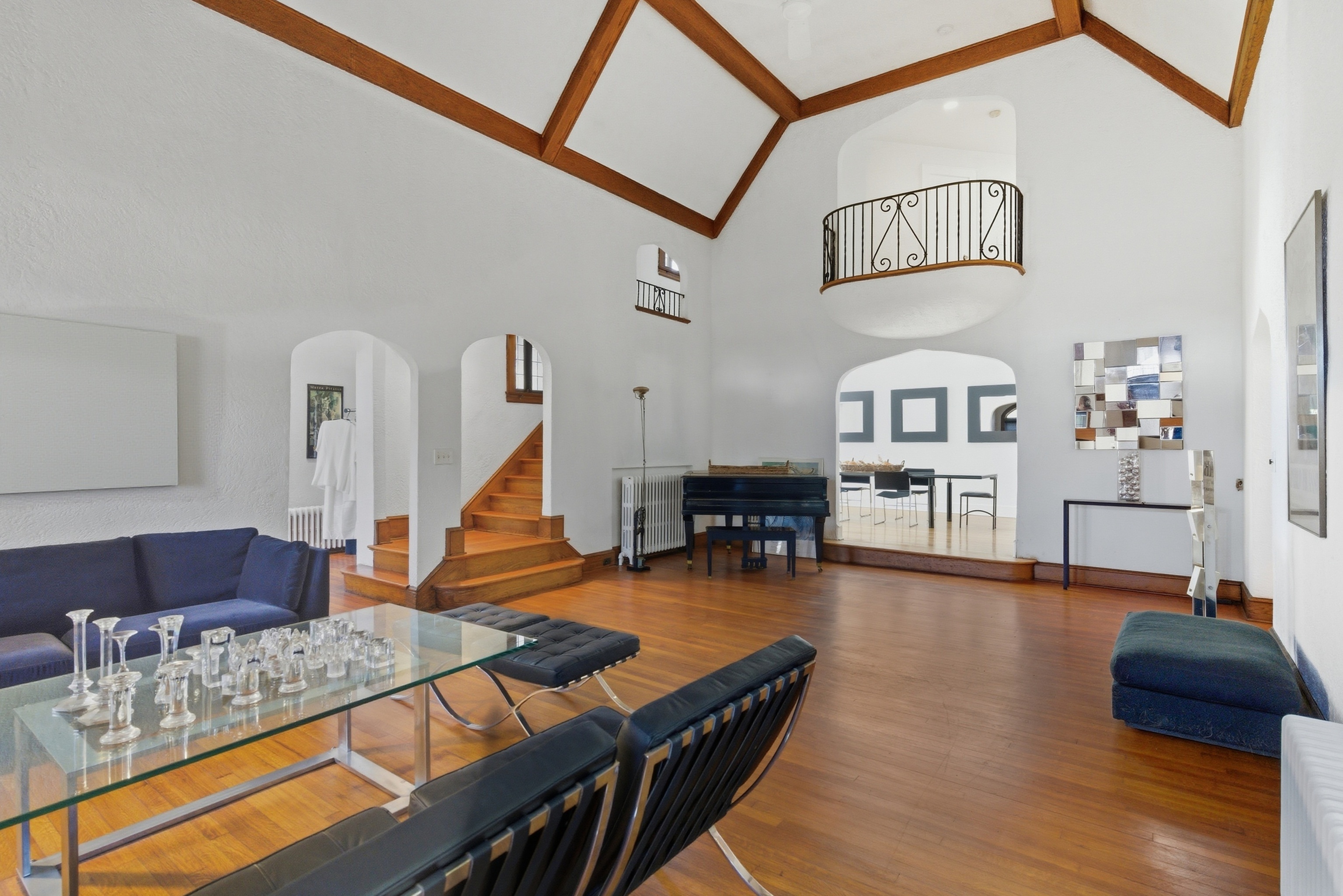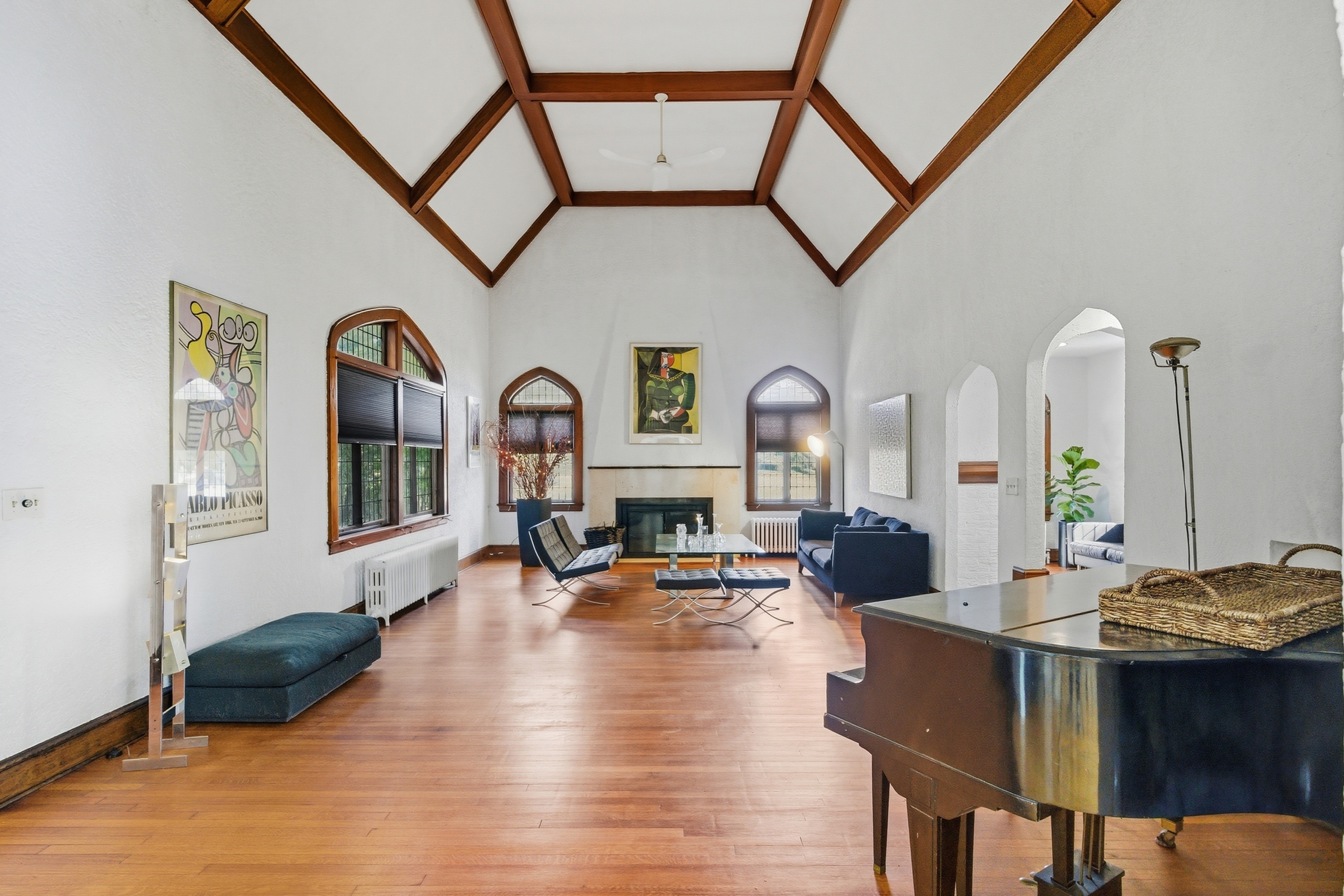 Discover timeless sophistication in this Colonial-Tudor masterpiece, once the residence of Colonel Henry Andrews Mucci-the U.S. Army Ranger who led the heroic 1945 mission rescuing 513 survivors from Cabanatuan Prison Camp. Built in 1929 and prominently set on a corner lot along one of Bridgeport's most historic streets, this 3,087 sq ft home blends architectural grandeur with modern comfort. Step inside to an impressive living room featuring soaring cathedral ceilings, a stately fireplace, and a second-floor balcony overlooking the space-ideal for both intimate gatherings and grand entertaining. The renovated chef's kitchen showcases high-end finishes and opens to a sun-filled den, leading to a screened-in porch and private fenced-in backyard. The expansive primary suite offers a true retreat with a large updated bathroom, walk-in closet, and plenty of natural light. Three additional well-appointed bedrooms and two beautifully maintained bathrooms provide comfort for family or guests. Classic details-such as a stucco exterior, rich woodwork, and original character-are complemented by many modern updates. Additional features include a rare 3-car garage and flexible living spaces for work, relaxation, or hosting. Located near Seaside Park, Beardsley Park, and minutes from I-95 and the Merritt Parkway, this home offers excellent convenience for commuters and weekend escapes. Enjoy proximity to local dining, shopping, and the Bridgeport Public Library along Main