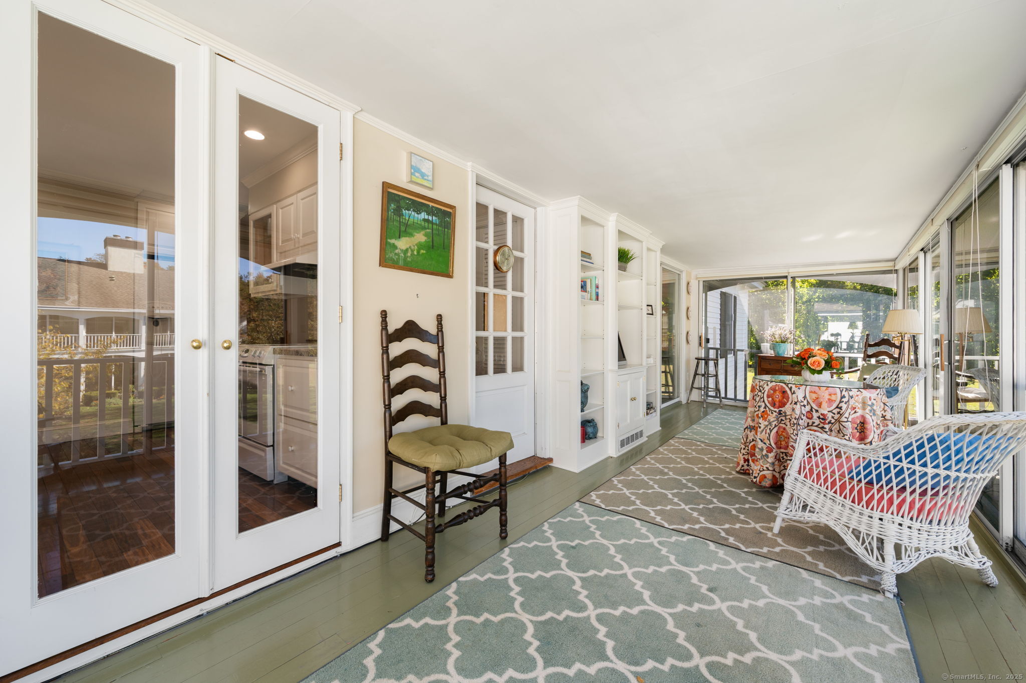 Elegant and sophisticated one-floor living in the heart of charming and historic Old Lyme Village. Gracious entry welcomes guests opens to an elegant, spacious, sun-filled living room with a cozy fireplace, flanked by twin, lighted, built-in book or display cases. A white, bright kitchen with access to a sun-filled Sunroom helps make meal preparation a delight. The dining room is enhanced by charming, twin corner cabinets. The Sunroom is also lovely place for dining or relaxing with friends, surrounded by your beautiful, natural, outdoor surroundings. This unit's location enjoys sprawling backyard serene & peaceful views. Two Bedroom Suites complete this pretty condominium. A small office space is creatively located in a closet space. One-car detached garage is located nearby with ample guest parking. This special shoreline community offers local library, art galleries, shops, tennis courts nearby, and town beach on L.I.Sound. Conveniently located to highways and conveniences, about two hours to New York or Boston. This is a gem!