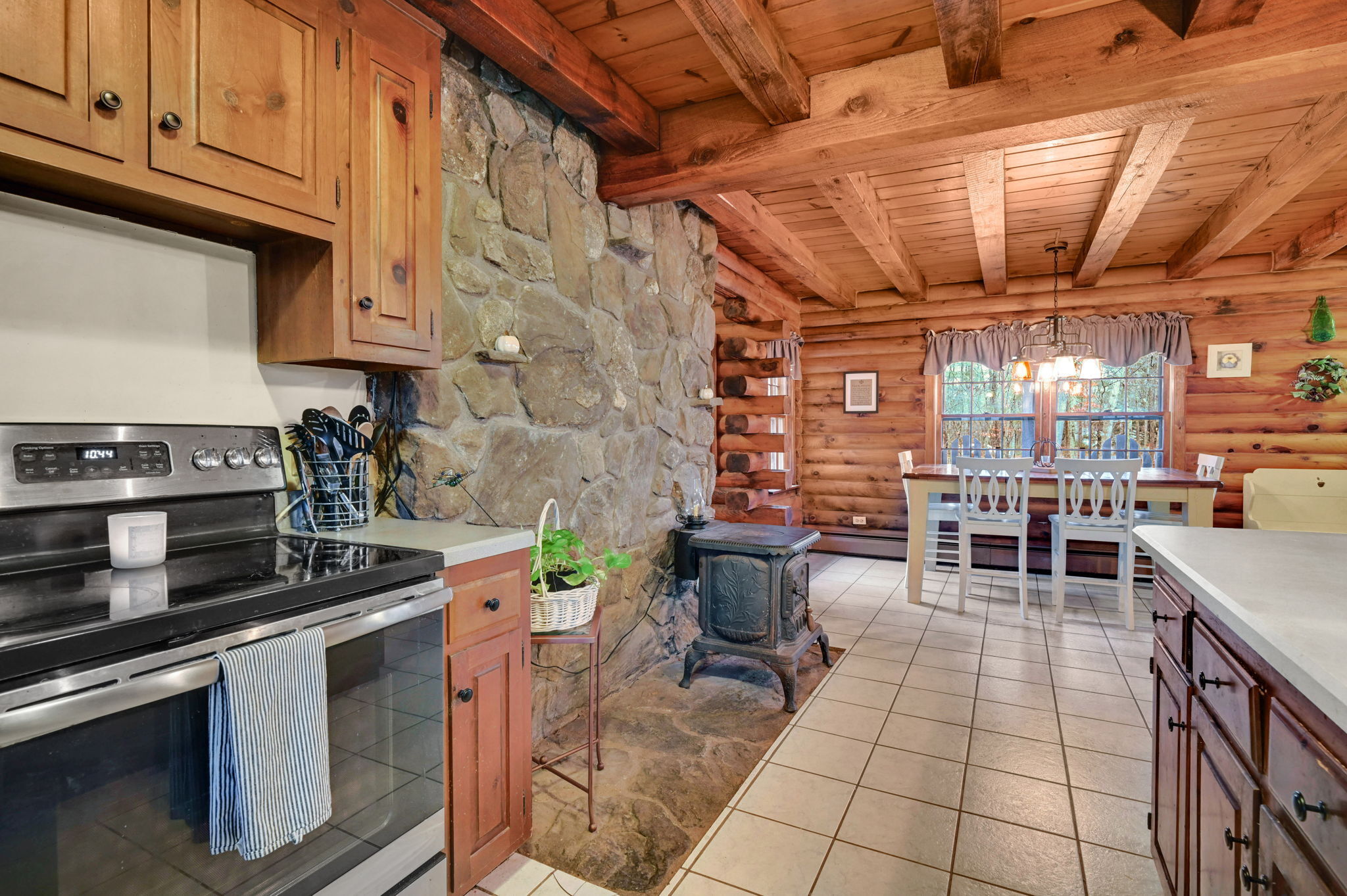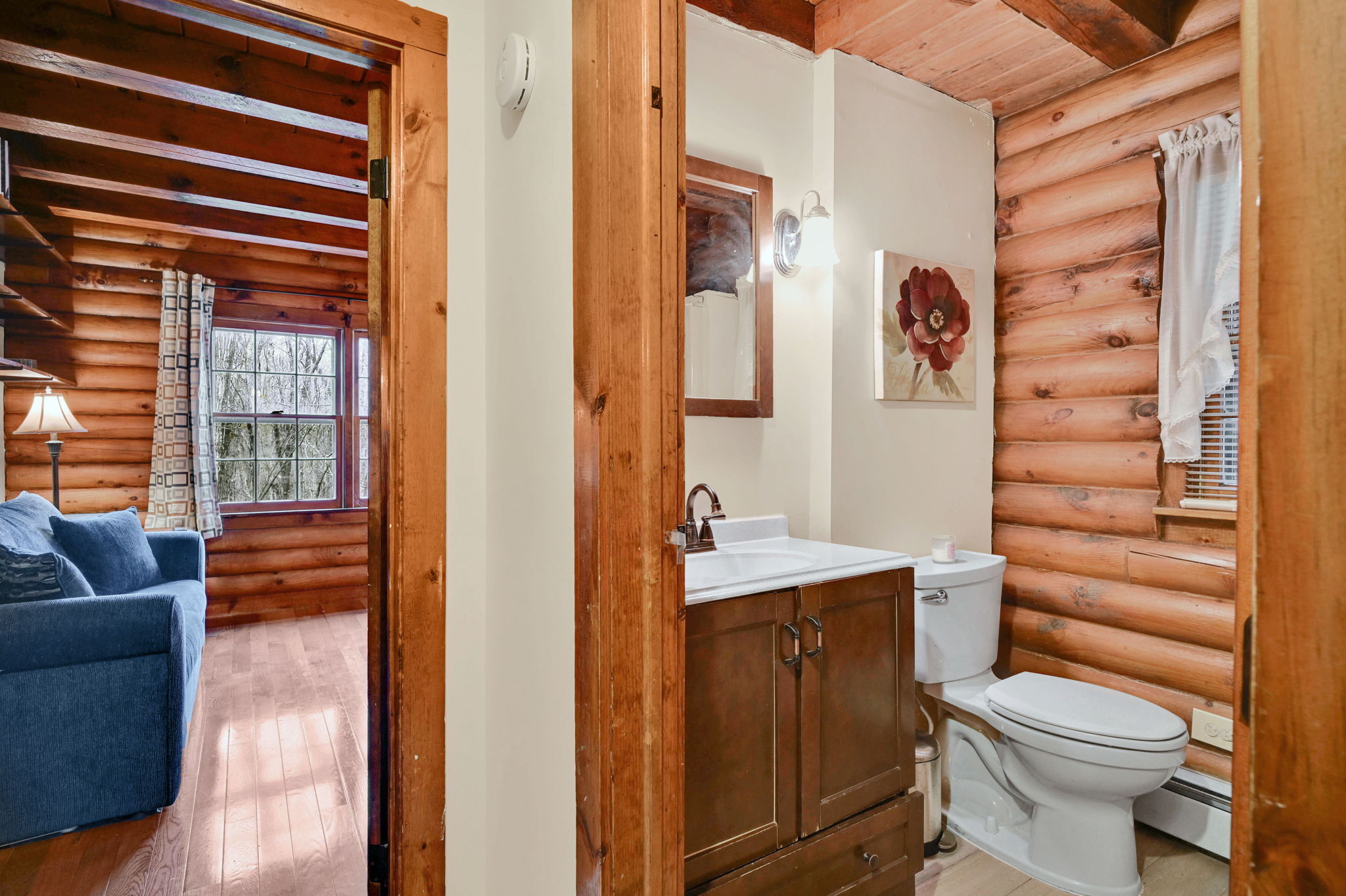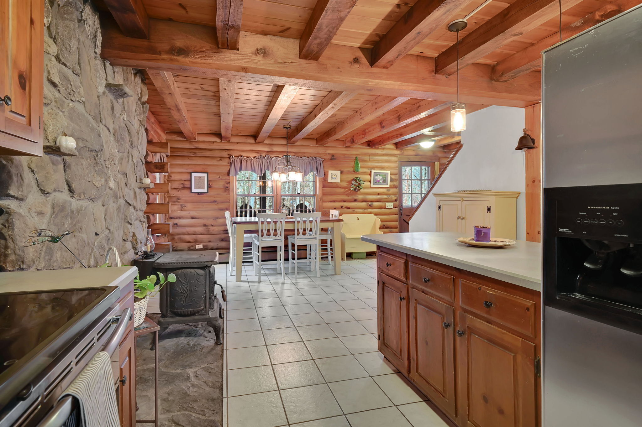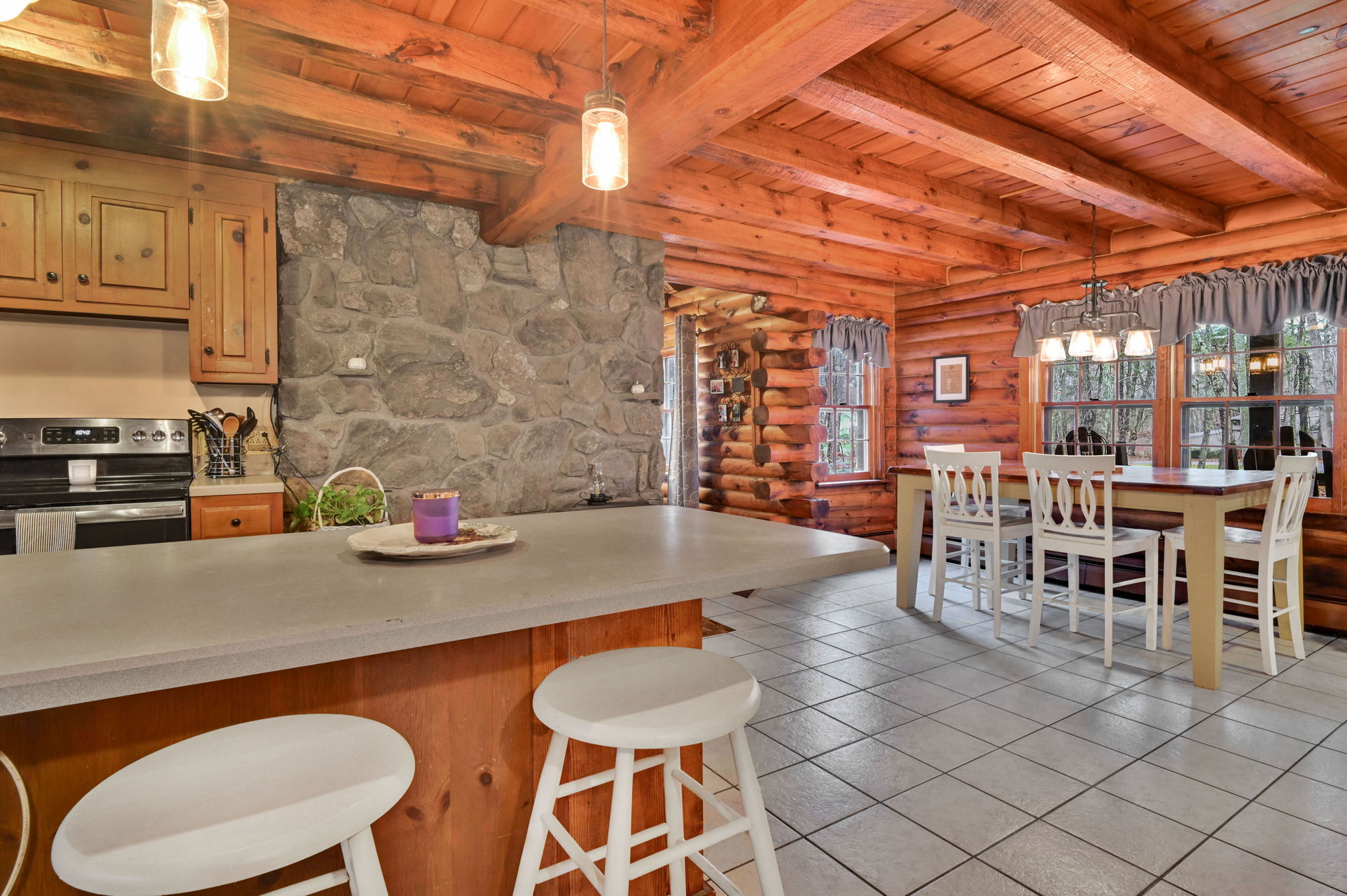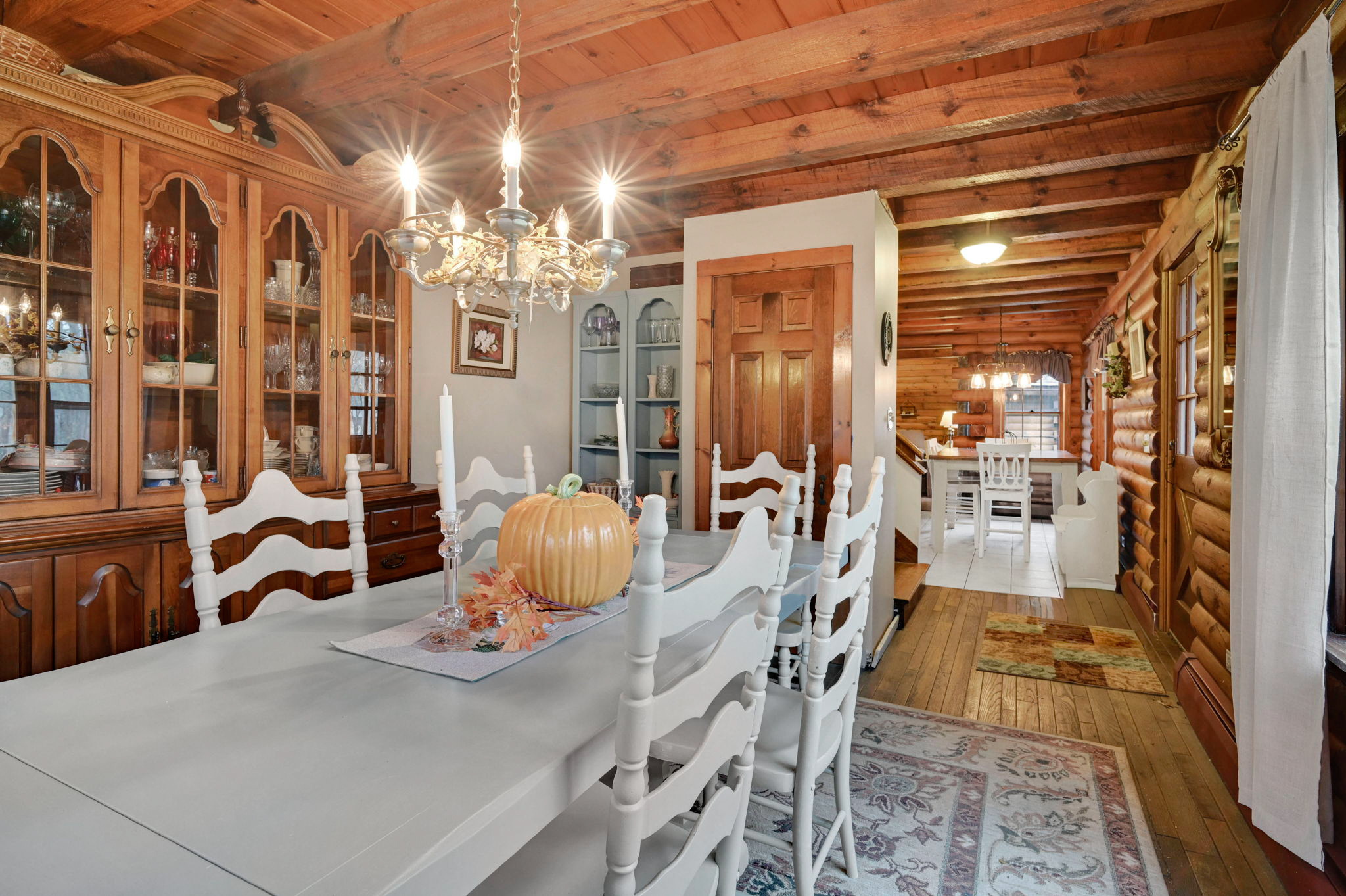 *Multiple Offers: Please submit offers by Monday, 11/17 at 12pm* Nestled on a quiet country road in a desirable subdivision, this log home offers rustic charm with retreat vibes that can be your everyday place to call home. Set on over an acre of wooded land and bordered by 217 acres of state forest, the property provides exceptional privacy and a serene natural backdrop. Inside, the warmth of exposed log walls and beams, and fieldstone fireplaces create a timeless country ambiance. The eat-in kitchen features a breakfast bar for casual meals and prep space. Around the corner is a spacious formal dining room perfect for hosting gatherings. The living room has impressive, yet cozy features such as a cathedral log ceiling, exposed beams, and 2-story fieldstone fireplace. The first floor also includes a versatile bedroom or office and a full bathroom. Upstairs are 3 bedrooms and a full bath, with the primary bedroom highlighted by the second stone fireplace and a spacious closet. Above the garage, a heated bonus room with a separate entrance presents endless possibilities - whether as a guest suite, in-law apartment, home office, or creative studio. The walkout lower level provides ample storage and laundry facilities. A paved, flat driveway leads to the attached two-car garage. The covered front and back porches extend the living space outdoors, ideal for relaxing or entertaining. Recent updates include newer boiler, oil tank, and well tank.