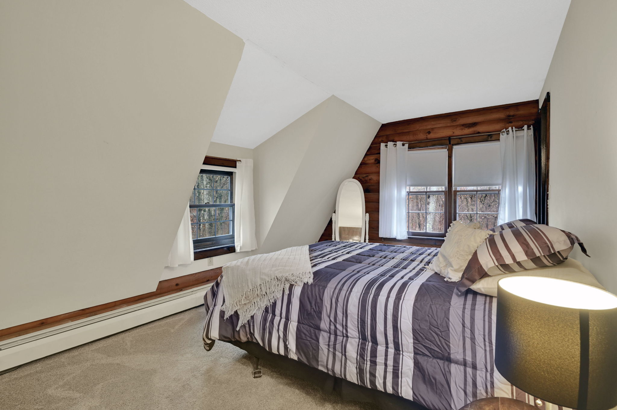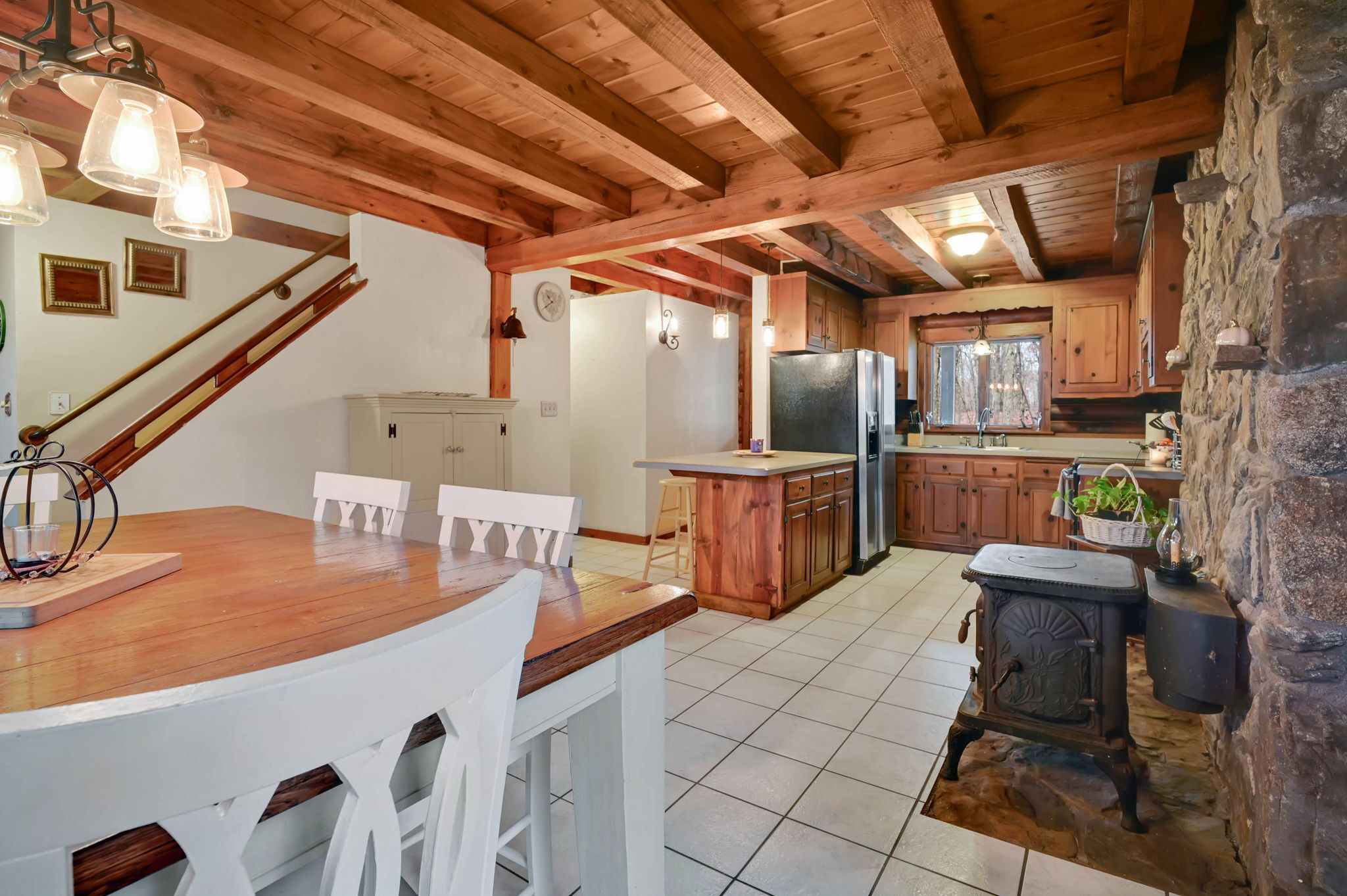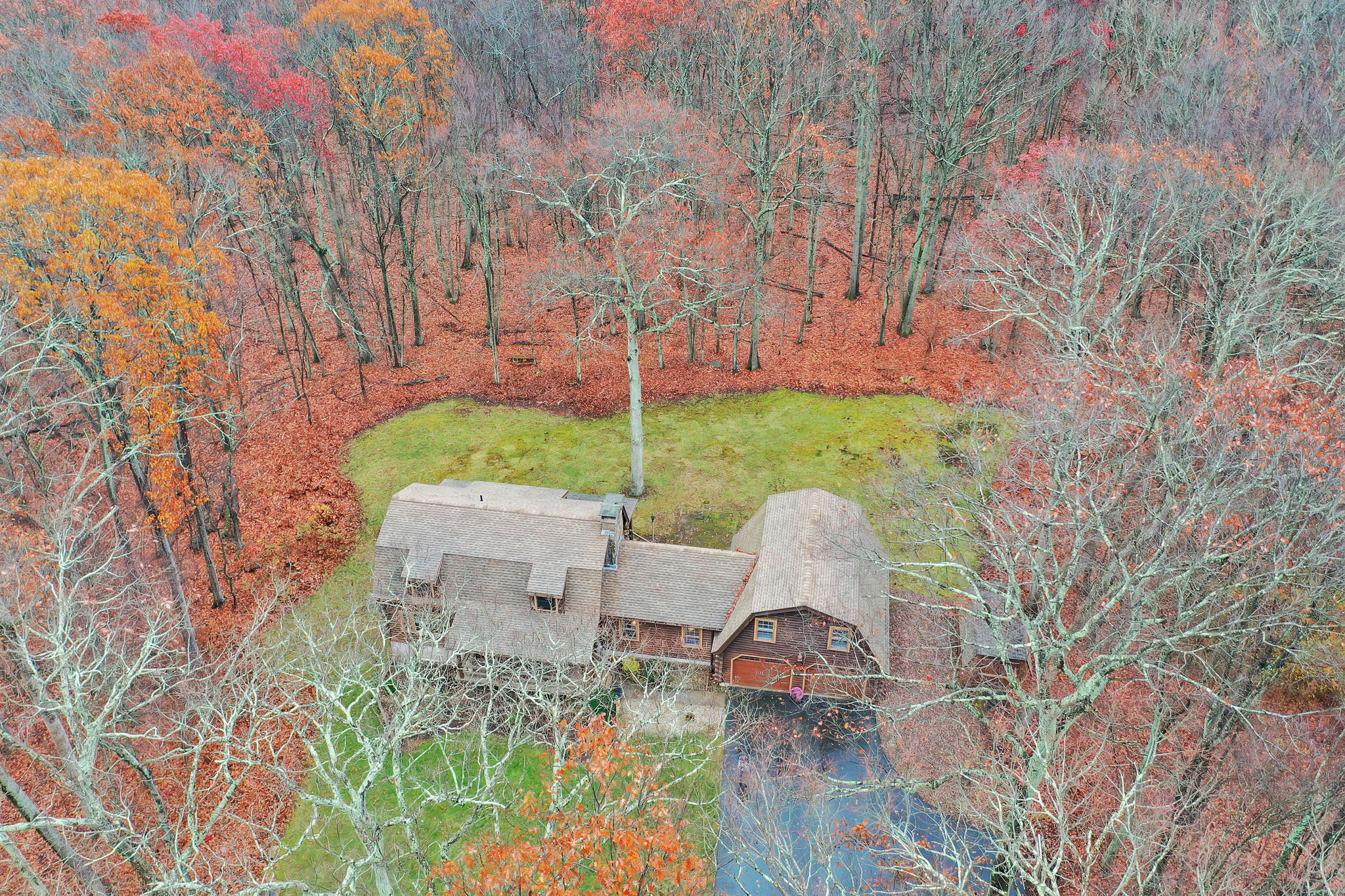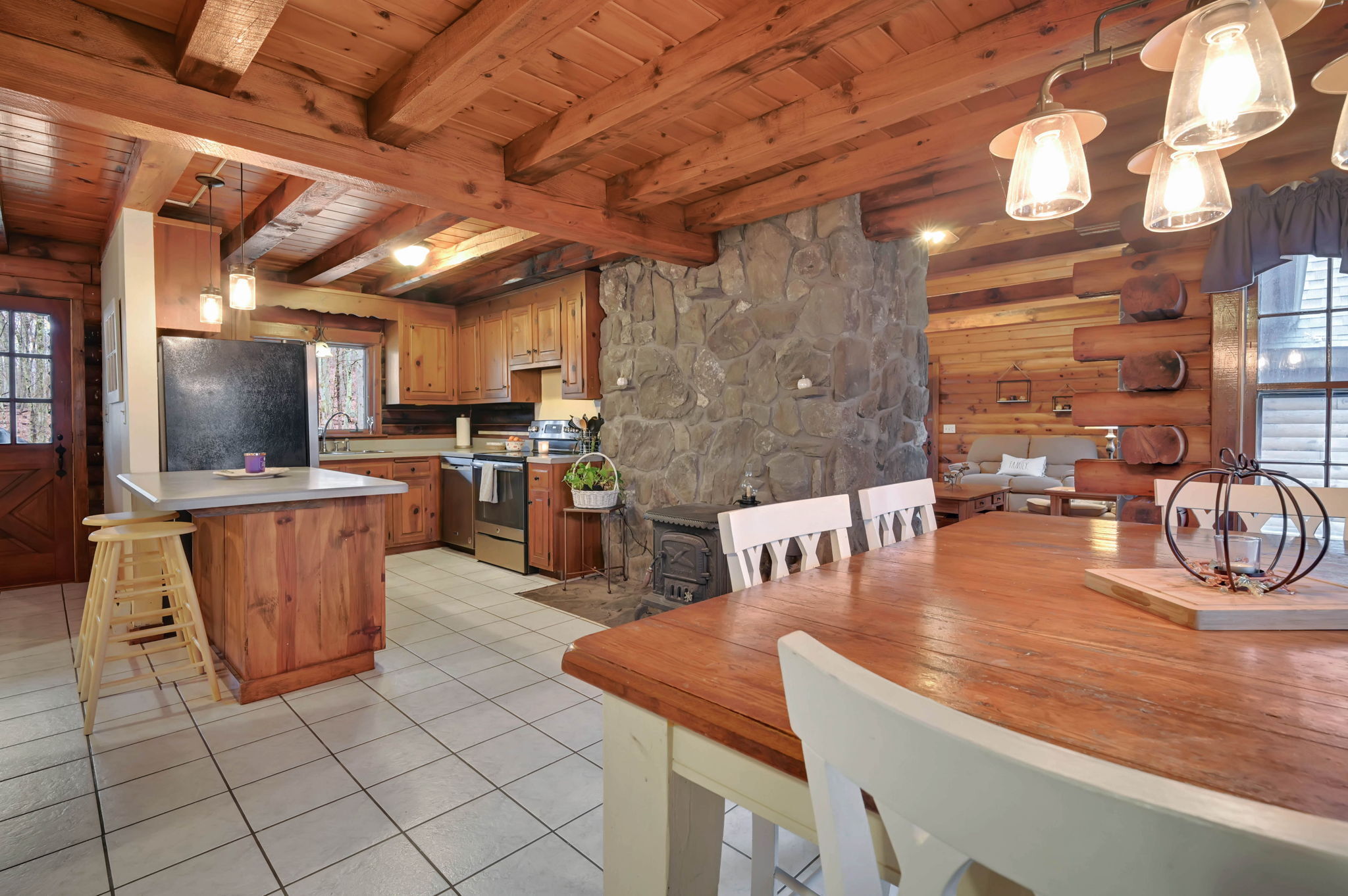 *Multiple Offers: Please submit offers by Monday, 11/17 at 12pm* Nestled on a quiet country road in a desirable subdivision, this log home offers rustic charm with retreat vibes that can be your everyday place to call home. Set on over an acre of wooded land and bordered by 217 acres of state forest, the property provides exceptional privacy and a serene natural backdrop. Inside, the warmth of exposed log walls and beams, and fieldstone fireplaces create a timeless country ambiance. The eat-in kitchen features a breakfast bar for casual meals and prep space. Around the corner is a spacious formal dining room perfect for hosting gatherings. The living room has impressive, yet cozy features such as a cathedral log ceiling, exposed beams, and 2-story fieldstone fireplace. The first floor also includes a versatile bedroom or office and a full bathroom. Upstairs are 3 bedrooms and a full bath, with the primary bedroom highlighted by the second stone fireplace and a spacious closet. Above the garage, a heated bonus room with a separate entrance presents endless possibilities - whether as a guest suite, in-law apartment, home office, or creative studio. The walkout lower level provides ample storage and laundry facilities. A paved, flat driveway leads to the attached two-car garage. The covered front and back porches extend the living space outdoors, ideal for relaxing or entertaining. Recent updates include newer boiler, oil tank, and well tank.
