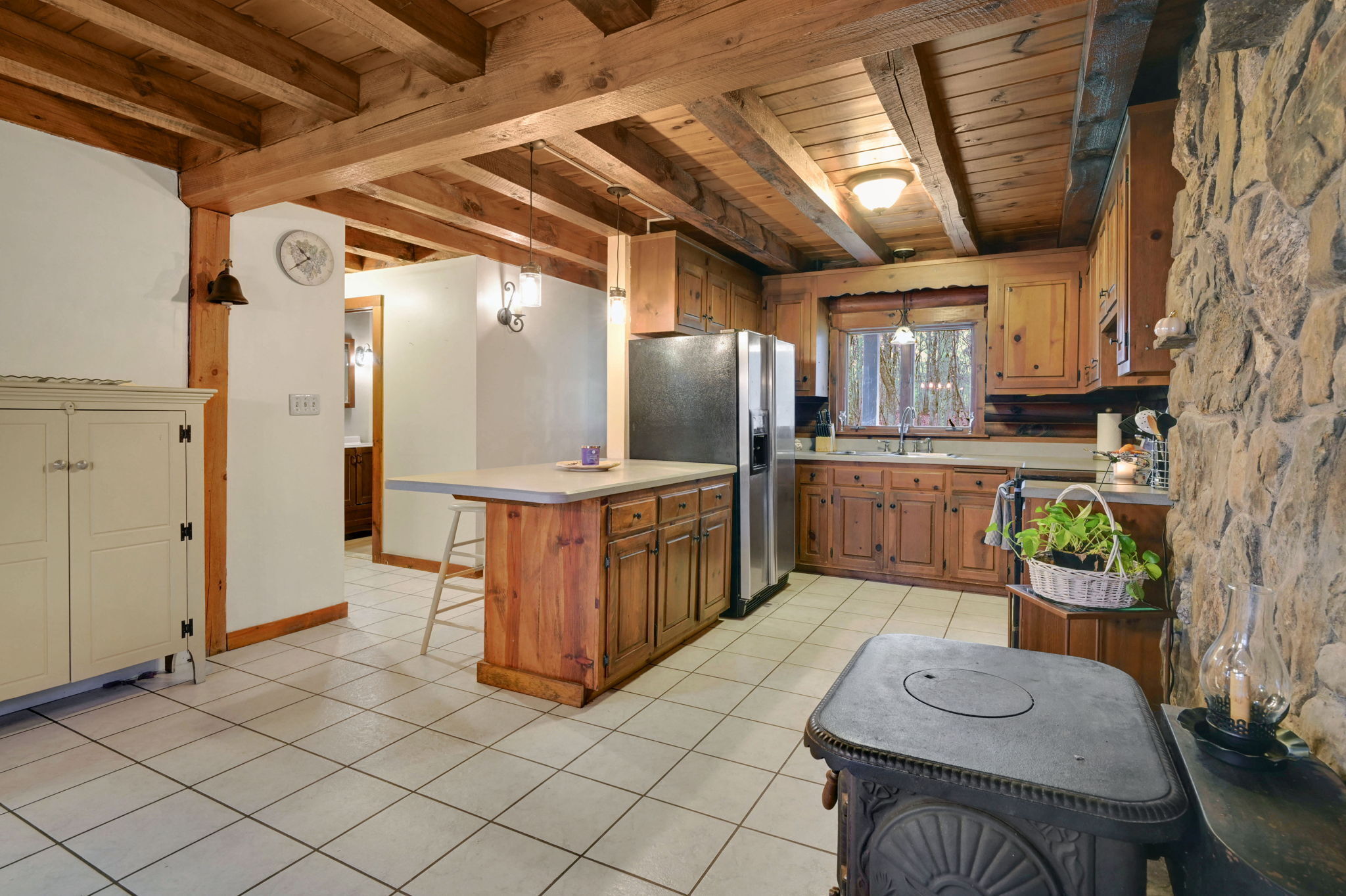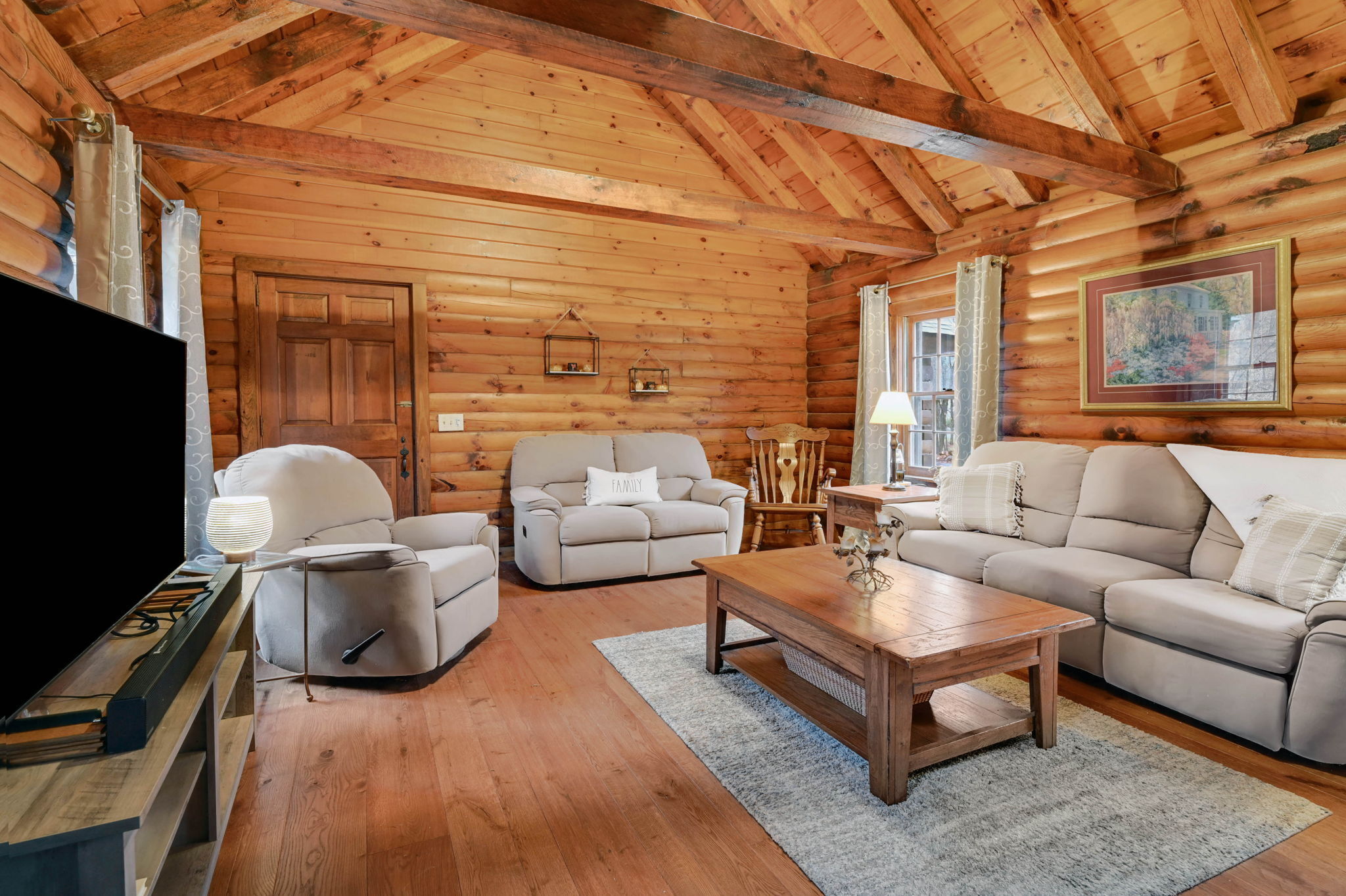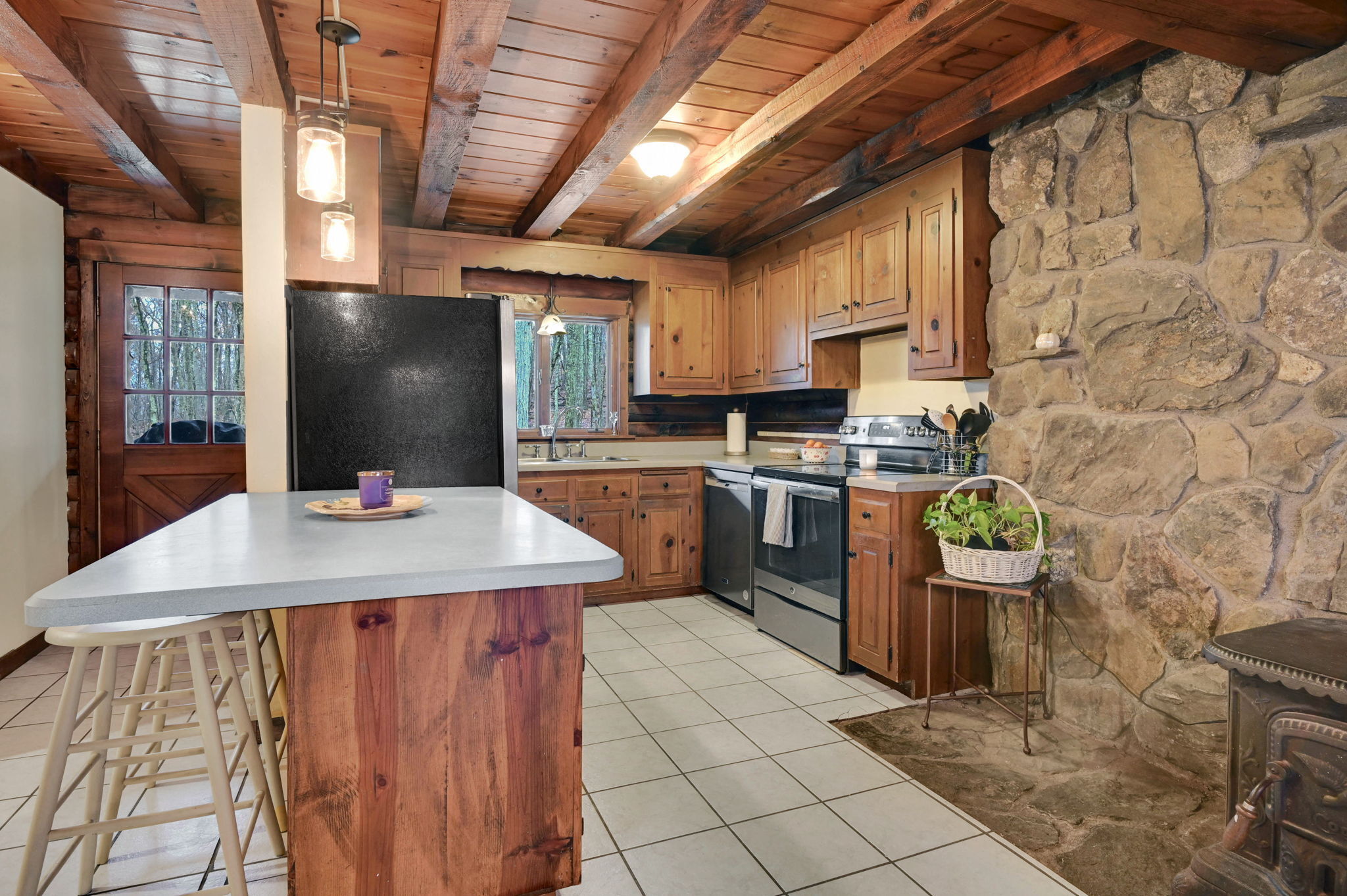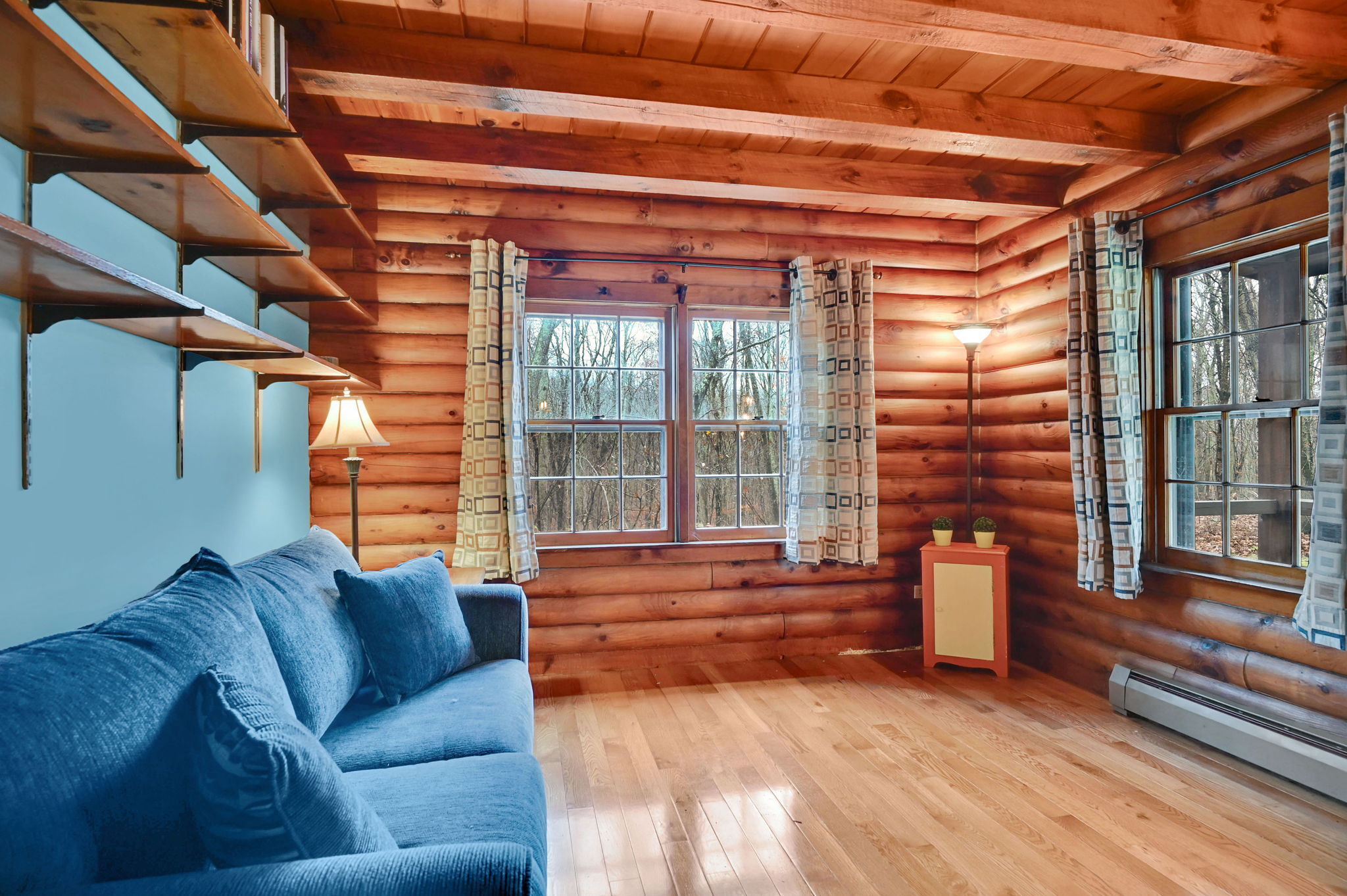 *Multiple Offers: Please submit offers by Monday, 11/17 at 12pm* Nestled on a quiet country road in a desirable subdivision, this log home offers rustic charm with retreat vibes that can be your everyday place to call home. Set on over an acre of wooded land and bordered by 217 acres of state forest, the property provides exceptional privacy and a serene natural backdrop. Inside, the warmth of exposed log walls and beams, and fieldstone fireplaces create a timeless country ambiance. The eat-in kitchen features a breakfast bar for casual meals and prep space. Around the corner is a spacious formal dining room perfect for hosting gatherings. The living room has impressive, yet cozy features such as a cathedral log ceiling, exposed beams, and 2-story fieldstone fireplace. The first floor also includes a versatile bedroom or office and a full bathroom. Upstairs are 3 bedrooms and a full bath, with the primary bedroom highlighted by the second stone fireplace and a spacious closet. Above the garage, a heated bonus room with a separate entrance presents endless possibilities - whether as a guest suite, in-law apartment, home office, or creative studio. The walkout lower level provides ample storage and laundry facilities. A paved, flat driveway leads to the attached two-car garage. The covered front and back porches extend the living space outdoors, ideal for relaxing or entertaining. Recent updates include newer boiler, oil tank, and well tank.