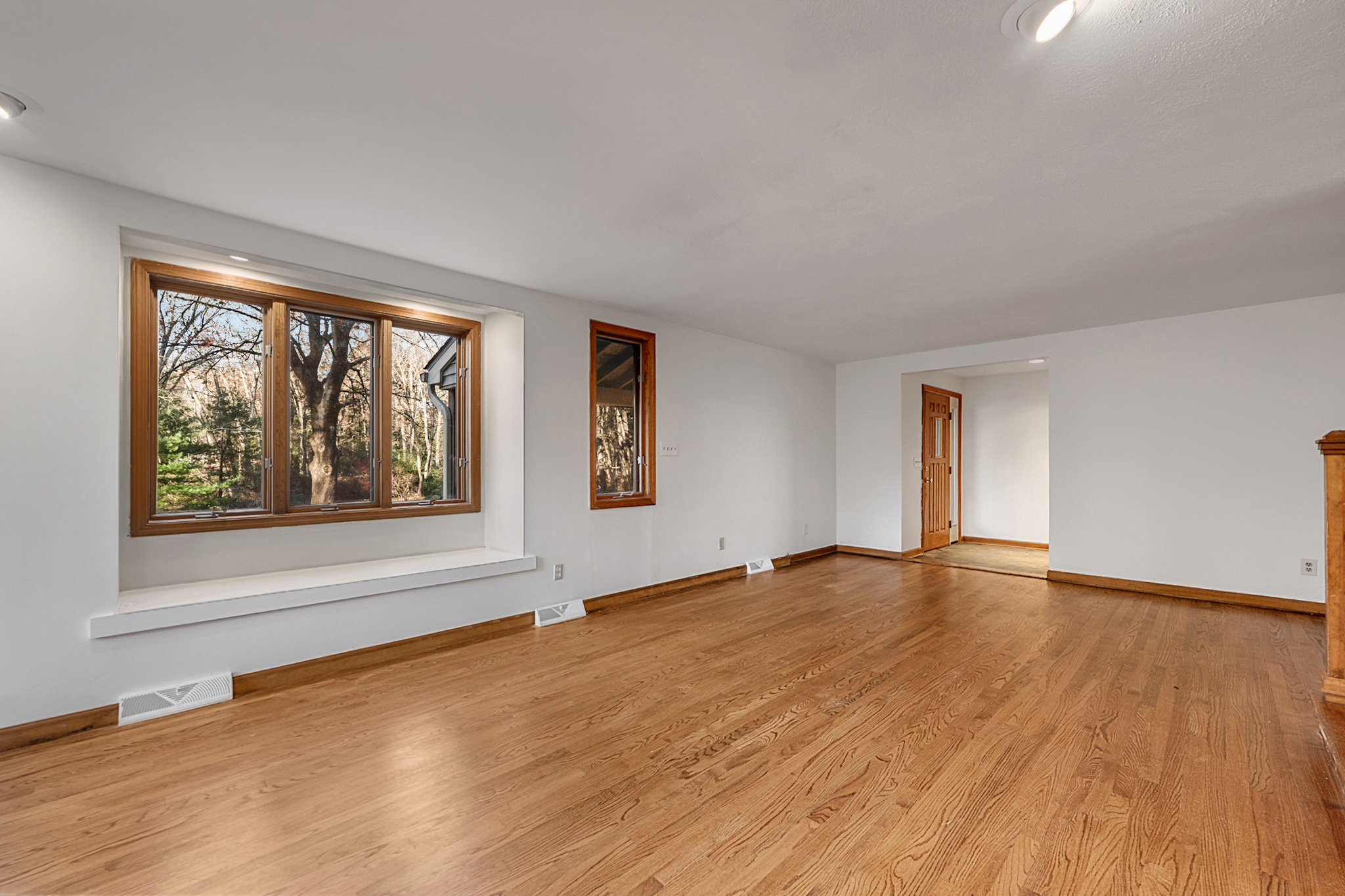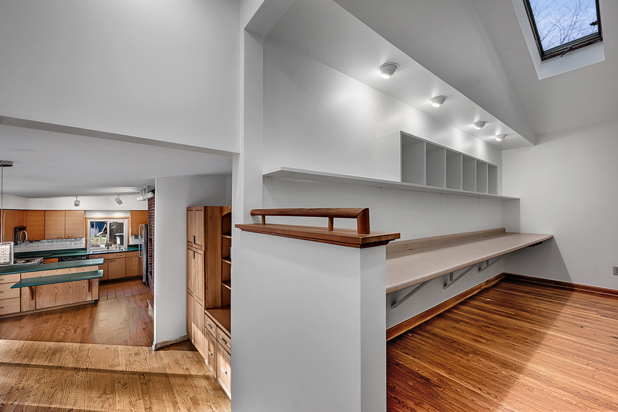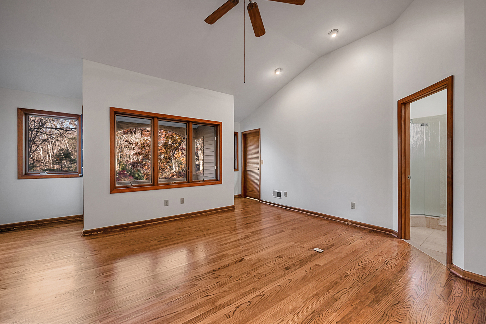 Situated on over 2 acres of private, wooded, park-like grounds, this spacious Split Level home is ready to move in and put your touches on it and make it your own. Upon entrance you'll be greeted by a cozy living room with beautiful stone fireplace and new hardwood floors with large windows that flood the room with natural light. The kitchen offers a breakfast bar and an antique cast iron, wood burning oven built into the chimney providing classic New England charm and opens up to the dining area with large windows and a slider that walks out to the back patio. The upper level offers a spacious office nook with a high ceiling and skylight and a large half bath with laundry that has room to make it a full bath and conveniently leads to the backyard which makes for a convenient mud room. Lastly, on this side of the home is the one of a kind master suite boasting vaulted ceilings, 2 walk-in closets, a large bathroom with stand up shower and jacuzzi tub, and best of all a private, covered porch overlooking the pond in the front yard. On the other side of the home is 2 additional bedrooms with large, double closets and the second full bathroom with plenty of room for a double vanity. New hardwood floors throughout, a brand new roof and plenty more features you won't find anywhere else make this unique home a must see.
