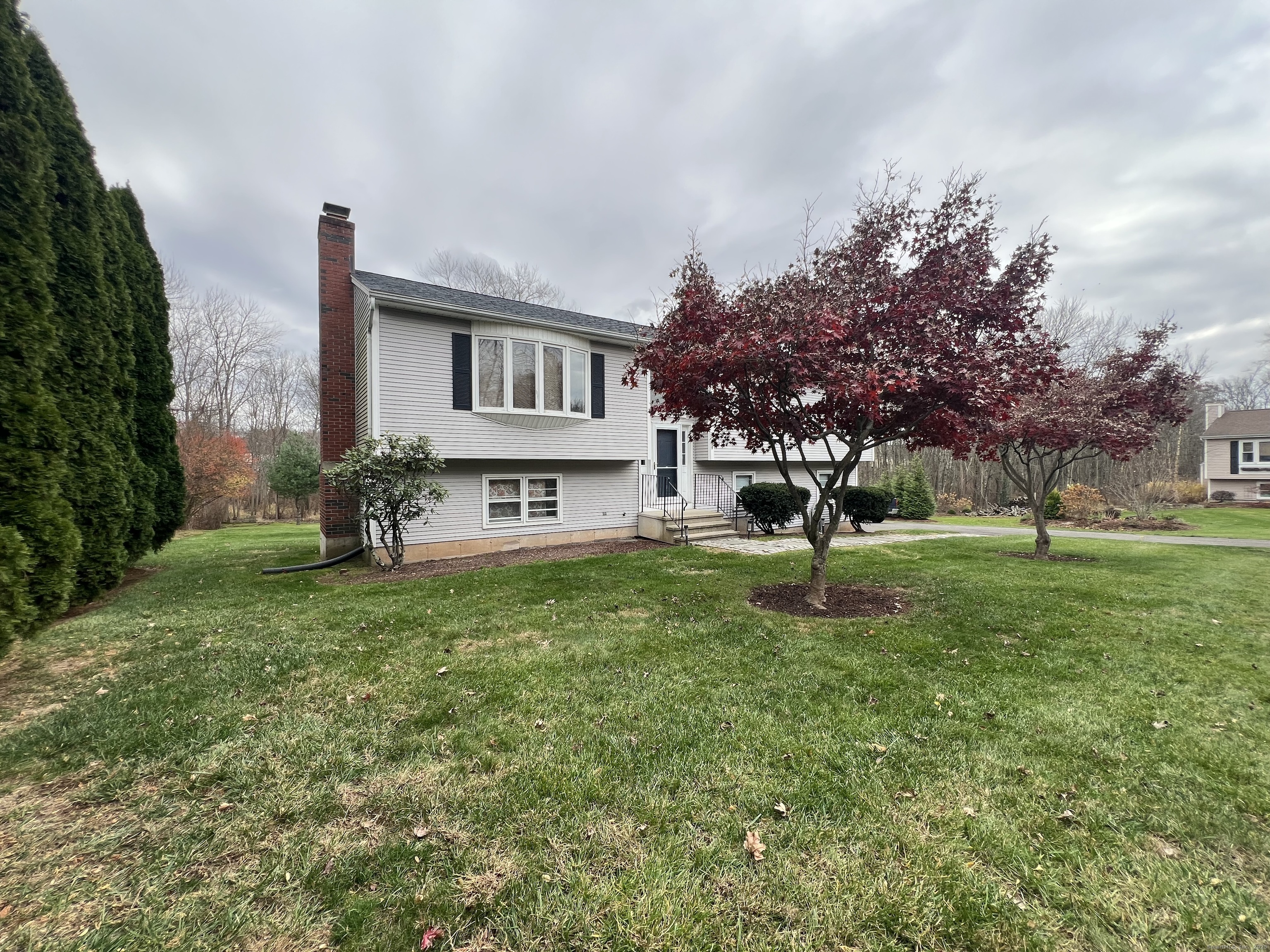 Amazing opportunity! This home is set back off the road at the end of a long driveway and feels like it is on it's own private cul-de-sac road. Large raised ranch with hardwood floors throughout the main level, vaulted ceilings in the living room, formal dining, and eat in kitchen with breakfast bar. The primary bedroom features a full bath that has recently been upgraded with just a few finishing touches remaining. The lower level offers additional living space and natural light which walks out to the beautiful yard. Updated mechanicals and roof, this home is priced to sell!