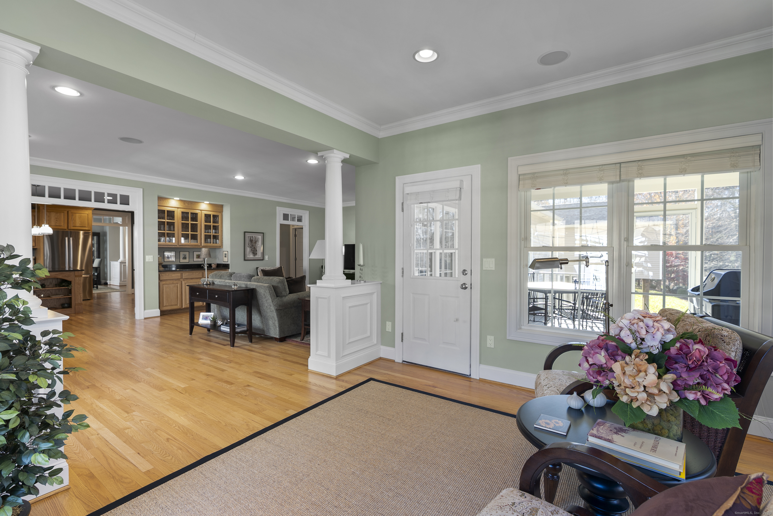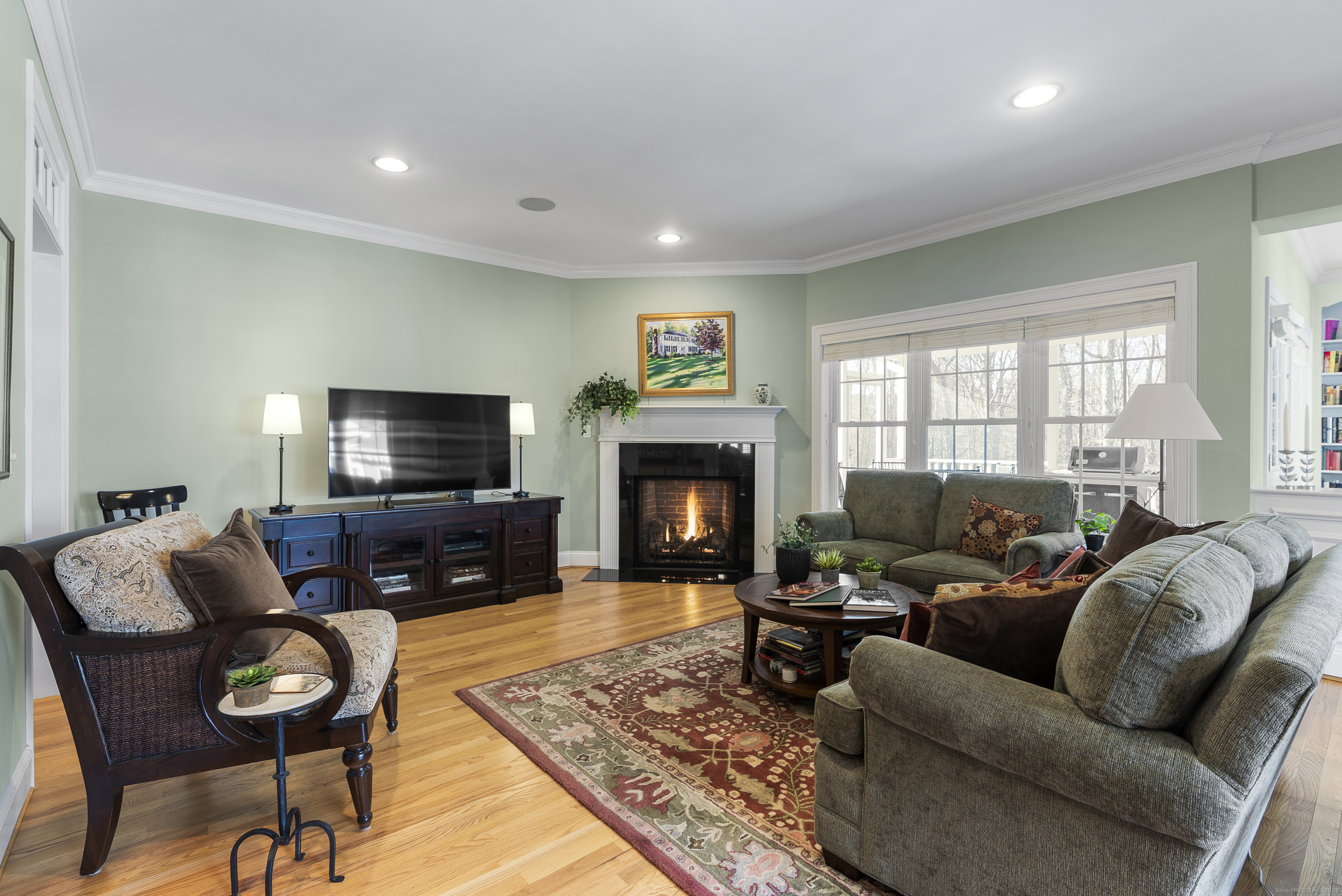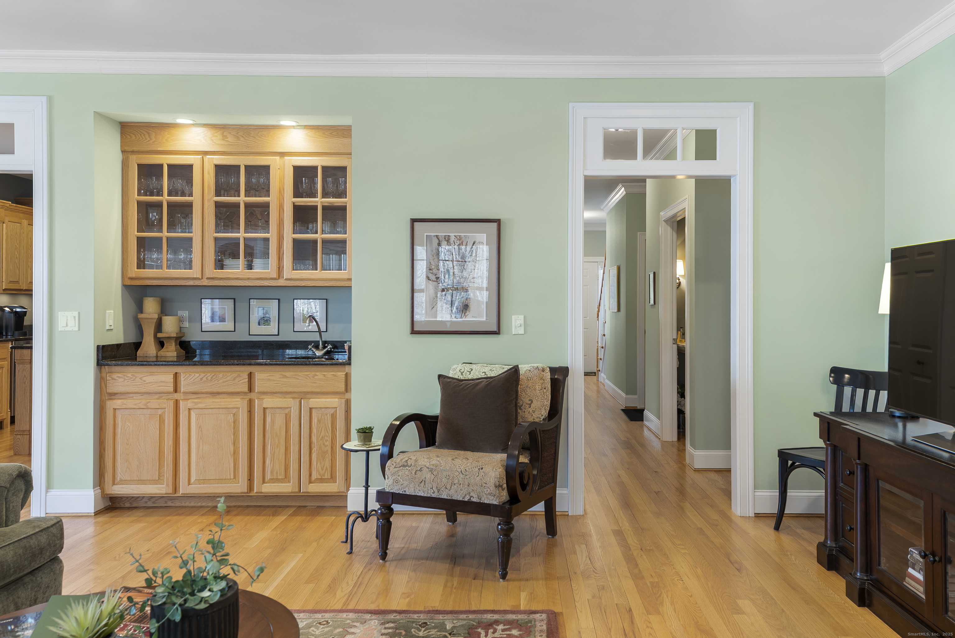 The largest and grandest floorplan in this very special home within Glastonbury's highly sought-after active adult community! Entertain in style in the expansive dining room with a lovely bay window. The kitchen features granite counters, stainless appliances, pantry, and a convenient prep island. Hardwood floors and 9-foot ceilings flow throughout the main level. The great room offers custom built-ins and a cozy gas fireplace, while the adjacent library-also with built-ins-provides the perfect quiet retreat. Enjoy outdoor living on the charming screened-in porch. The first-floor primary suite includes walk-in closets, transom windows, and a spacious bath with dual vanities and a soaking tub. Upstairs, two exceptionally large bedrooms share a well-appointed full bath. And wait until you see the finished walkout lower level! It features a beautiful office with its own gas fireplace and a half bath-ideal for work, hobbies, or guests. Additional features include central vac and an irrigation system. Refer to MLS 24141138