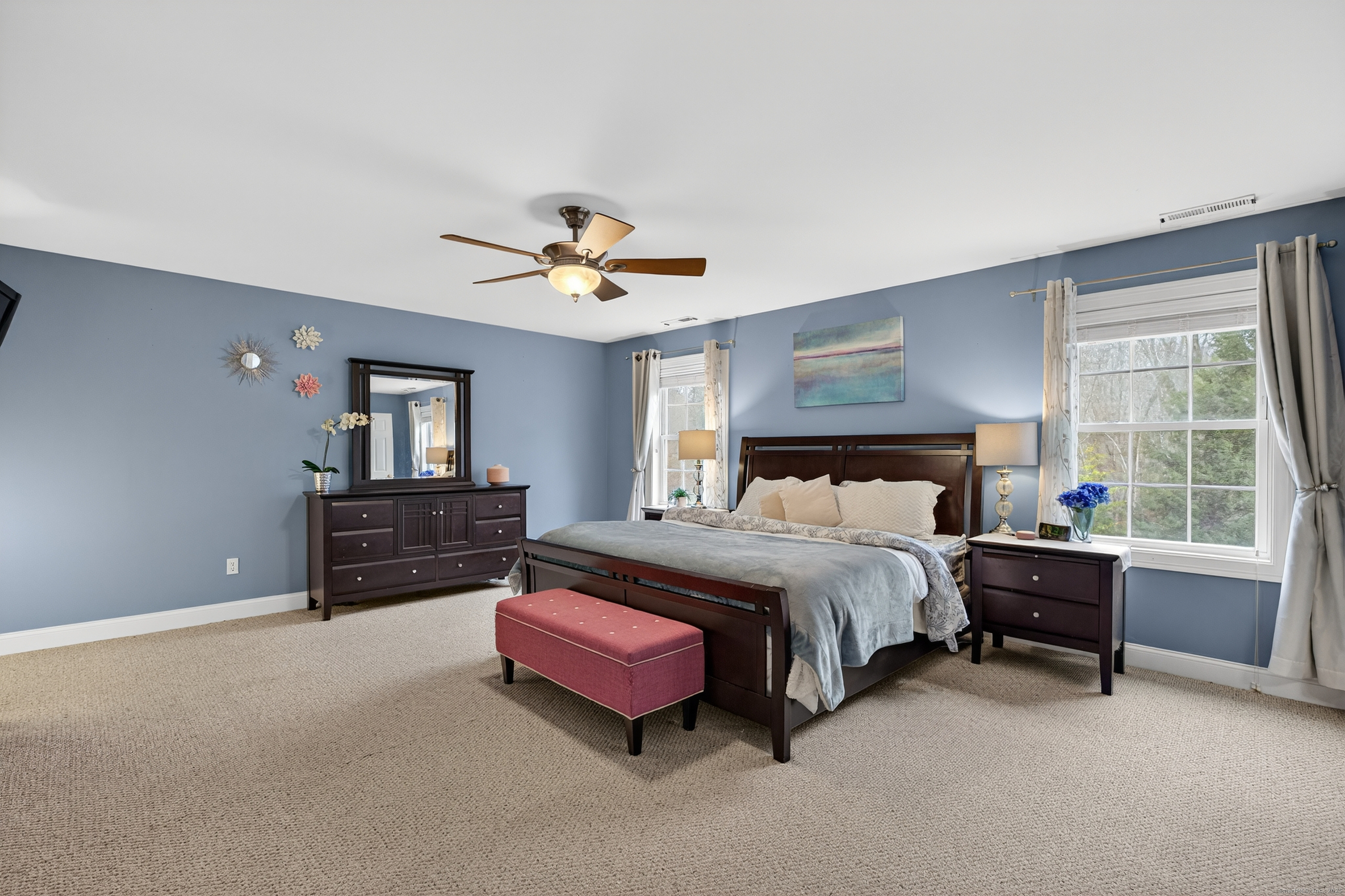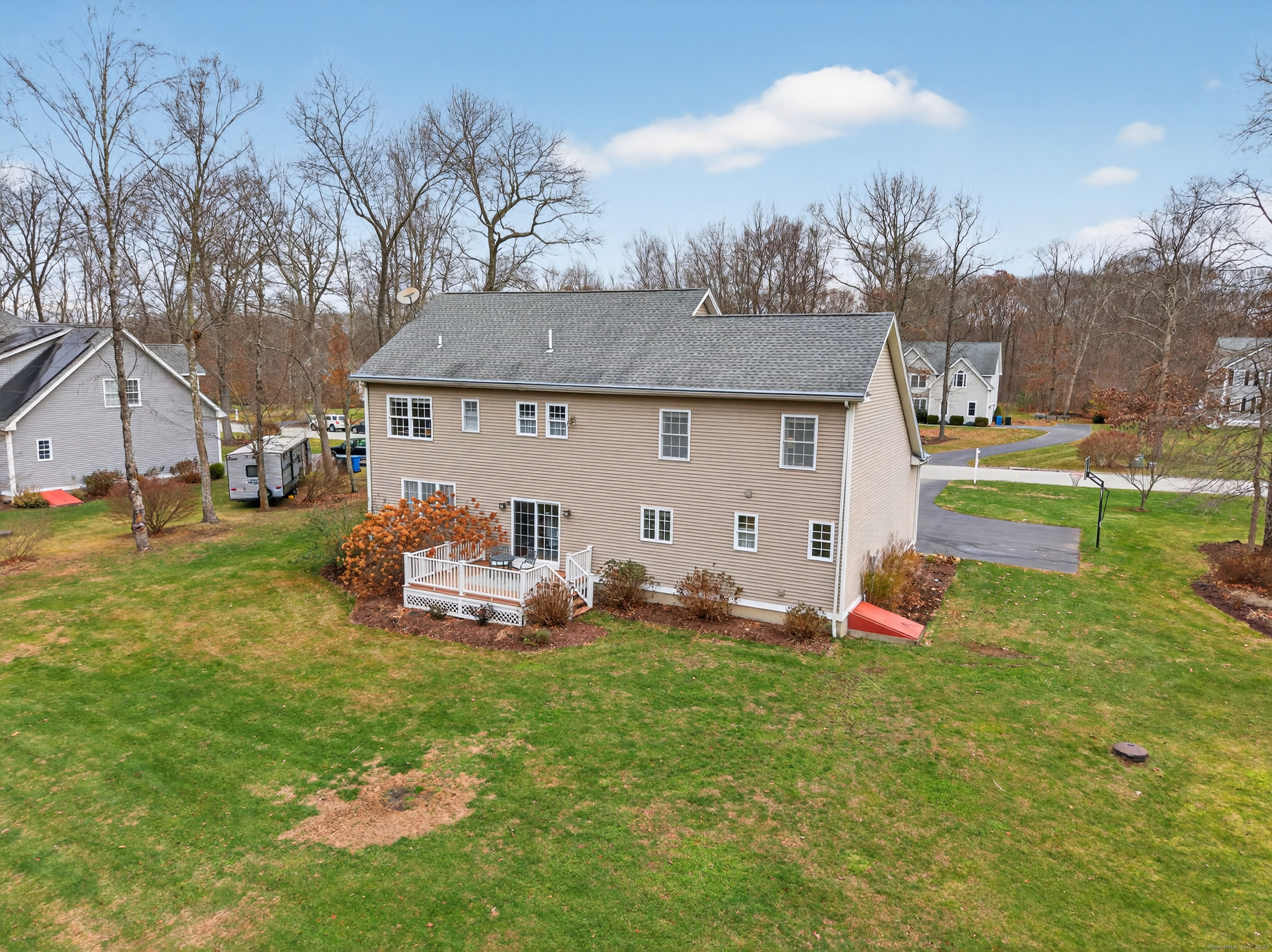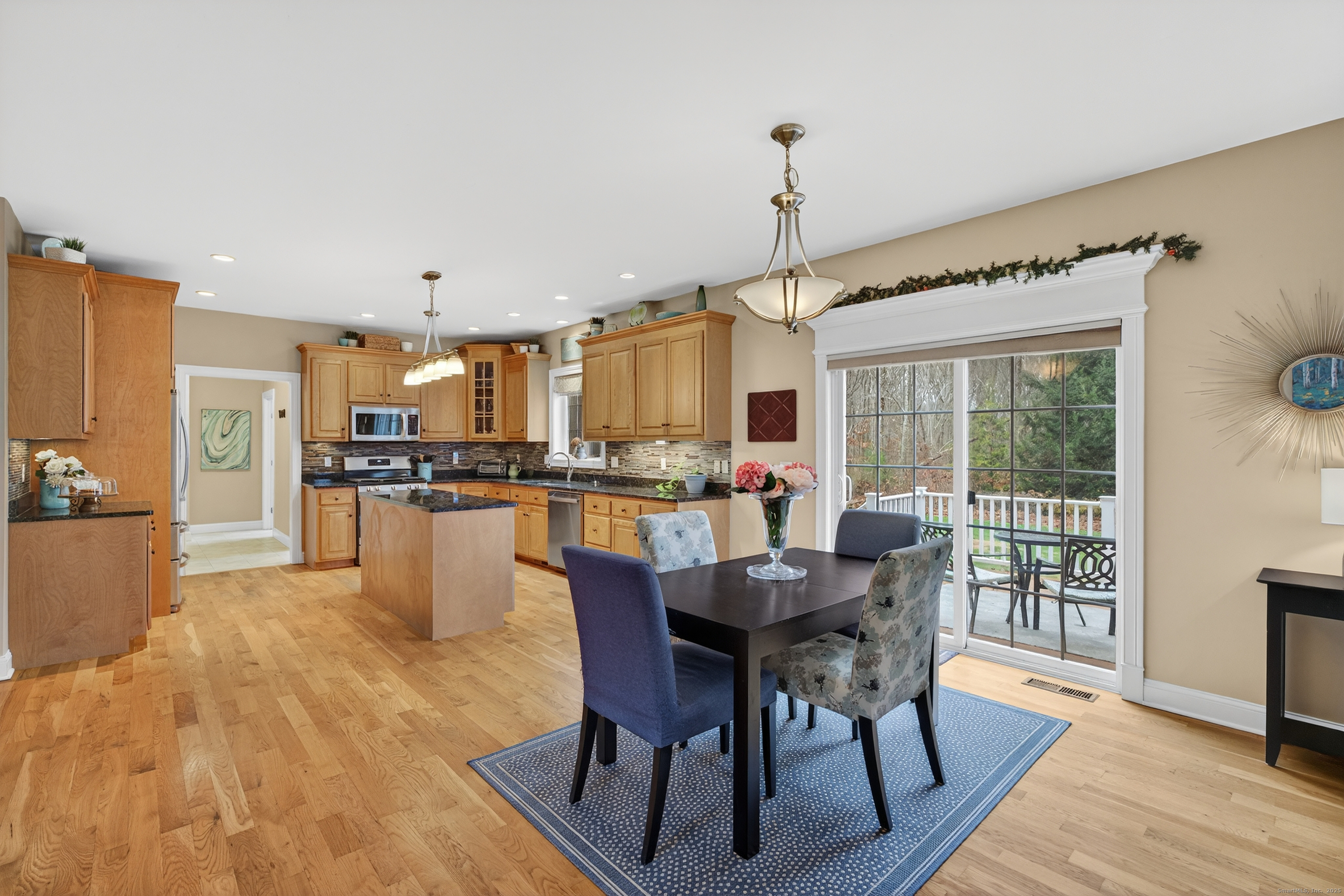 When a home is built with intention, you feel it the moment you walk through the door. This young, custom-built Colonial offers a floor plan designed for connection, celebration, and comfort. The first floor-all hardwood, all open, all stunning-welcomes you into a fireplaced Great Room filled with sunshine. The kitchen is a showstopper: expansive cabinetry, granite countertops, and a center island big enough for baking days, homework sessions, and holiday buffets all at once. From here, step out onto the Trex deck where you can watch the seasons change against a backdrop of quiet woods and a level yard perfect for gardens, games, or simply sitting under the open sky. A dining room for special meals and a formal living room for cherished conversation complete the thoughtful main level. Upstairs, the magic continues. Four large bedrooms offer room to grow, breathe, and dream. The primary suite features something wonderfully unexpected-two walk-in closets, including a second walk-in tucked inside the first. A summer closet and a winter closet... clothes lovers and organizers, prepare to swoon. Flooded with natural light and crafted with spaces that make life happier and easier, this is more than a house. It's where your next chapter begins-beautifully.