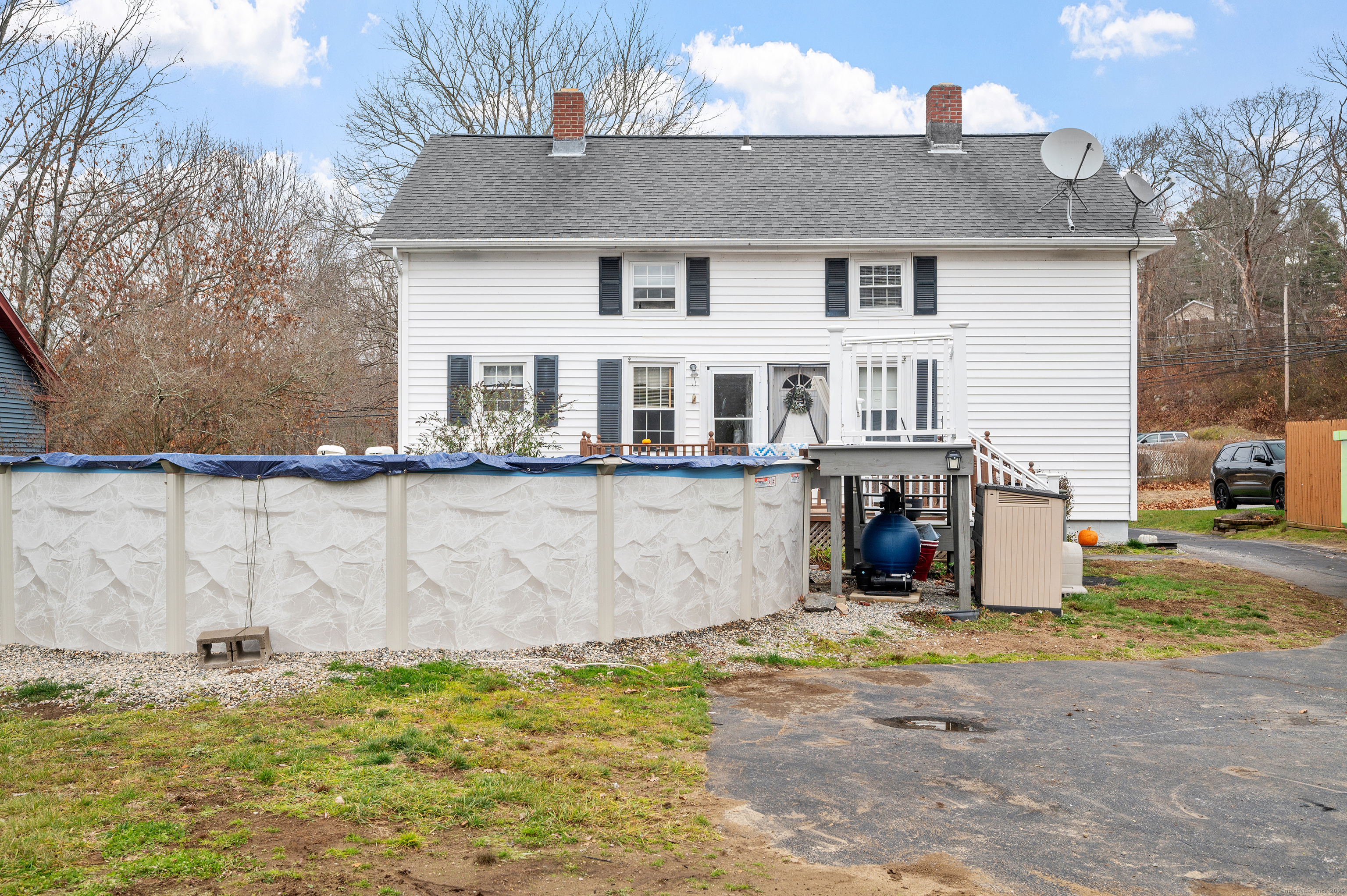 This two-family home is tucked away on a quiet dead-end street, offering privacy and minimal traffic while still being conveniently located. Each unit features 2-bedrooms, 1-full-bath and extra space in the basement, making it a great opportunity for owner-occupancy or investment income. Situated on a .35-acre lot, the property includes a new propane heating system and an above-ground pool, both installed in 2024. Just steps away, you can enjoy the recently redone Moosup State Park Bike & Walking Trail, perfect for outdoor enthusiasts looking for easy access to recreation and nature. While the home could benefit from some TLC, it offers excellent potential for buyers looking to build equity or customize it to their vision. A great option for investors, multi-generational living, or owner-occupants seeking rental income in a peaceful setting.