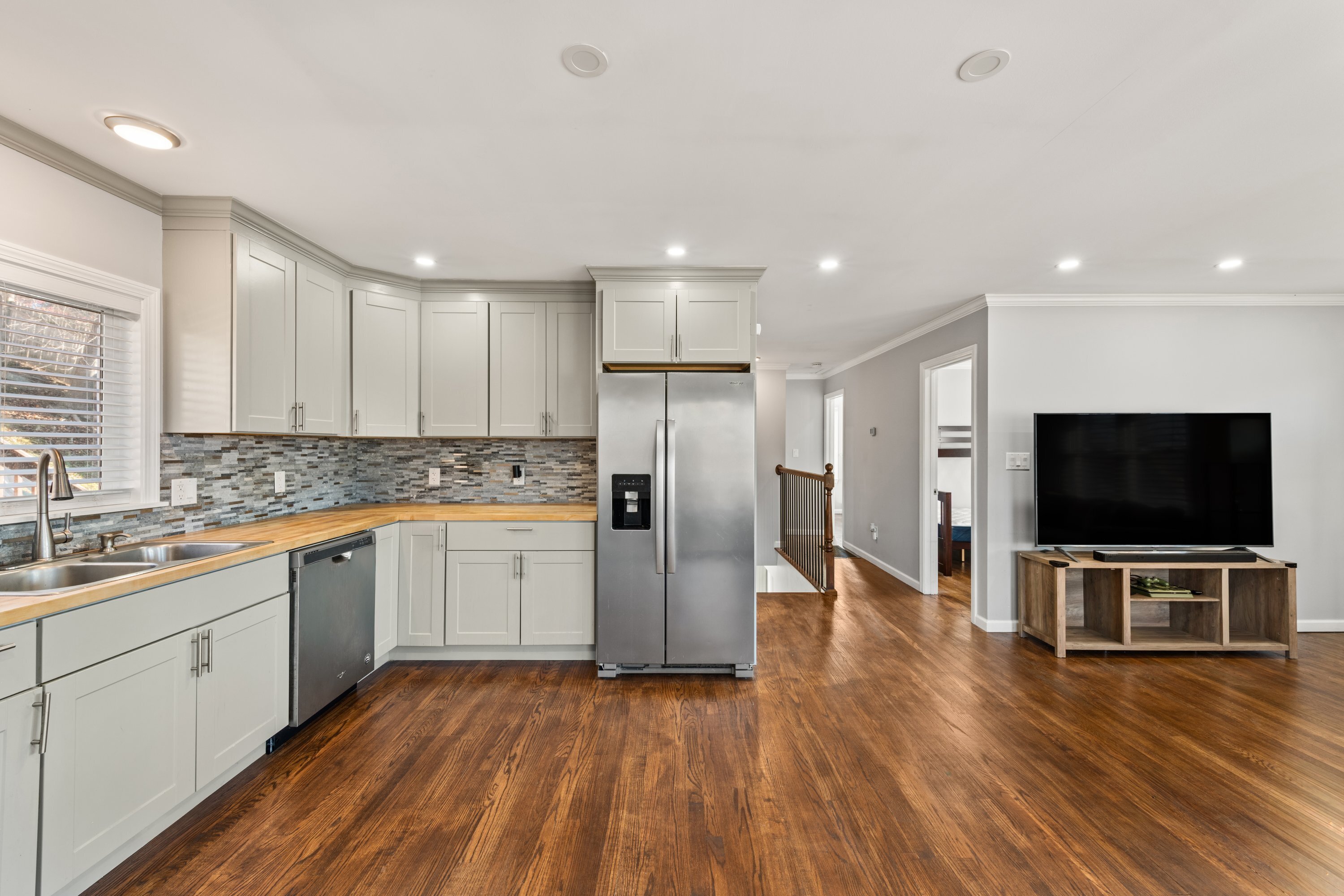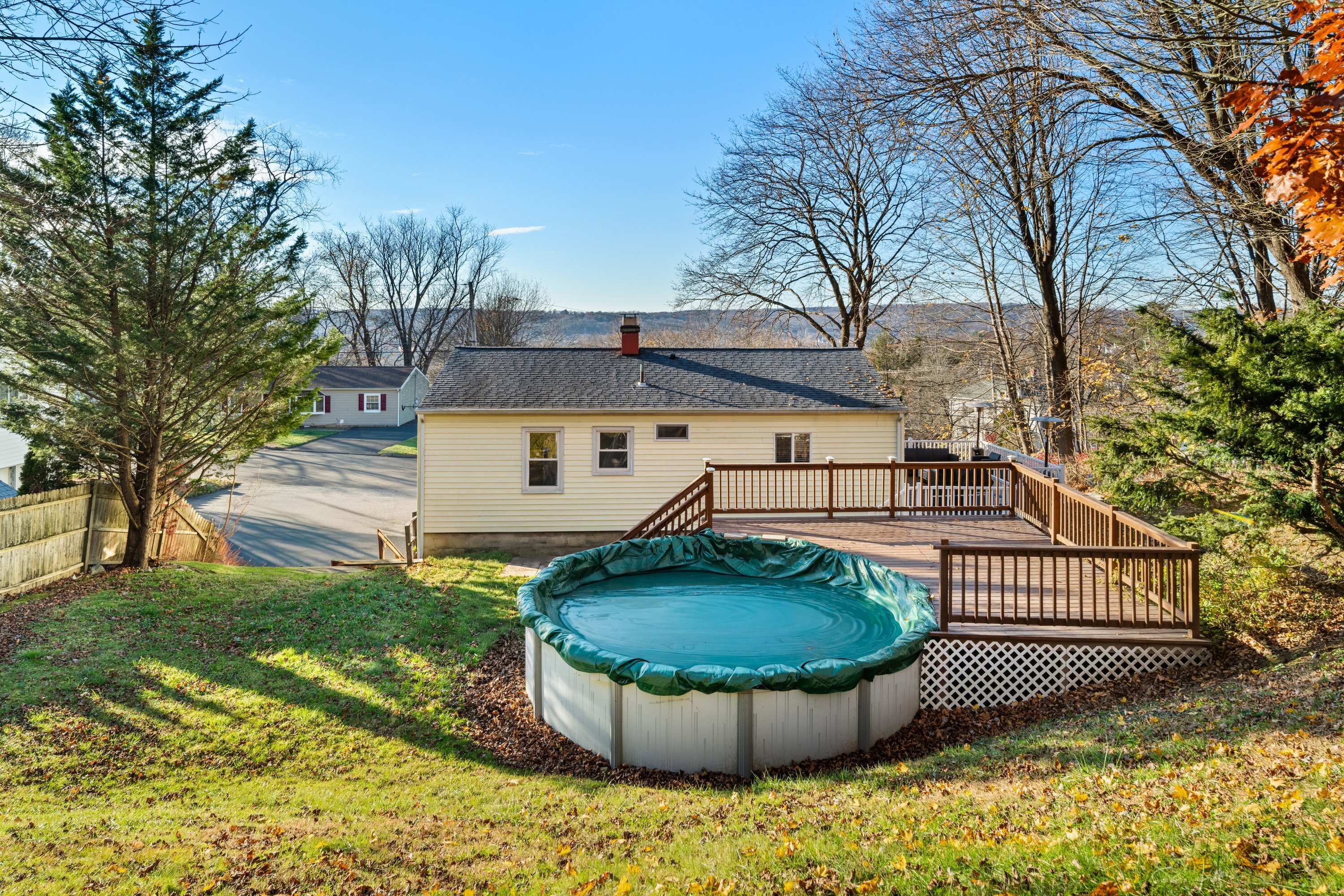 Step inside this bright, move in ready home where single level ease meets modern style and worry free renovations. As you open your new front door, you're welcomed by an open main living area seamlessly connected to a renovated kitchen, complemented by refinished hardwood flooring and sleek recessed lighting that create a warm, contemporary ambiance throughout. This open space flows to two main level bedrooms and the master bedroom. Off the main level, descend to the fully finished lower level that adds valuable living space, complete with a full bath and two adaptable rooms ideal for extra bedrooms, a home office, or a media suite. Recent major upgrades feature an updated oil tank, an electric heat pump water heater, and central air on both levels provides peace of mind for years to come. Outside, a newly constructed wrap around deck with updated railing leads to an above ground pool and pool deck, crafting a peaceful oasis perfect for summer gatherings and quiet evenings. Immaculately maintained, thoughtfully updated, and ready to love, this home offers flexible living, strong curb appeal, and immediate move in potential. Conveniently located close to health club , a nearby golf course , public transportation and major highways, and local shopping options for all your daily needs. Schedule your showing today and experience firsthand the comfort, convenience and carefree living your new home will provide.