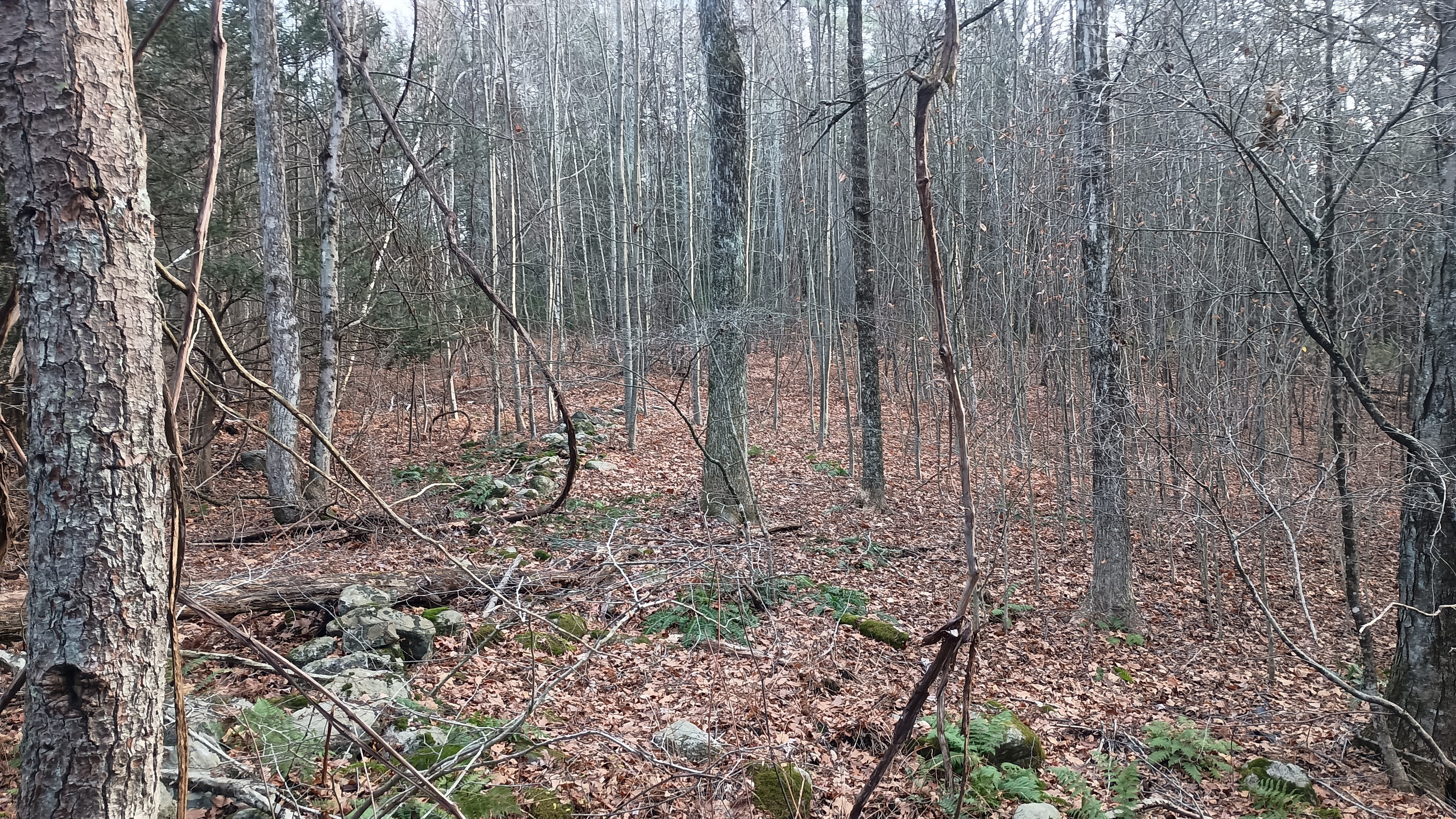 Residential country land. Parcel is flag or hatchet shaped lot (#3) accessed by a 50' wide right of way/ driveway that is located between 131 and 135 Campville Hill Rd. This path has a length of 537 ' and an area of .62 acres per the original subdivision plan survey map. A portion of the lower access has been hardned. The access road requires improvement for approximately 700 ft and utilities to be extended in. Resubmittal of originally approved plans are required for access, well/ septic and house plans if building is planned. The interior portion of the site totals four nice acres. Property is encumbered by an Eversource power line right of way with active electric transmission lines. Useable site area is on the far side of the easement.( See maps.) There is also a seasonal brook which cannot be encroached upon. The potential owner and /or their agent should perform a thorough review, conduct a detailed investigation and a feasibility study for their desired land use. Please use caution and enter property at your own risk.