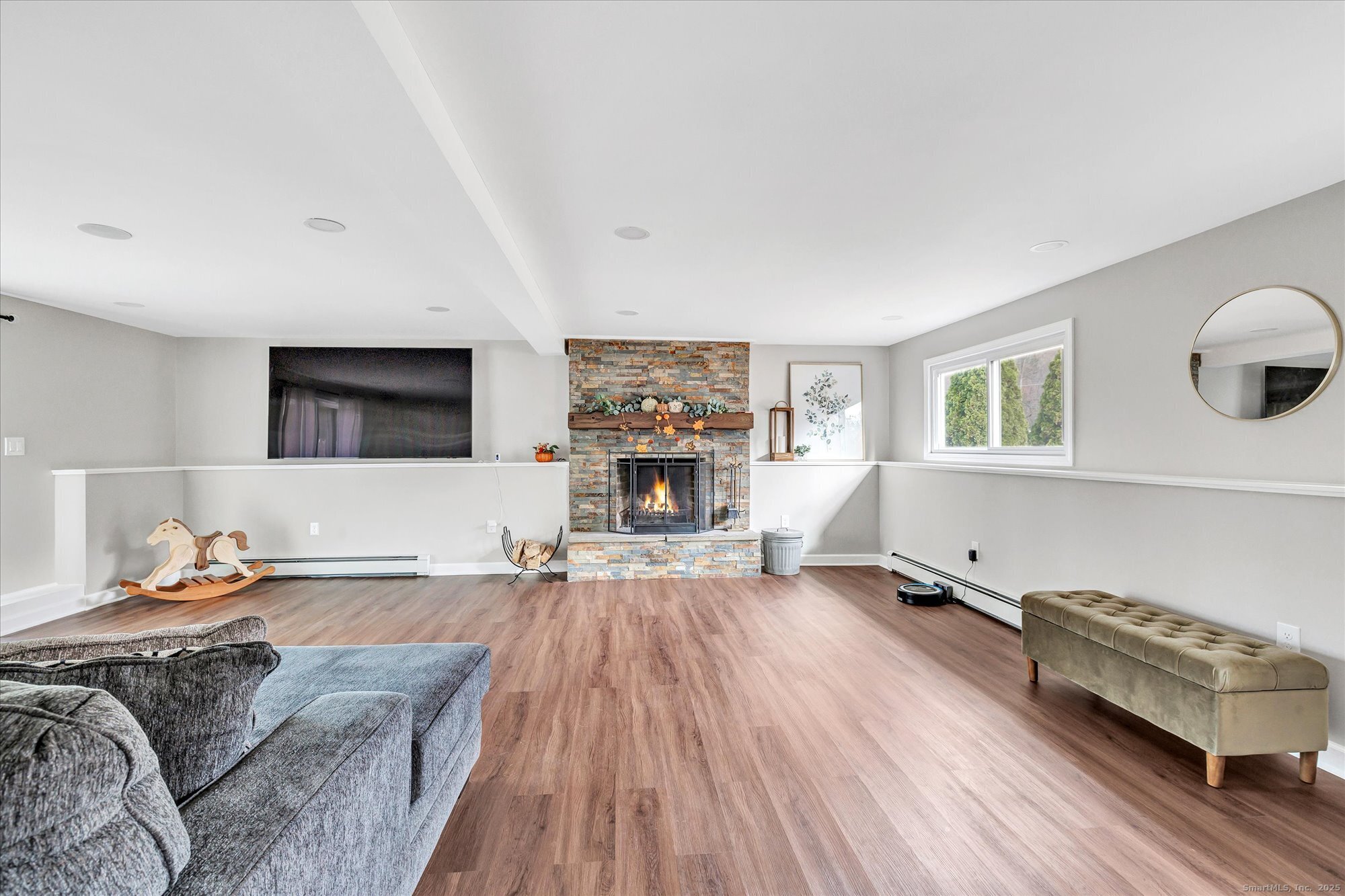 Highest and best offers due 12/2 at 5pm. Lovely remodeled 3 bedroom home with possible 4th bedroom in the lower level plus 2 full and one half bath home in a wonderful neighborhood. The current owners have really brought this home back to life with a gorgeous remodeled kitchen and open floor plan, remodeled hallway full bath, primary bedroom with it's own bath (needs some work), newer roof and siding, younger boiler, hot water heater and oil tank and upgraded electrical. The lower level family room has been totally redone with new laminate floor, recessed lighting and a wood burning fireplace resurfaced with thin stone. There is a half bath/laundry room on the lower level,