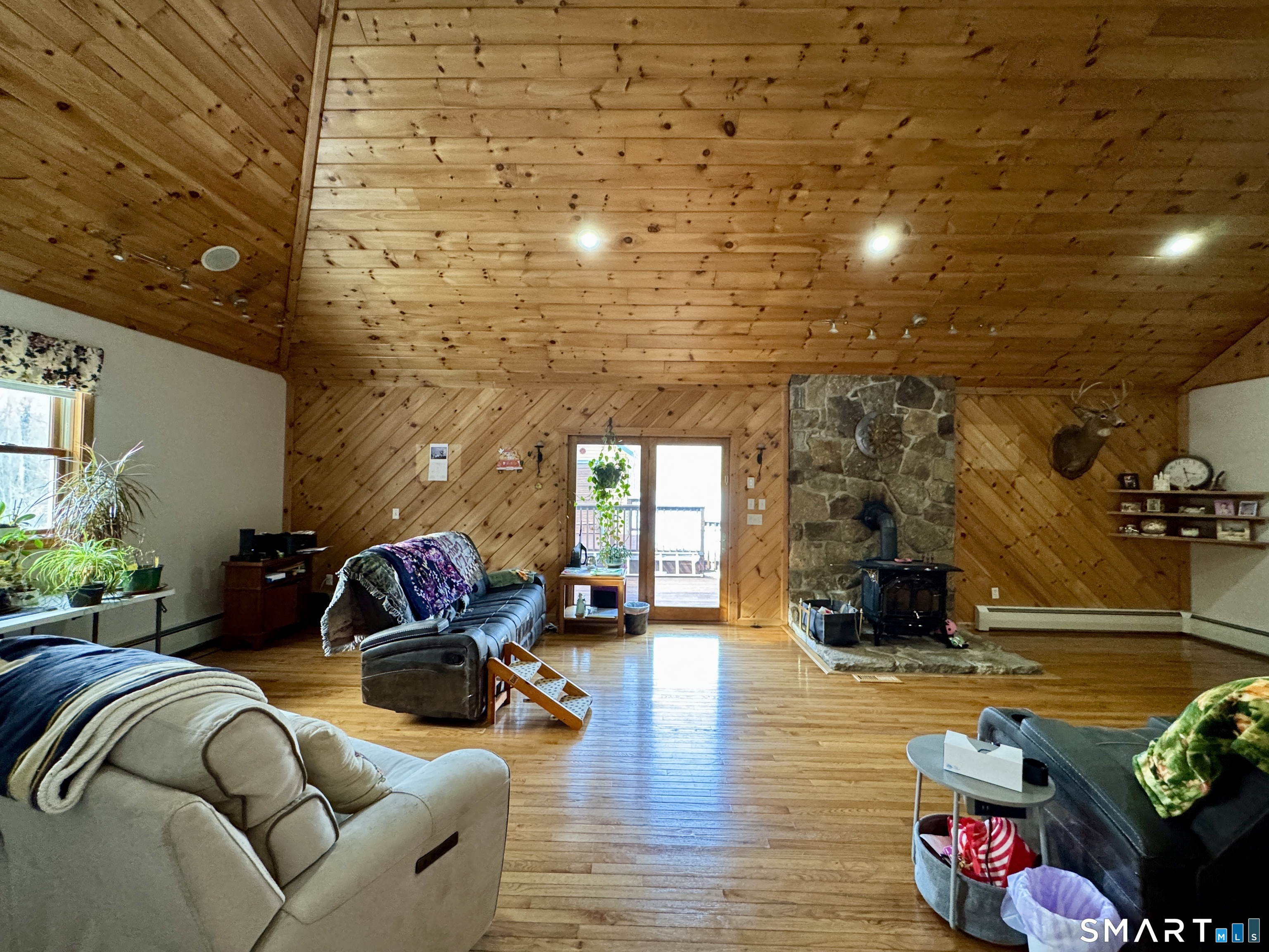 SELLER ENJOYS A ZERO ELECTRIC BILL AND A QUARTERLY CHECK! The BEST of country living and modern design, all on 10 PRIVATE ACRES. Land is well suited for hunting, agricultural use, gardening and outdoor recreation. This SINGLE-LEVEL RANCH with 2238 sq ft of living space and a 3 CAR GARAGE offers HARDWOOD FLOORS, spacious eat-in kitchen with STAINLESS STEEL appliances and a 32 x 27 GREAT ROOM - perfect for a DINING ROOM/FAMILY ROOM. Home offers a desirable split bedroom floor plan with a large primary suite offering a walk-in closet and a private full bath. Two generously sized additional bedrooms and a 2nd full bath complete the layout. Additional living space can be created in the attic space which had plywood floors and electricity and is accessed from the great room. Walkout basement includes 2 finished heated rooms with electric, oil and wood/coal, as heating sources. Stay cozy with a wood stove and coal, as a supplemental heat source or enjoy year-round comfort with 2 MINI SPLITS for heating and cooling. Home boasts 39 energy efficient SOLAR PANELS, which are OWNED and PAID-IN-FULL! Home also offers electric hot water heat pump, 2 OIL TANKS, a 1500 gallon septic tank and a GENERATOR hookup for peace of mind. Outside, relax by the above-ground POOL, entertain on the large deck, and take in the tranquility of your PRIVATE RETREAT.