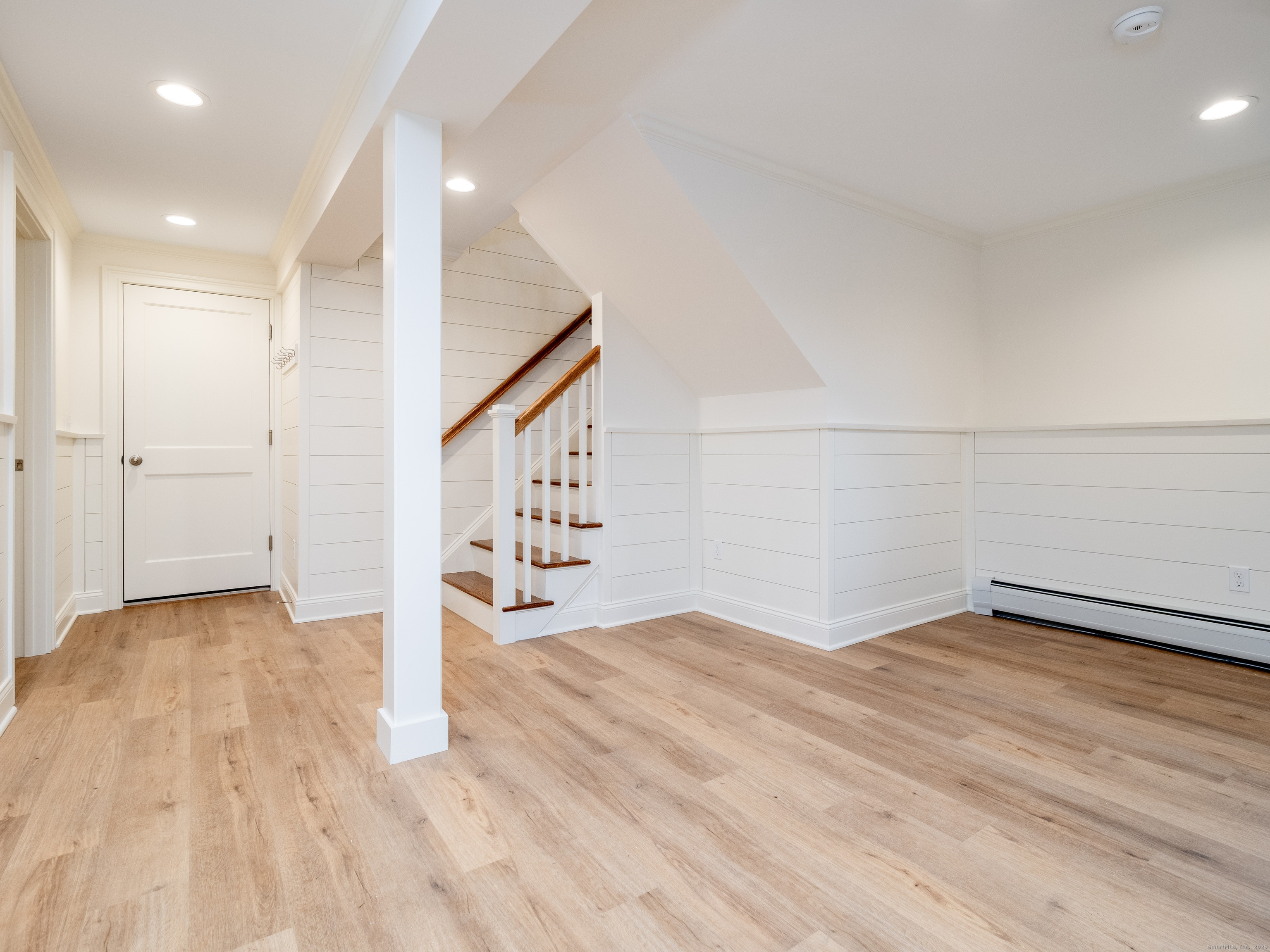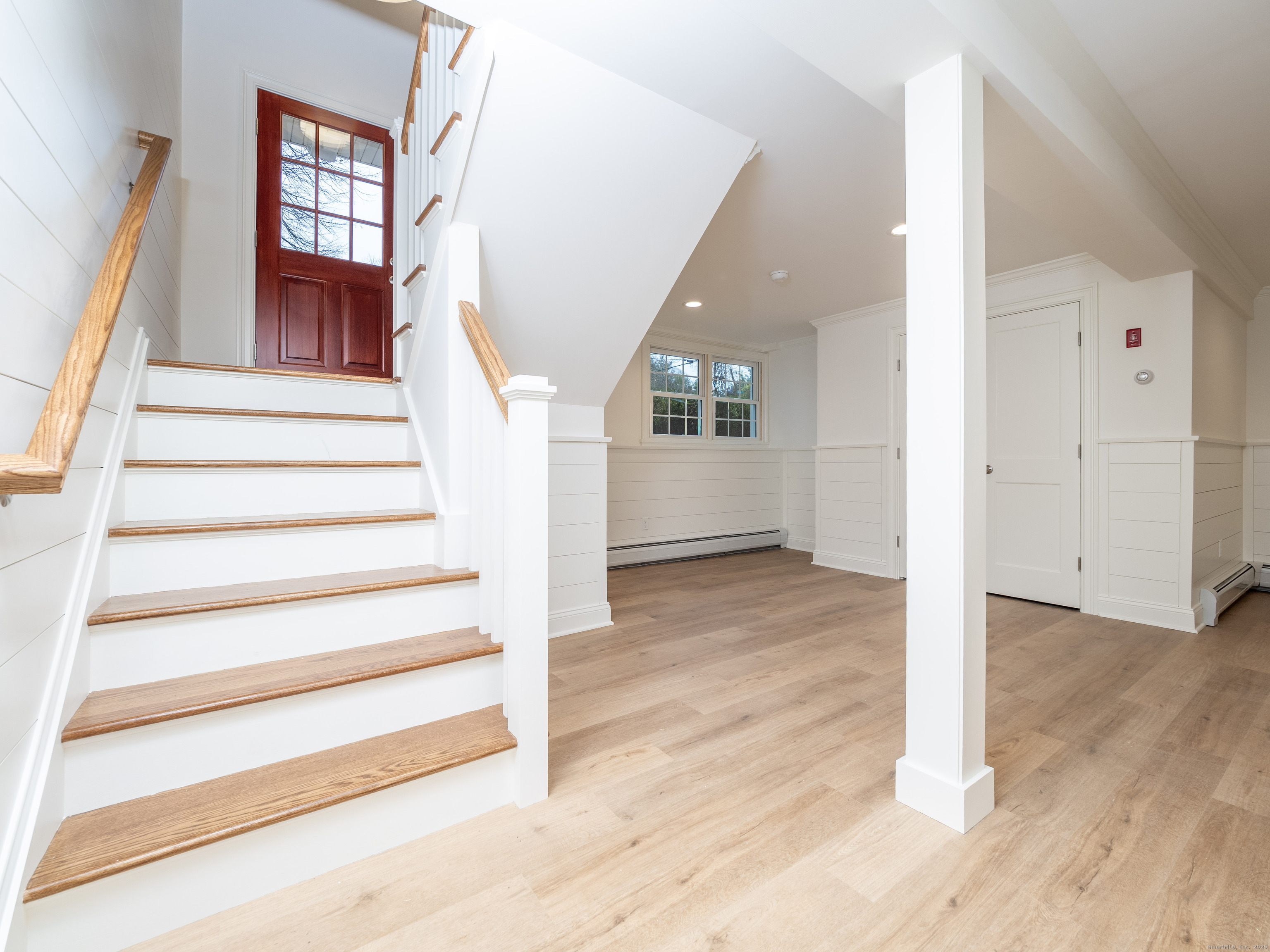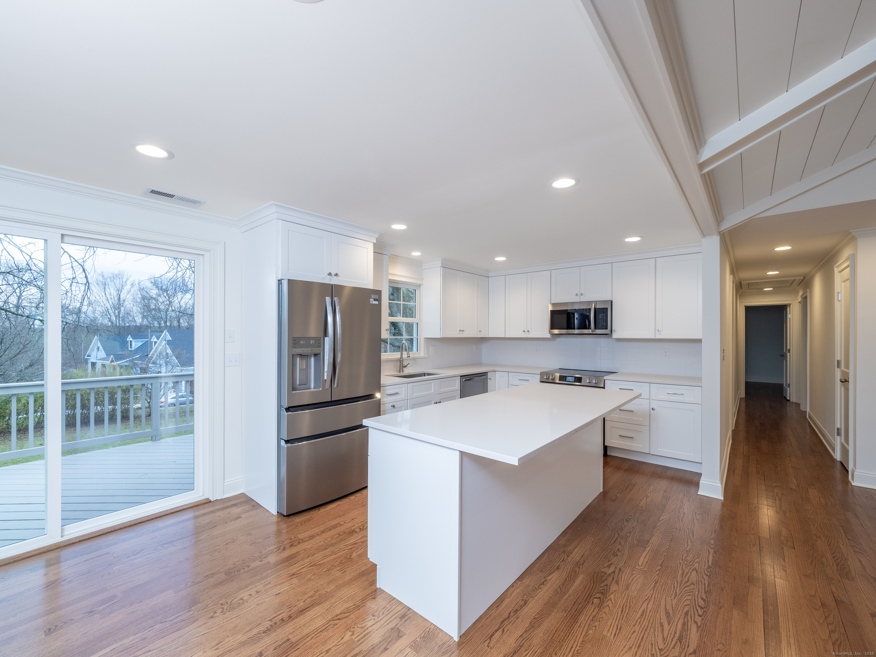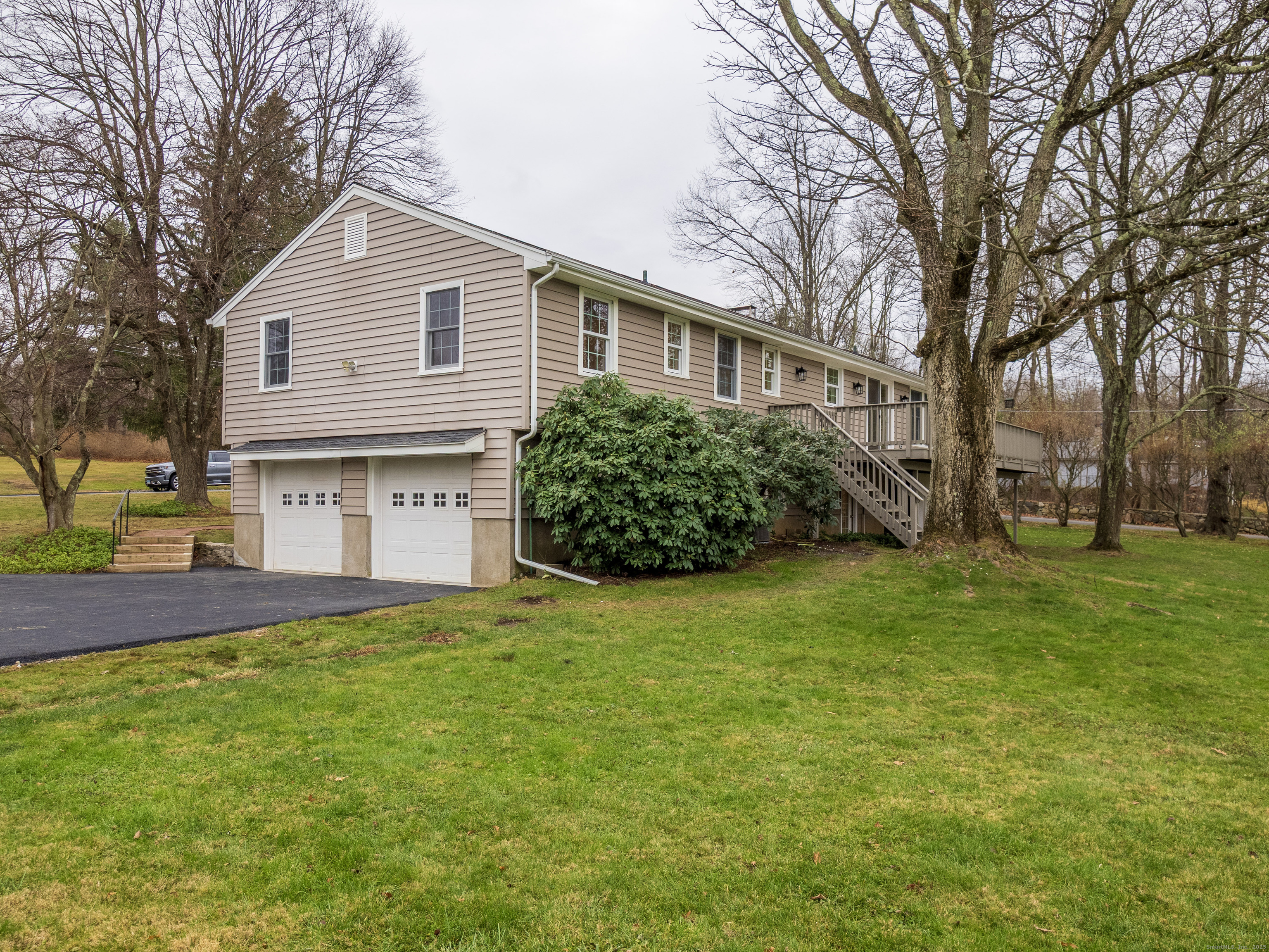 Sturges Brothers have once again delivered their renowned craftsmanship in this fully renewed 3-bedroom, 2.5-bath home nestled in a quaint and desirable neighborhood. Nearly every inch of the property has been thoughtfully architecturally designed and updated, beginning with a stunning brand-new kitchen featuring quartz countertops, an oversized island, and premium Frigidaire Gallery appliances. Both full bathrooms have been rebuilt to the studs and showcase double vanities and tile floors and surround, while the new half bath on the lower level adds convenience and style. Throughout the home, you'll find exquisite crown molding, custom trim, and abundant recessed lighting that elevate each room. Major improvements include all new windows, sliders, interior and exterior doors, and even two new garage doors. The home is equipped with hydro-air oil heat and new central air, ensuring year-round comfort. Additional highlights include fresh hardwood floors, every surface freshly painted, updated banisters, and a must-see vaulted living room featuring shiplap, custom millwork, and a beautiful fireplace as the focal point. Outside, a new driveway leads to a spacious 10x33 deck overlooking a flat acre-perfect for outdoor enjoyment. This turnkey home blends quality, style, and comfort at every turn-truly a must-see.