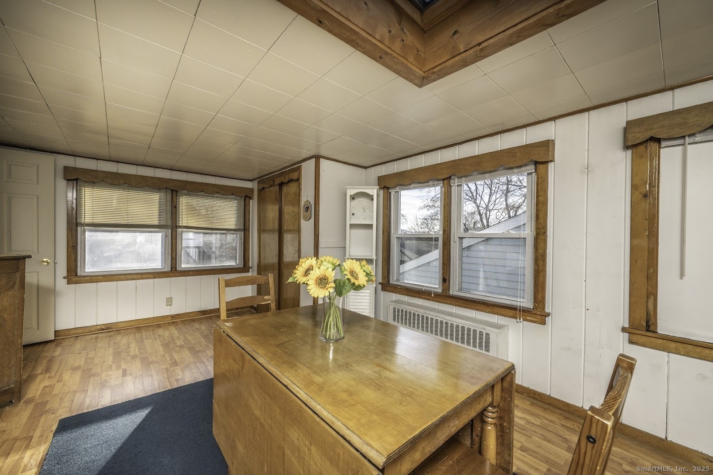 Discover single-level living on a quiet cul-de-sac just minutes from everything Wallingford offers. This well-loved Ranch has had one owner for 70 years and features hardwood floors, central air, and a layout with great flexibility. The town lists the home as a 2-bedroom, but the back room-with its own closet-has been used as a bedroom, offering valuable options for a third bedroom, home office, or additional living space. The enclosed front porch creates a welcoming spot for morning coffee or extra room for hobbies and relaxation. The property also offers impressive garage space: a detached 2-car garage plus a 1-car garage under the house, ideal for storage, workshop needs, or car lovers. Set in a convenient location near North Main Street, Center Street, shopping, parks, restaurants, and commuter routes, this home brings together peace, accessibility, and long-term potential. Whether you're a first-time homeowner, downsizing, or looking for a home you can personalize, this Ranch provides a rare opportunity in a desirable Wallingford neighborhood. Homes with this combination of location, storage, and potential don't come up often-come see why this one has been cherished for decades and imagine the possibilities it offers for your next chapter.
