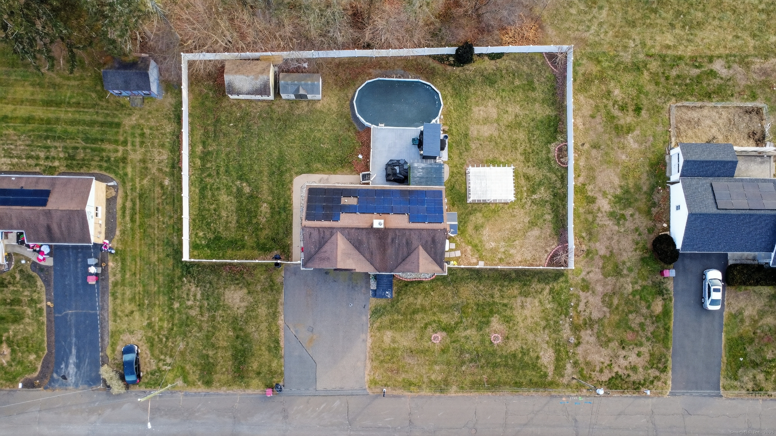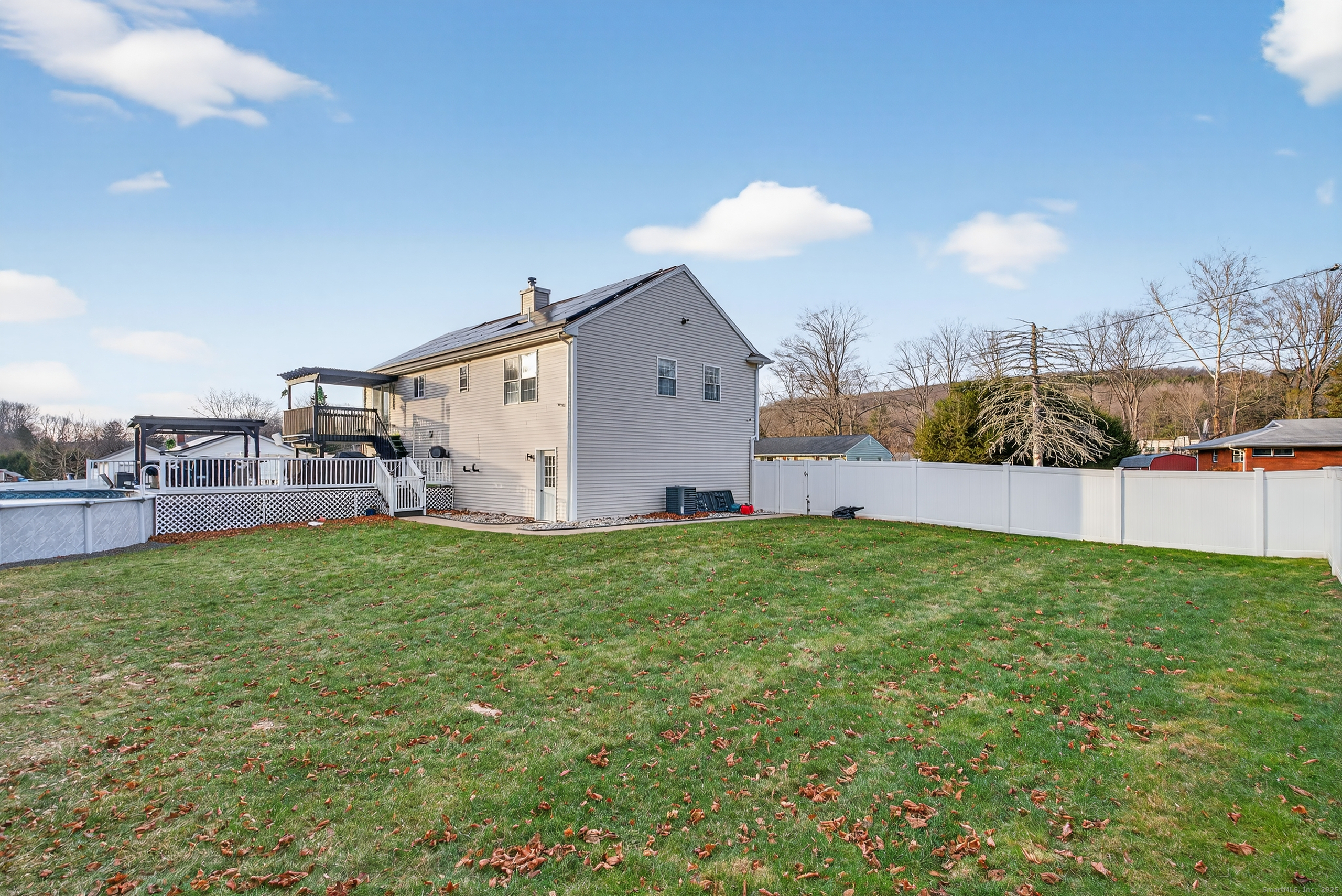 Welcome to 28 Margaret Circle, a beautifully updated home offering comfort, style, and outstanding convenience. This turn-key property features vaulted ceilings in the living room, creating an airy and inviting space anchored by a new electric fireplace. The dining room is enhanced by an updated designer light fixture, complementing the new quartz countertops, newer stainless steel appliances, and a new custom-built pantry alongside the refrigerator in the kitchen. The home offers 3 full bathrooms, providing plenty of convenience for today's busy households. Enjoy peace of mind with a Generac whole-house backup generator, Vivint security system with cameras, Nest smart thermostats, central air, and solar panels with a low monthly payment-making this a truly efficient and modern smart home. Outside, you'll find a fully fenced yard with white vinyl fencing, a multi-level deck, and an above-ground pool, perfect for entertaining and relaxation. The property includes a spacious 2-car garage and sits on a large, level lot in a convenient location close to everything. Move right in and enjoy all the upgrades this home has to offer!