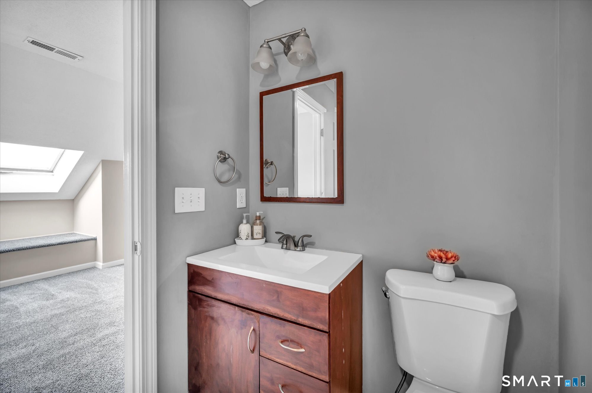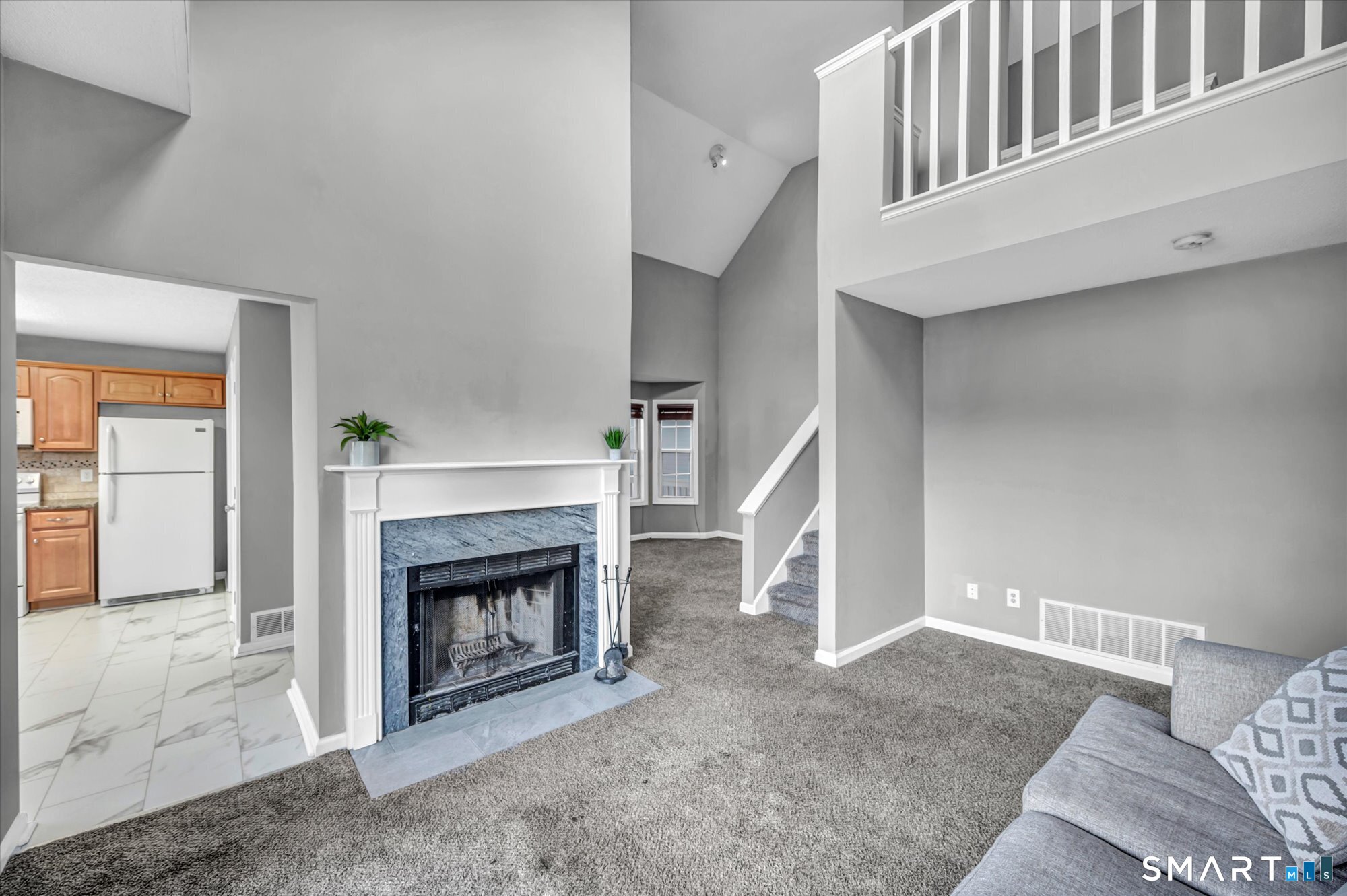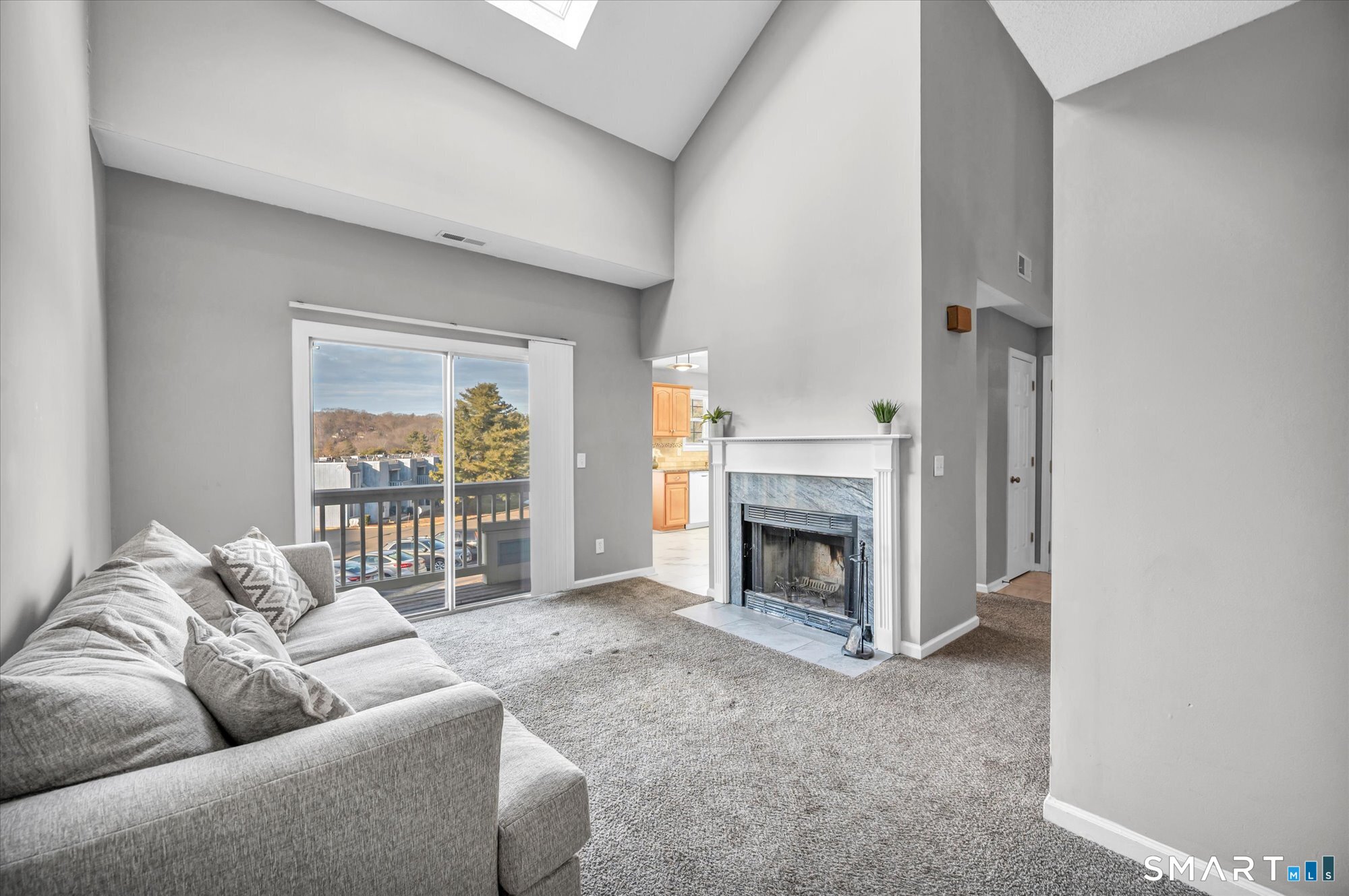 Lovely 2BR, 2BA townhouse in sought-after Countryside Condominiums. The main level offers a bright living room, eat-in kitchen, den with a wood-burning fireplace-perfect for cozy winter nights-and a balcony ideal for morning coffee. A spacious bedroom with a walk-in closet and a full hallway bath complete the main level. Upstairs, the primary bedroom features an ample walk-in closet and a private full bath. Enjoy several recent updates, including a newer stove, kitchen flooring, dishwasher, and carpeting. Tucked away from the main road yet conveniently close to shopping, schools, and just 15 minutes to the New Haven train station.