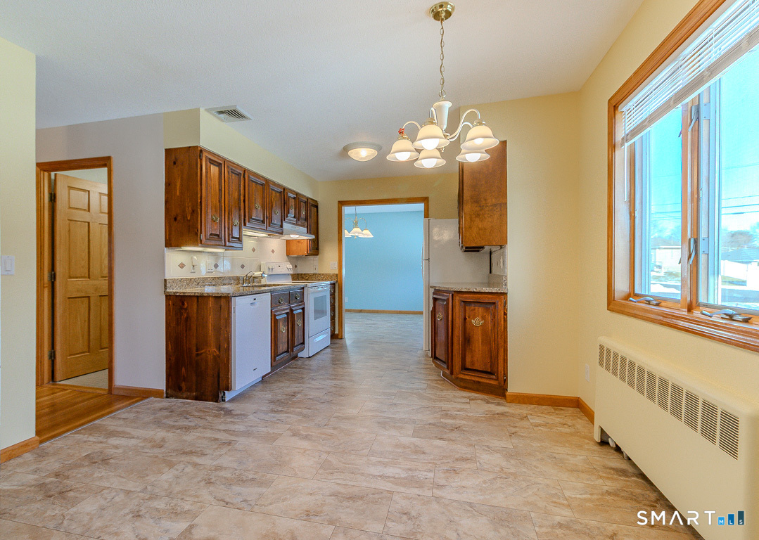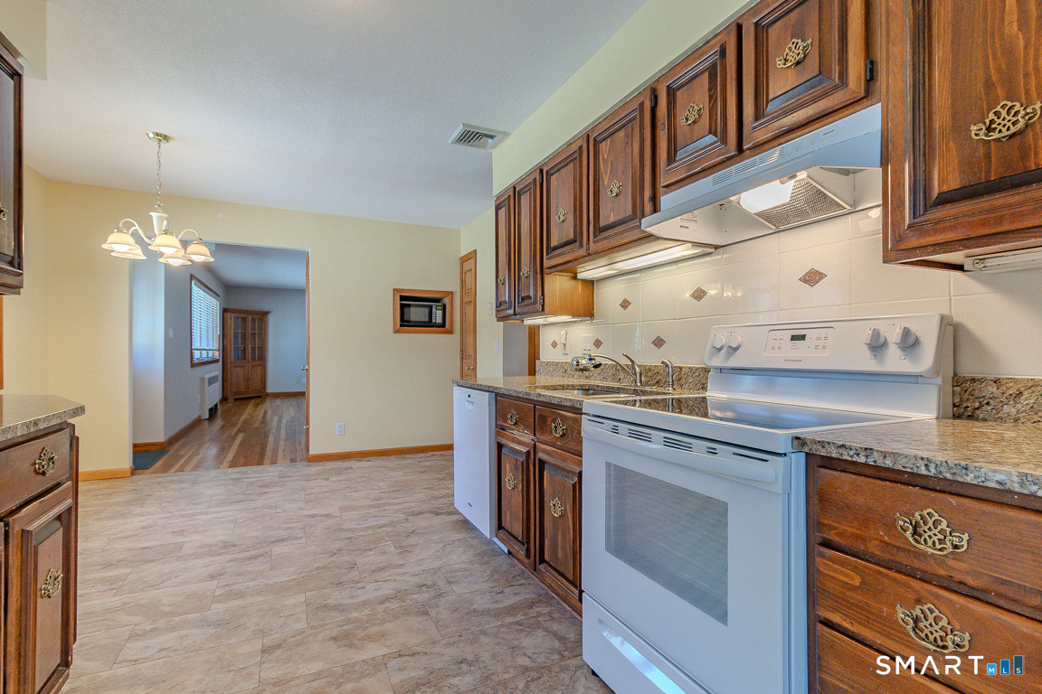 This fantastic ranch, set in a sweet neighborhood setting, is truly a must-see. Offering 3 bedrooms and 2 FULL baths, this home shines with it's gorgeous woodwork and gleaming hardwood floors. This home is a gem in wonderful condition with thoughtful upgrades. NEW central air, an 8-year-old roof, and a young gas boiler - providing peace of mind. Enjoy the ease of TRUE one-floor living, complete with laundry conveniently located on the main level. The attached garage has been expanded for additional space and offers direct access into the home through a practical mudroom, perfect for dropping groceries and kicking off your boots. Not your ordinary ranch, this home flows beautifully. The eat-in kitchen opens to a formal dining room with direct access to the trex-style back deck, ideal for indoor-outdoor entertaining. A generously sized living room, and a beautiful picture window fill the living space with natural east-facing light. The primary bedroom features its own remodeled en-suite bath with a walk-in tiled shower. Ideally located in one of Newington's favorite neighborhoods, this home is just a short stroll to the award-winning elementary school, convenient walking paths, and the beloved Eagle Lantern Park with pickleball and basketball courts. Enjoy being minutes from I-84, Rt-9, West Hartford Center, West Farms Mall, and some of the area's finest shopping, dining, parks, and schools.