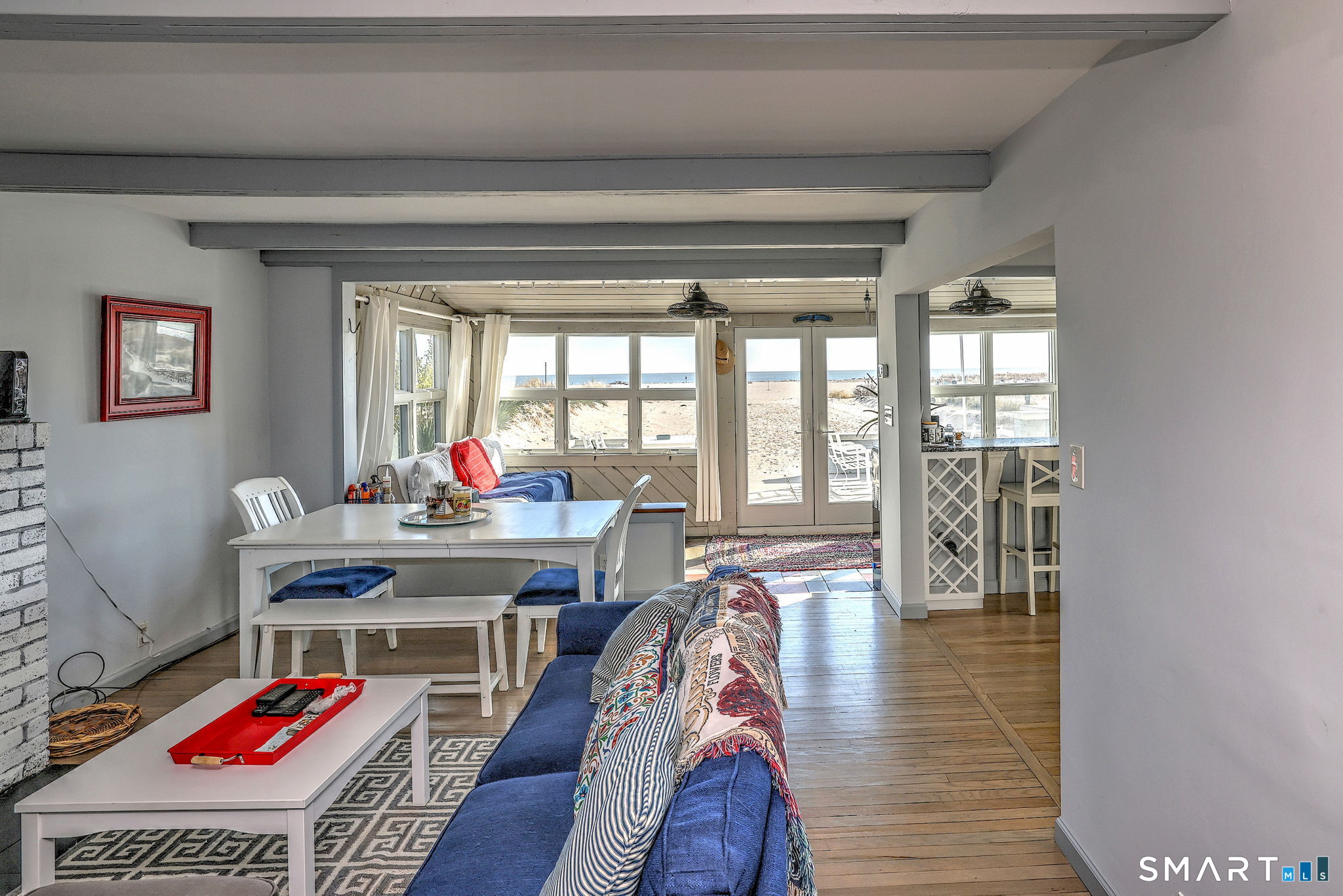 Furnished Waterfront Winter Rental - Utilities Included! Enjoy beachside living in this peaceful, fully furnished waterfront home available immediately through May 31, 2026. Wake up to stunning water views and savor your morning coffee in the inviting flagstone four-season porch overlooking the shoreline and opening up to a patio and sandy beach. This home features an open floor plan with a granite breakfast bar that flows seamlessly into the updated kitchen and spacious living and dining areas, plus a comfortable den. Hardwood floors run throughout the home, complemented by a full bath on the main level and three bedrooms with an updated full bath upstairs. Main bedroom has vaulted ceilings and endless views of the water. Step outside and enjoy an endless sandy beach just steps from your door. Conveniently located near highways, train, dining, and shopping, this rental offers the perfect combination of tranquility and accessibility. Move right in and experience all that Milford has to offer!