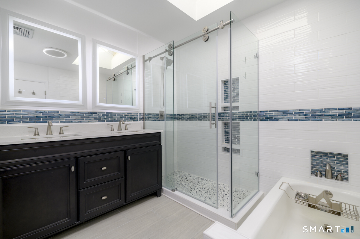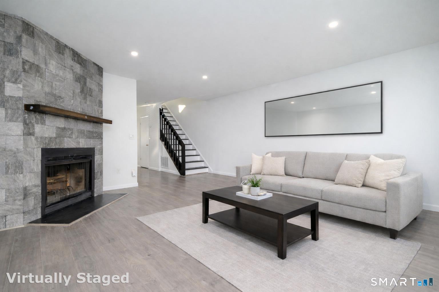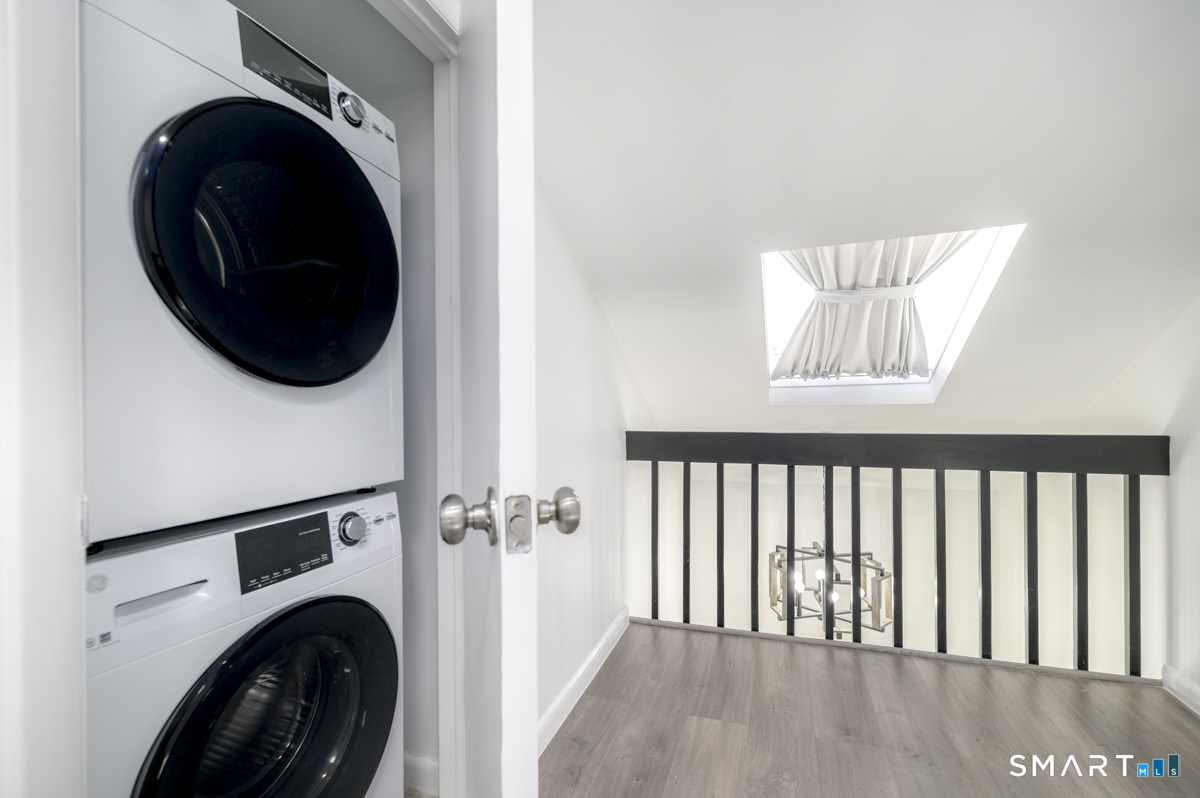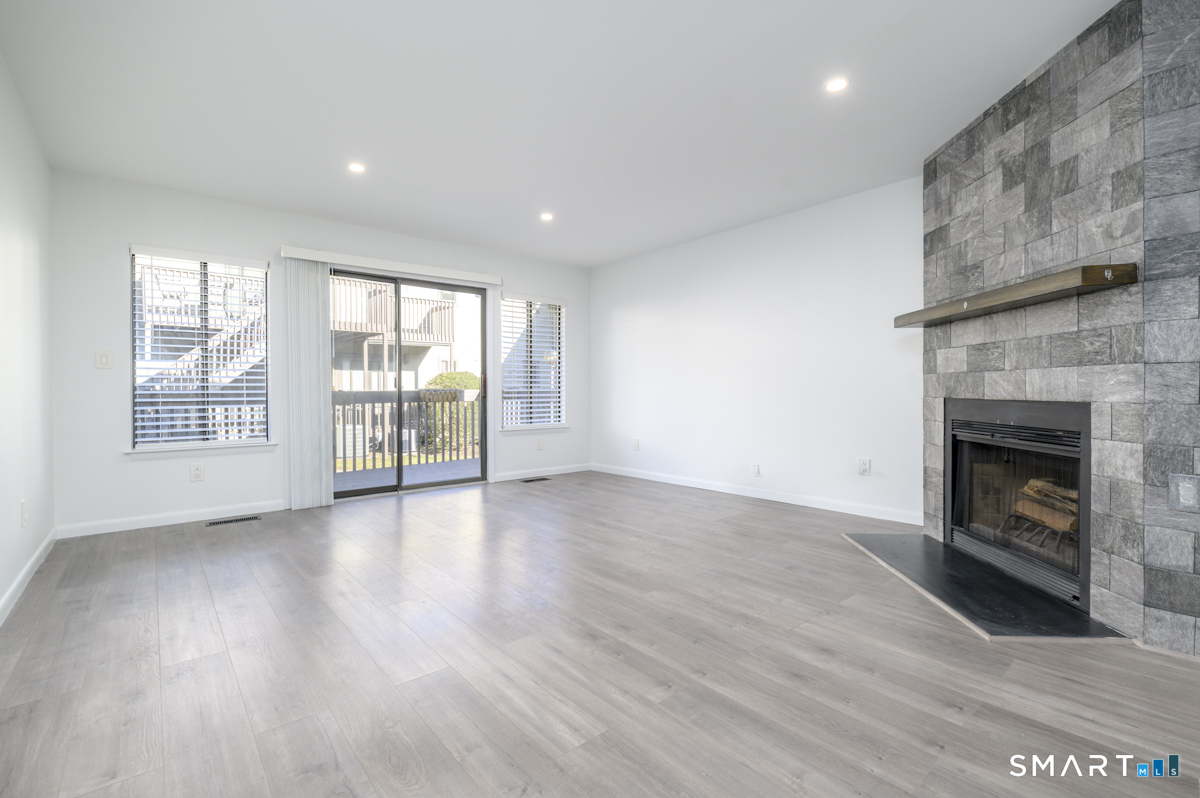 Prime location meets modern living in this completely updated 1-bedroom, 1.5-bath townhouse at The Chesterfield. The main level features a renovated kitchen with high-end stainless steel appliances, cathedral ceilings with a skylight, and a living room with a wood-burning fireplace, recessed lighting, and sliders to an oversized deck ideal for entertaining, along with a separate dining area and half bath. Upstairs offers a bright and spacious bedroom with abundant closet and storage space, plus a spa-like full bath with floor-to-ceiling tile, soaking tub, separate shower, double vanity, quiet fan with Bluetooth speaker, and top-of-the-line finishes. Additional highlights include in-unit washer and dryer and extra space for guests or a home office. This gated Chesterfield community offers two swimming pools, 24-hour security, and exceptional convenience to shopping, transportation, I-95, the Merritt Parkway, and vibrant downtown Stamford-schedule your private showing before it's gone.