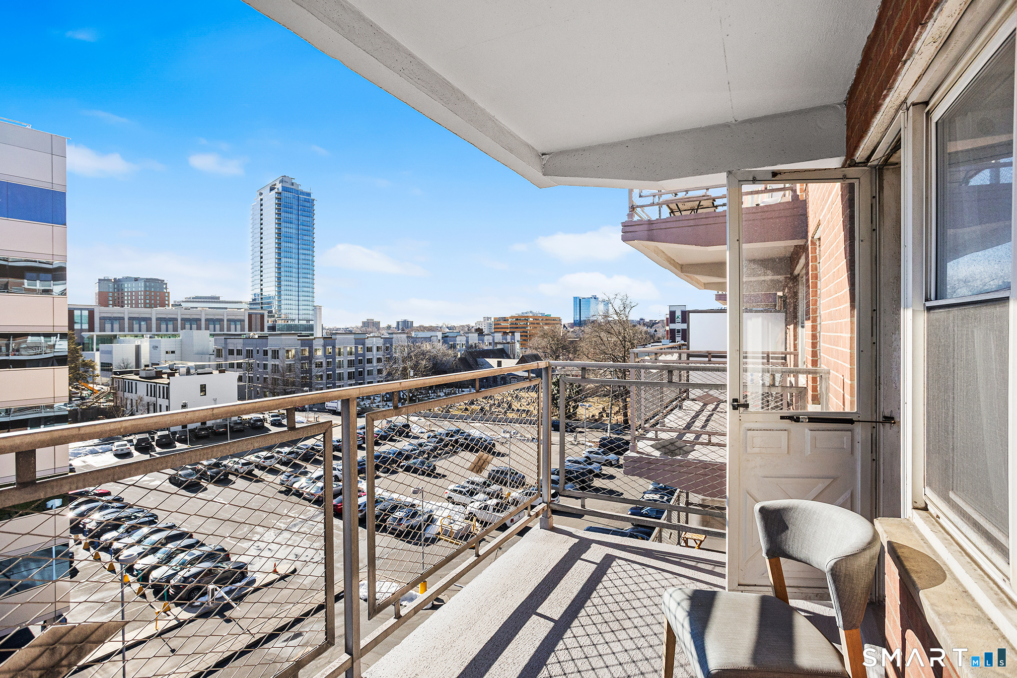 Experience effortless downtown living in this bright and well-designed studio at 700 Summer Street. The open layout features a stylish kitchen with an island perfect for casual dining, seamlessly connecting to a spacious living area with hardwood floors. A separate south-facing sleeping nook opens to a private 6th-floor balcony, where city skyline views and abundant natural light create an inviting retreat. The unit is finished with a modern, immaculate bathroom and generous double closets for storage. This professionally managed building offers sought-after amenities including a secure lobby, elevators, fitness center, and a beautifully landscaped central courtyard. Heat, hot water, and cooking gas are included in the monthly HOA. Ideally located just steps from Stamford's vibrant restaurants, shops, theaters, and UConn Stamford campus, with convenient access to Manhattan by train or car.