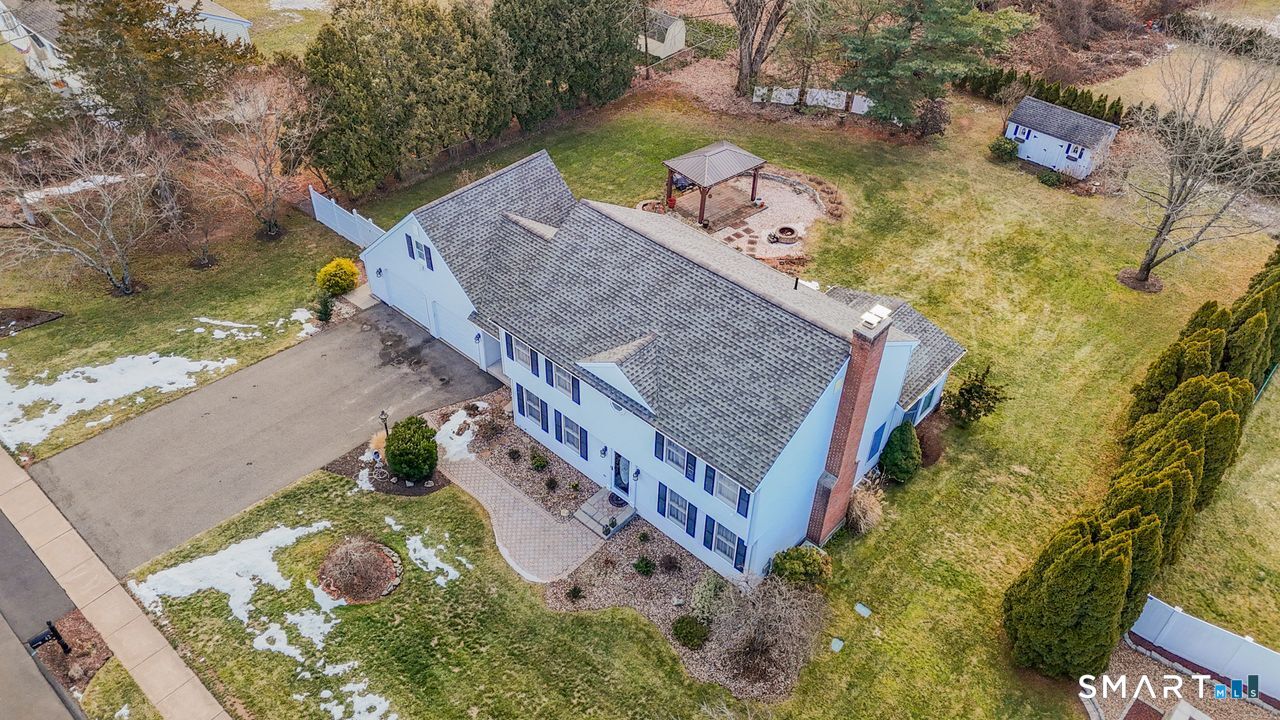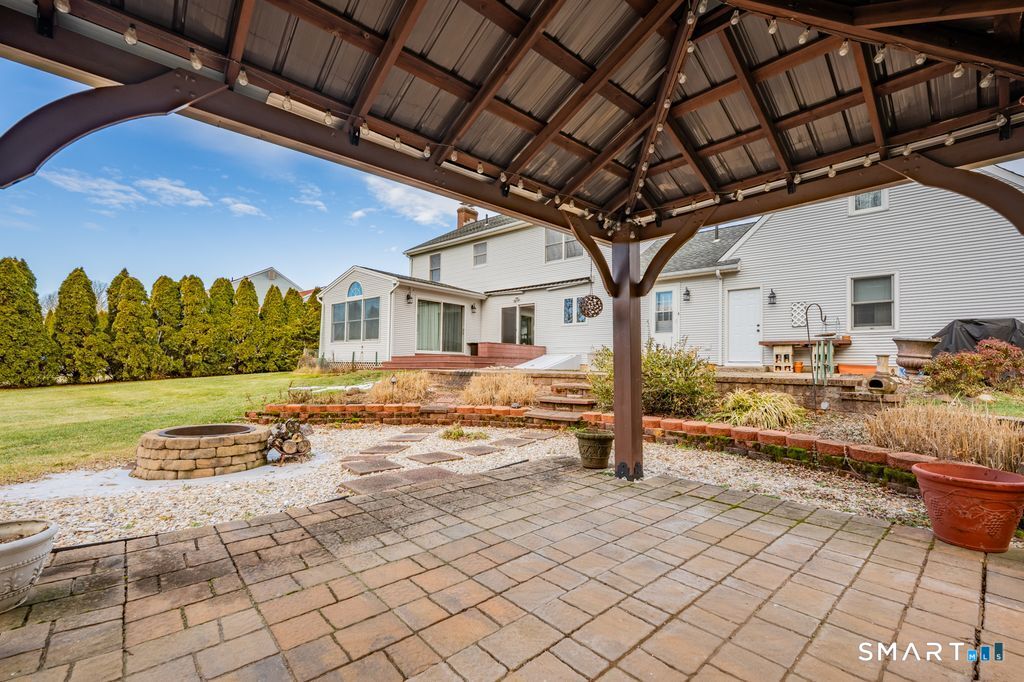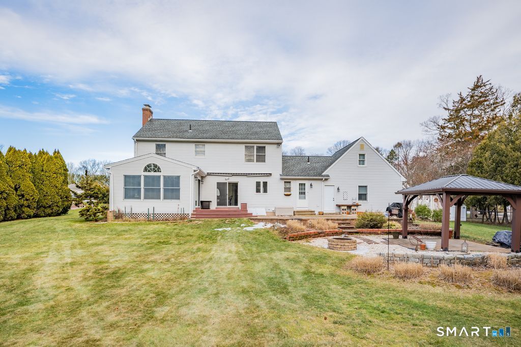 FINAL & BEST BY SATURDAY 1/17 AT 6:00PM. Welcome to a home where pride of ownership truly shines. A beautifully maintained, move-in-ready colonial where comfort, space, and thoughtful details come together. From the moment you step inside, the open floor plan invites you to relax and settle in. The beautifully remodeled kitchen features granite countertops and flows seamlessly into the dining room, conveniently located just off the kitchen, making both daily living and entertaining effortless. A cozy sitting area with a gas fireplace and French doors leads to the sun-filled family room, creating a warm and welcoming atmosphere. Upstairs, the primary bedroom includes a full bath with a walk-in shower and a built-in heater unit. Three additional generously sized bedrooms share a full bath, also equipped with a built-in heater unit. The finished basement adds approximately 900 square feet of extra living space & includes a convenient half bath. Step outside to a beautiful backyard oasis featuring a Trex deck, patio, and gazebo, all designed for relaxing & entertaining. Both the shed and gazebo are equipped with power, adding extra functionality. A two-car garage with storage above completes this impressive home. Additional highlights include central air, central vacuum, gas heat, built-in nightlights with timers, irrigation system, & an invisible pet fence. Nestled in a desirable, quiet neighborhood with sidewalks, this home is ready for its next owners to make lasting memories