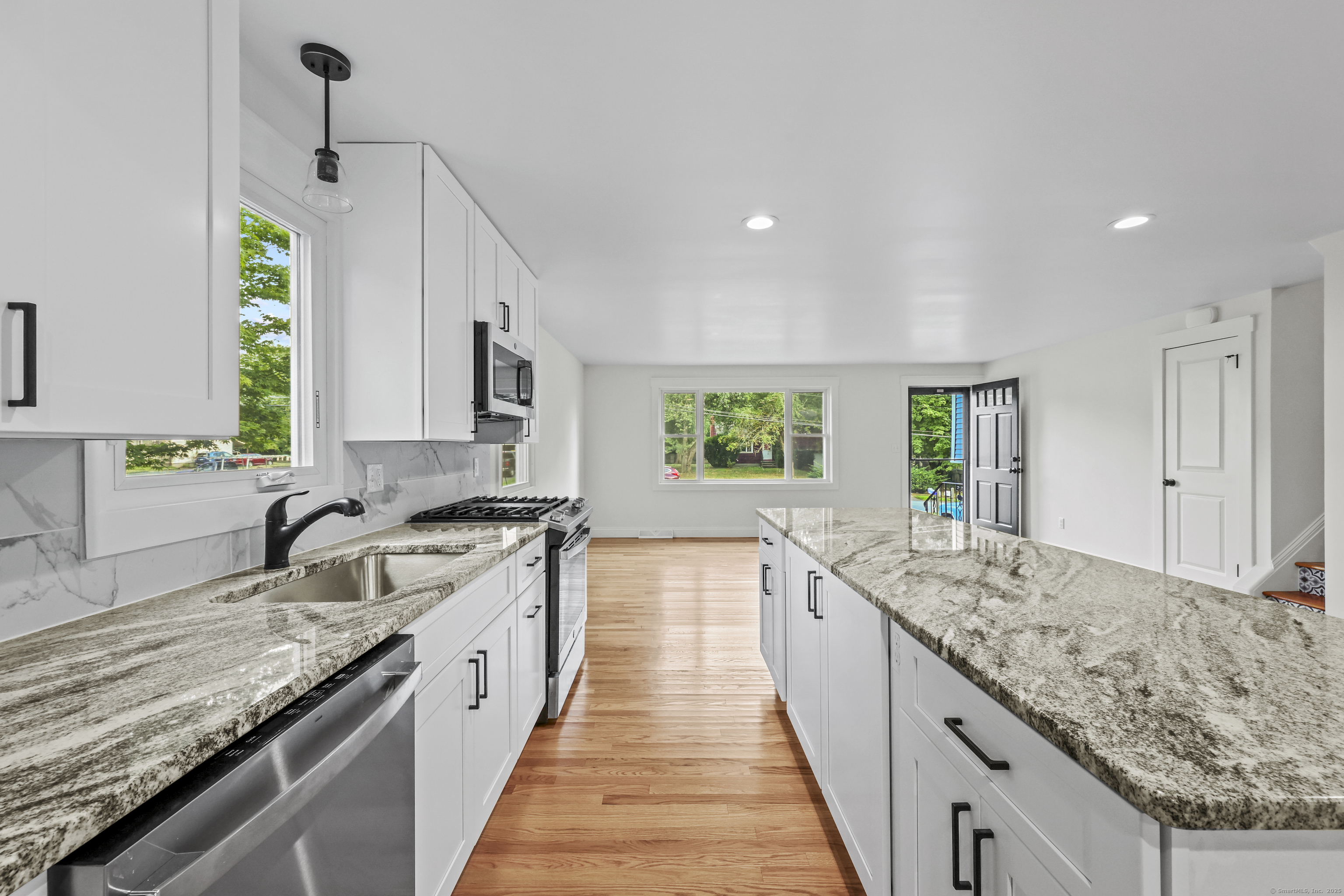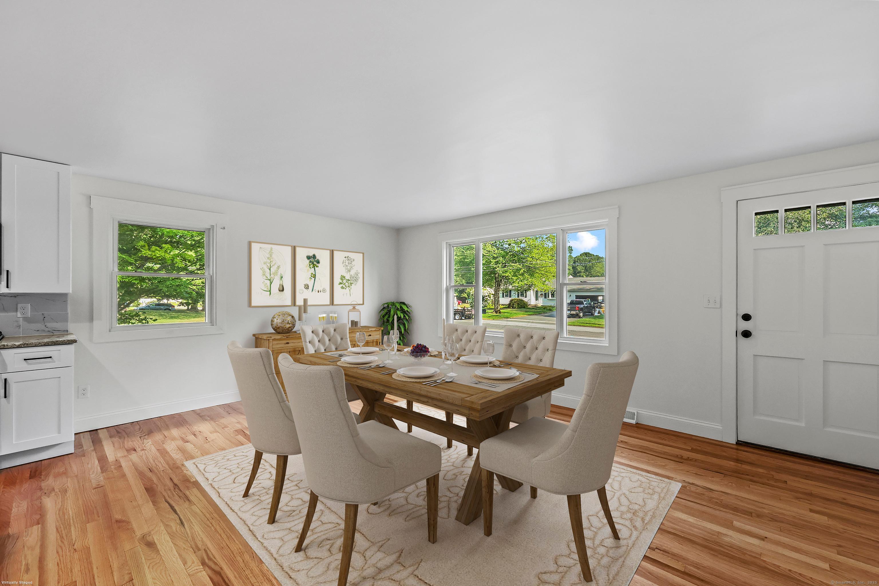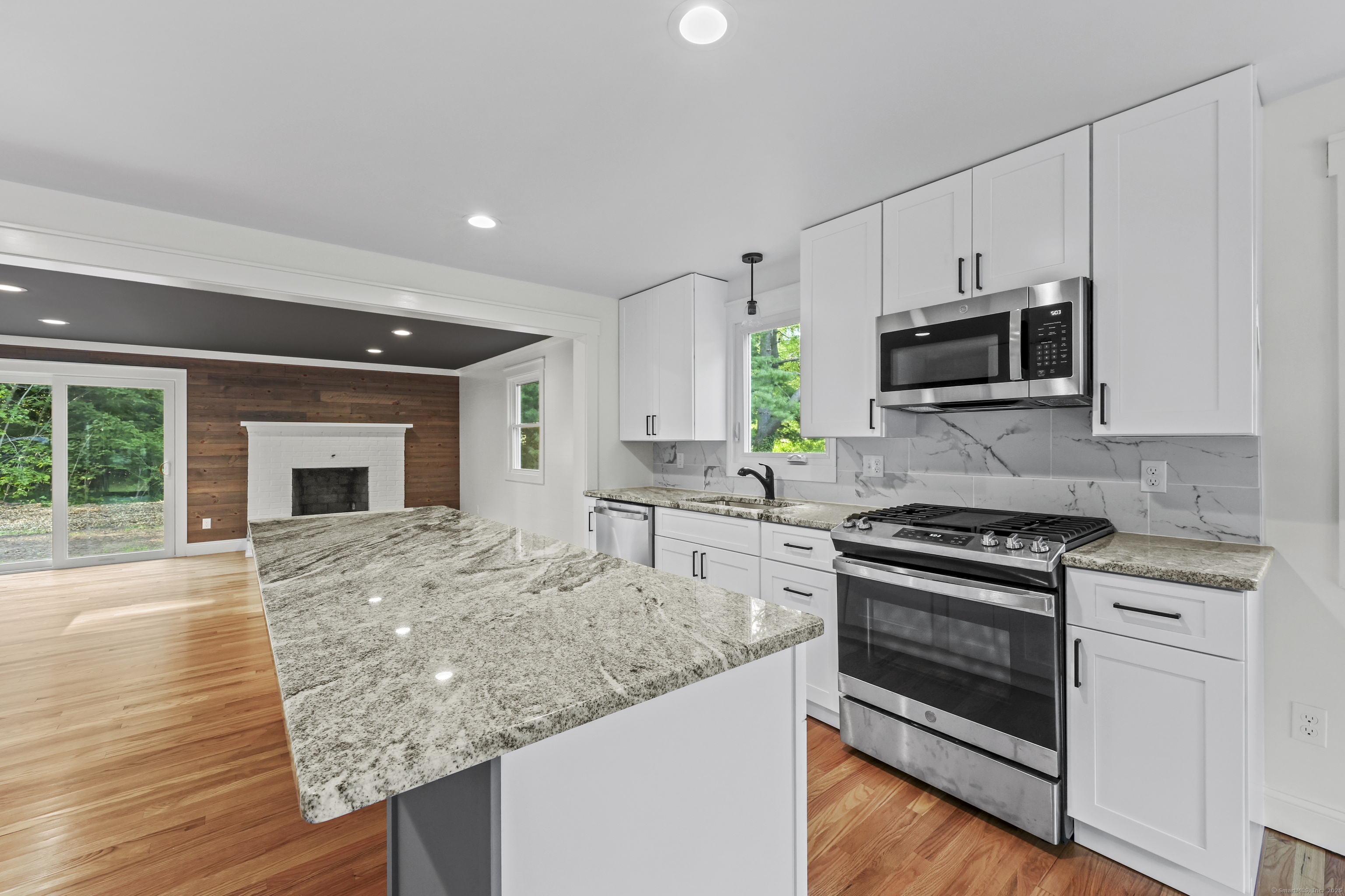 MOVE - IN READY!! STYLISH TOP TO BOTTOM REMODEL! Impressive 3-bedroom, 2-bath home w/attached garage sits on a sidewalk-lined neighborhood street close to shopping, dining, parks and quick highway access. Truly turn-key and move-in ready, this completely remodeled home is ready NOW!! Enjoy city water/sewer and efficient natural gas heat with central air. A bright, open layout showcases DESIGNER touches, thoughtful details, gleaming hardwoods, recessed lighting, and a striking open concept living room with painted brick fireplace, warm wood accent wall and a slider to the level backyard. All-new designer kitchen features a long furniture-style island for prep and seating, granite counters, marble-look backsplash & stainless appliances including a gas range-perfect for everyday cooking & entertaining. Family room is sun drenched accesses garage and backyard. Huge basement area with storage & a room that can be finished as a gym or theater. Both full baths are STYLISH & have been fully remodeled. Thoughtful updates deliver peace of mind: NEW windows/doors, upgraded 200-amp electrical, NEW gas HVAC, upstairs laundry, & a 2+ -year-old roof. Curb appeal pops w/stone-front detail and an attached garage. New Garage door installed. New paver walkway from newly sealed driveway to front door. New steps to level backyard. Loved for top-rated Glastonbury schools, orchards/farm stands, Riverfront Park & vibrant community events-this is the turnkey home you've been waiting for