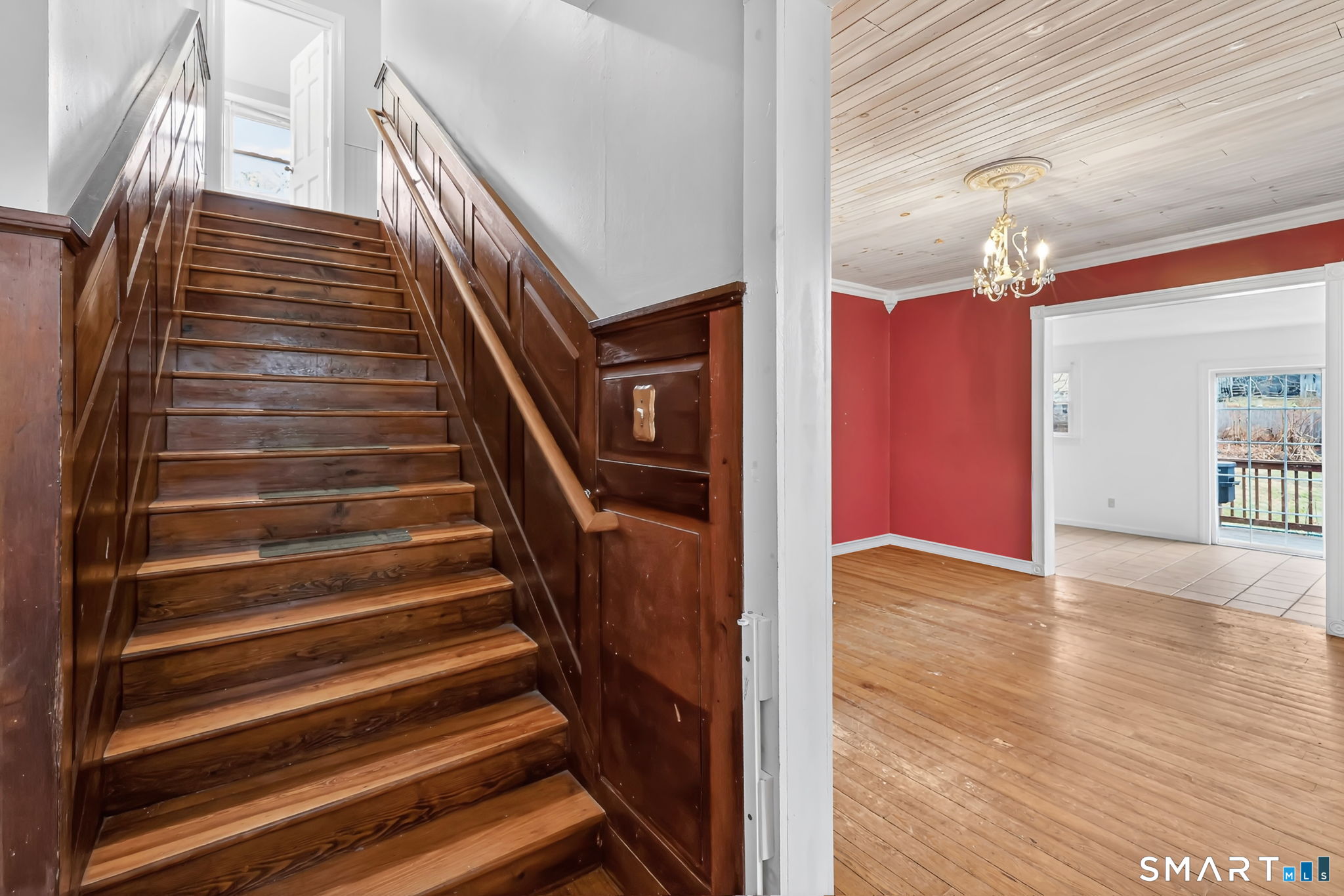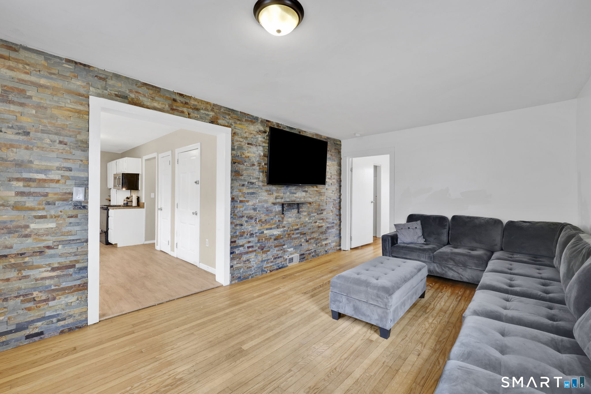 Highest and Best offers by Tuesday 1/20/26 by 6 PM. Set on a combined 1.07 acres, this 1,900 sq ft home offers flexible living with 4-5 bedrooms depending on your layout needs. Hardwood floors run throughout most of the home, with tile in both full bathrooms and durable new LVP flooring in the galley-style kitchen. Entry begins through a functional mudroom with double closets, creating an ideal drop zone before flowing into the kitchen, which connects seamlessly to multiple living areas. Straight ahead is the living room featuring a striking stacked-stone accent wall, while the dining room opens to a bright sunroom with tile flooring. Sliding doors lead from the sunroom to the porch, overlooking the expansive front yard. Custom wide wood stair treads lead to the second floor, where you'll find generously sized bedrooms and an additional full bathroom. The home's orientation is truly unique, while the driveway approach feels like entering from the rear, the main living spaces face away from the street, showcasing the large open yard and providing added privacy. A large basement offers excellent potential for future finishing and includes walk-out access to the driveway. Additional highlights include a new water main, fresh interior paint, and public water and sewer. Conveniently located just minutes from the center of Stafford with easy access to shopping, dining, and everyday amenities.