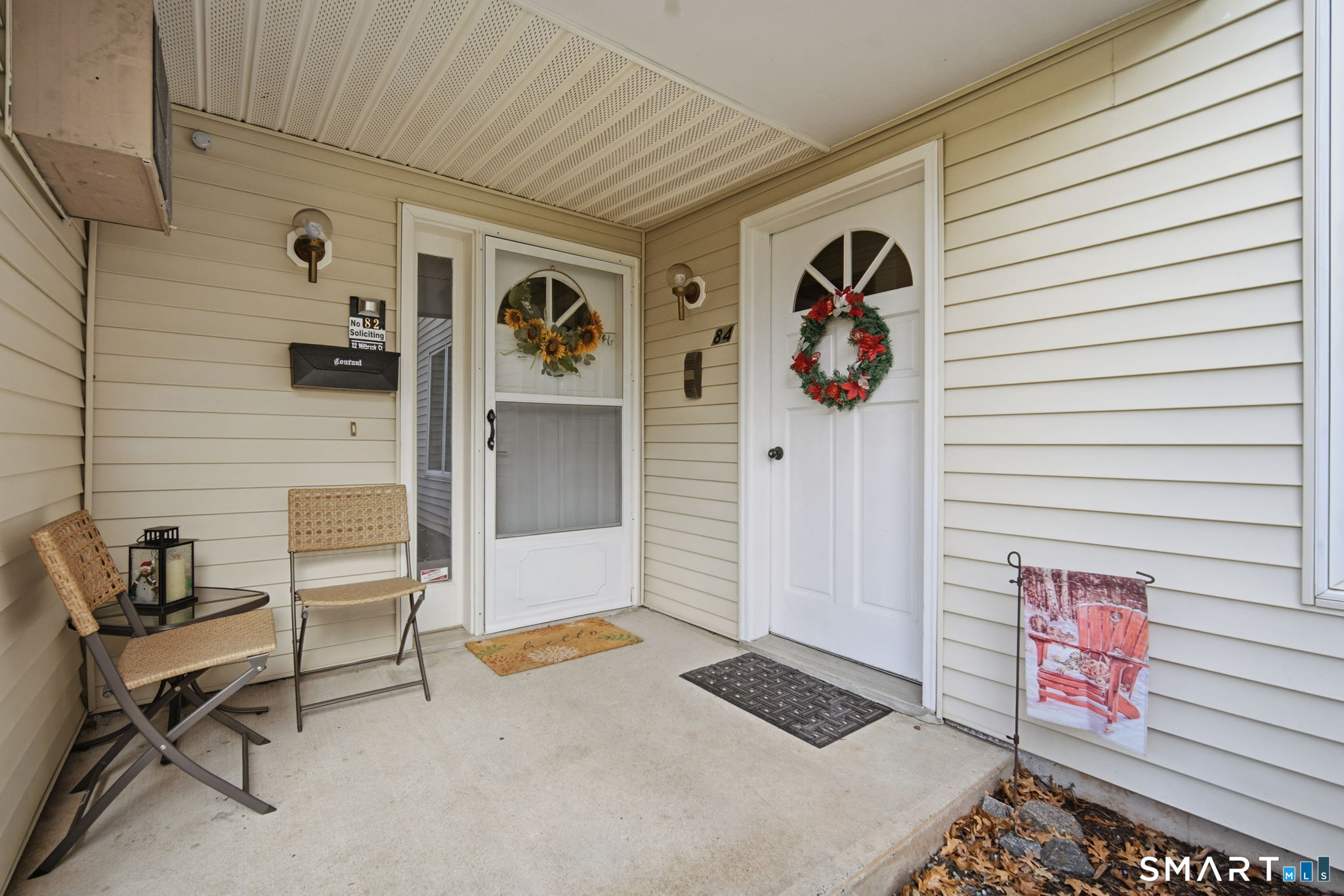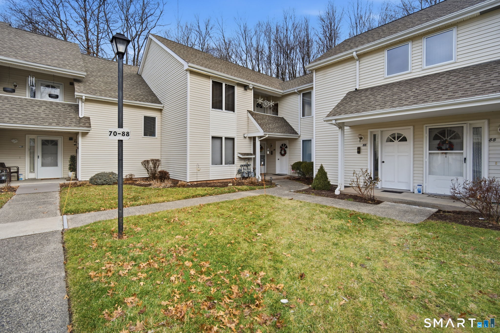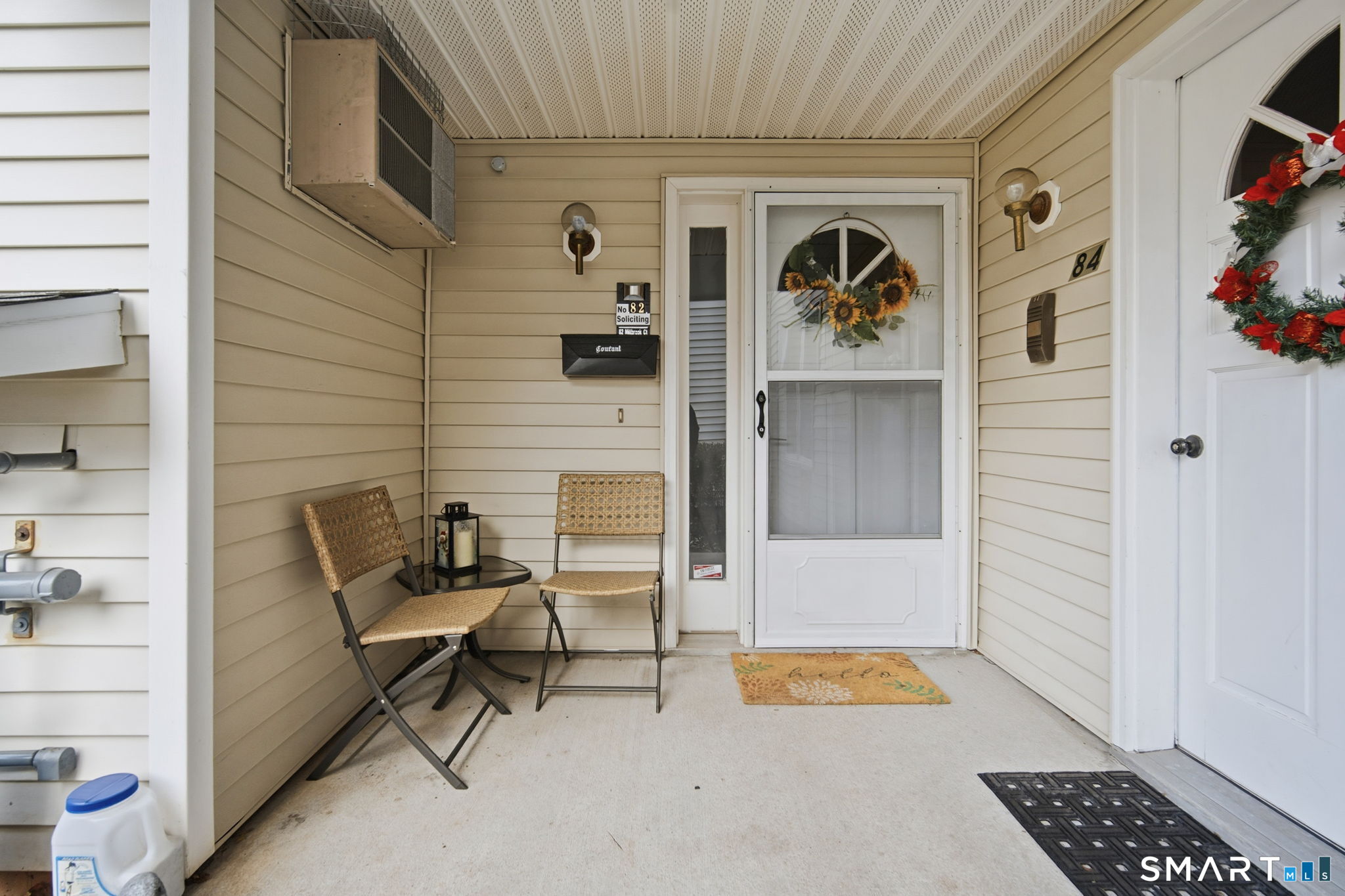 Renovated first-floor, corner-unit, two-bedroom condo in the 55+ Millbrook Village community, offered FULLY FURNISHED and truly turn-key with new appliances and furniture purchased in 2024. High-efficient gas boiler all purchased and serviced recently as well. Enjoy the ease of single-level living with a charming front porch and a private rear deck overlooking peaceful, wooded surroundings that provide exceptional privacy and tranquility. Inside, the kitchen features granite countertops, ample cabinetry, and a large pantry for generous storage. The living and dining area flows seamlessly and is finished with practically new wall-to-wall carpeting, creating a warm and inviting space for everyday living or entertaining. Sliding doors provide direct access to the private deck, perfect for relaxing, wildlife watching, or enjoying the outdoors in warmer months. The updated bathroom is tastefully renovated and includes a walk-in tiled shower for added comfort. Both bedrooms are spacious and feature generously sized closets. Additional highlights include new in-unit washer and dryers. Ideally located close to shopping, dining, and everyday conveniences in Newington, this move-in-ready home offers low-maintenance living in a quiet, well-maintained community. While this owner has decided to spend more time in warm weather, this is the perfect home for anyone wanting a turn-key second home, or wants a fully fresh start. Sale will likely need to be a cash. Ask for details.