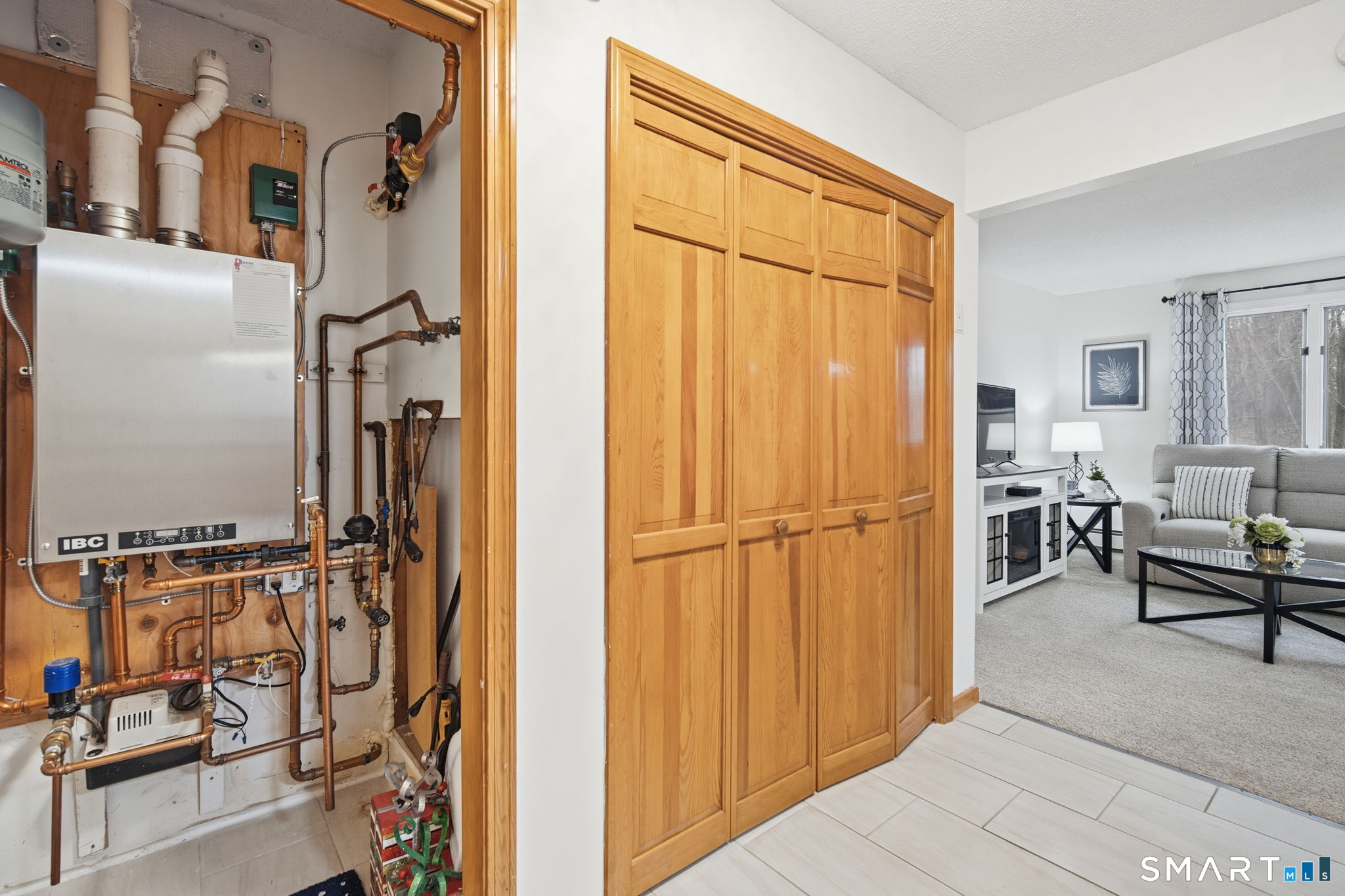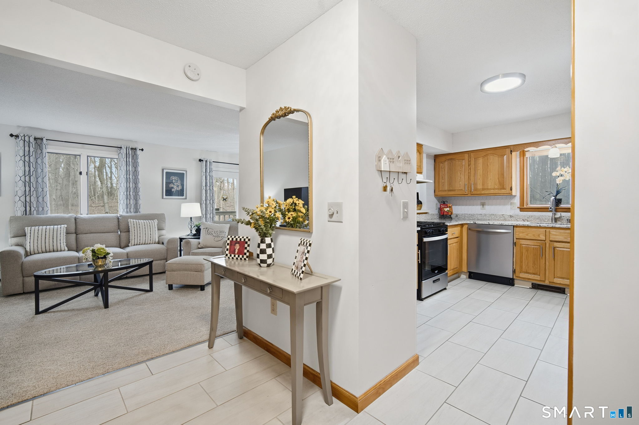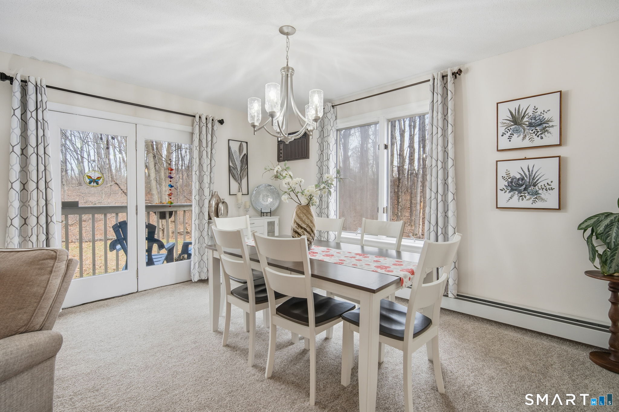 Renovated first-floor, corner-unit, two-bedroom condo in the 55+ Millbrook Village community, offered FULLY FURNISHED and truly turn-key with new appliances and furniture purchased in 2024. High-efficient gas boiler all purchased and serviced recently as well. Enjoy the ease of single-level living with a charming front porch and a private rear deck overlooking peaceful, wooded surroundings that provide exceptional privacy and tranquility. Inside, the kitchen features granite countertops, ample cabinetry, and a large pantry for generous storage. The living and dining area flows seamlessly and is finished with practically new wall-to-wall carpeting, creating a warm and inviting space for everyday living or entertaining. Sliding doors provide direct access to the private deck, perfect for relaxing, wildlife watching, or enjoying the outdoors in warmer months. The updated bathroom is tastefully renovated and includes a walk-in tiled shower for added comfort. Both bedrooms are spacious and feature generously sized closets. Additional highlights include new in-unit washer and dryers. Ideally located close to shopping, dining, and everyday conveniences in Newington, this move-in-ready home offers low-maintenance living in a quiet, well-maintained community. While this owner has decided to spend more time in warm weather, this is the perfect home for anyone wanting a turn-key second home, or wants a fully fresh start. Sale will likely need to be a cash. Ask for details.