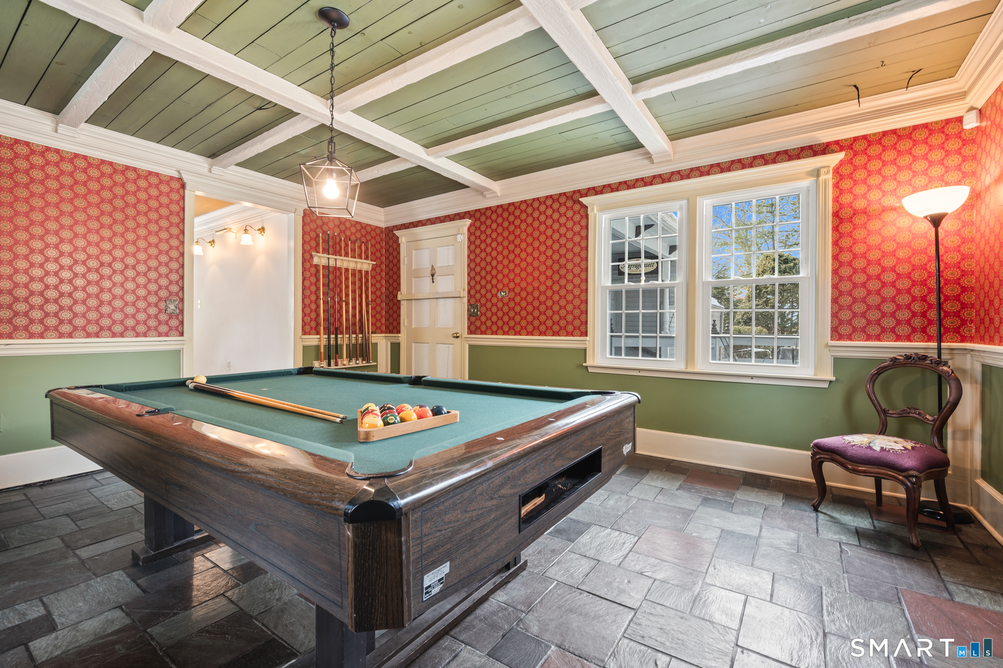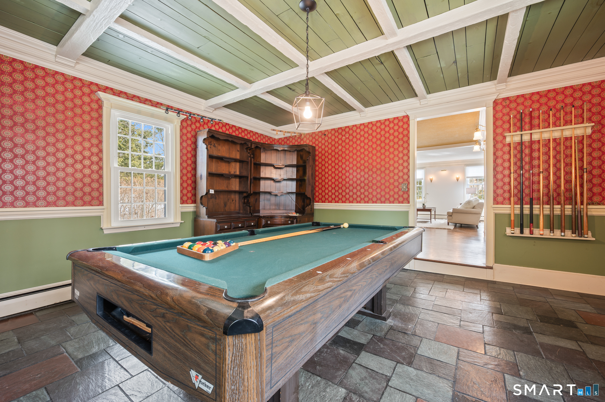 Amazing location in one of Manchester's most sought-after neighborhoods, this Dutch Colonial offers charm, function and flexibility to meet your lifestyle. With ~1,800 sq-ft of living space on the main levels and an additional 768 sq-ft in the lower level, you'll have plenty of room to spread out. As you enter the front door, to your right is the inviting open flow living room-dining area, featuring an impressive fireplace and wood beams. Just beyond, you will be wowed by the reccreation/game room that, if desired, could be repurposed and make a wonderful main level primary and/or guest bedroom. The opposite side of this home delivers a welcoming home office (or formal dining room), an eat-in kitchen and a half bath. Upstairs boasts two generous-size bedrooms--one with 2 walk-in closets! The finished lower level is a super surprise. No need to go out for drinks, just invite everyone over. The built in bar makes for a great gathering spot. Plus, there's space for plenty of sofas to create the ultimate recreation/movie room. Combined with the outdoor yard and gardens, this home is the perfect year-round gathering place. All it needs is you. Come on in and start making great memories. This home is tucked away, close to the Glastonbury line and conveniently located near schools, restaurants, I-384 and so much more!