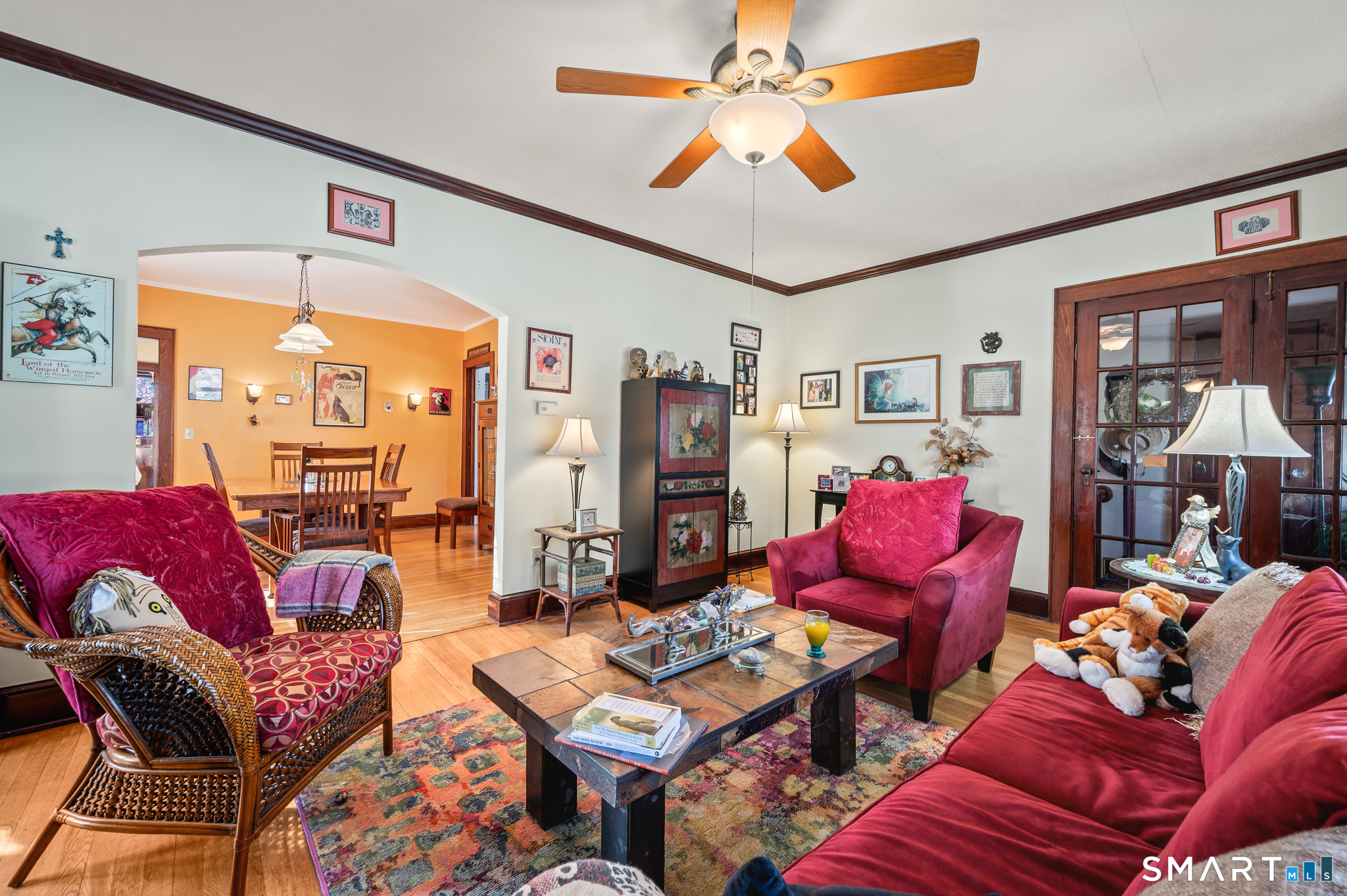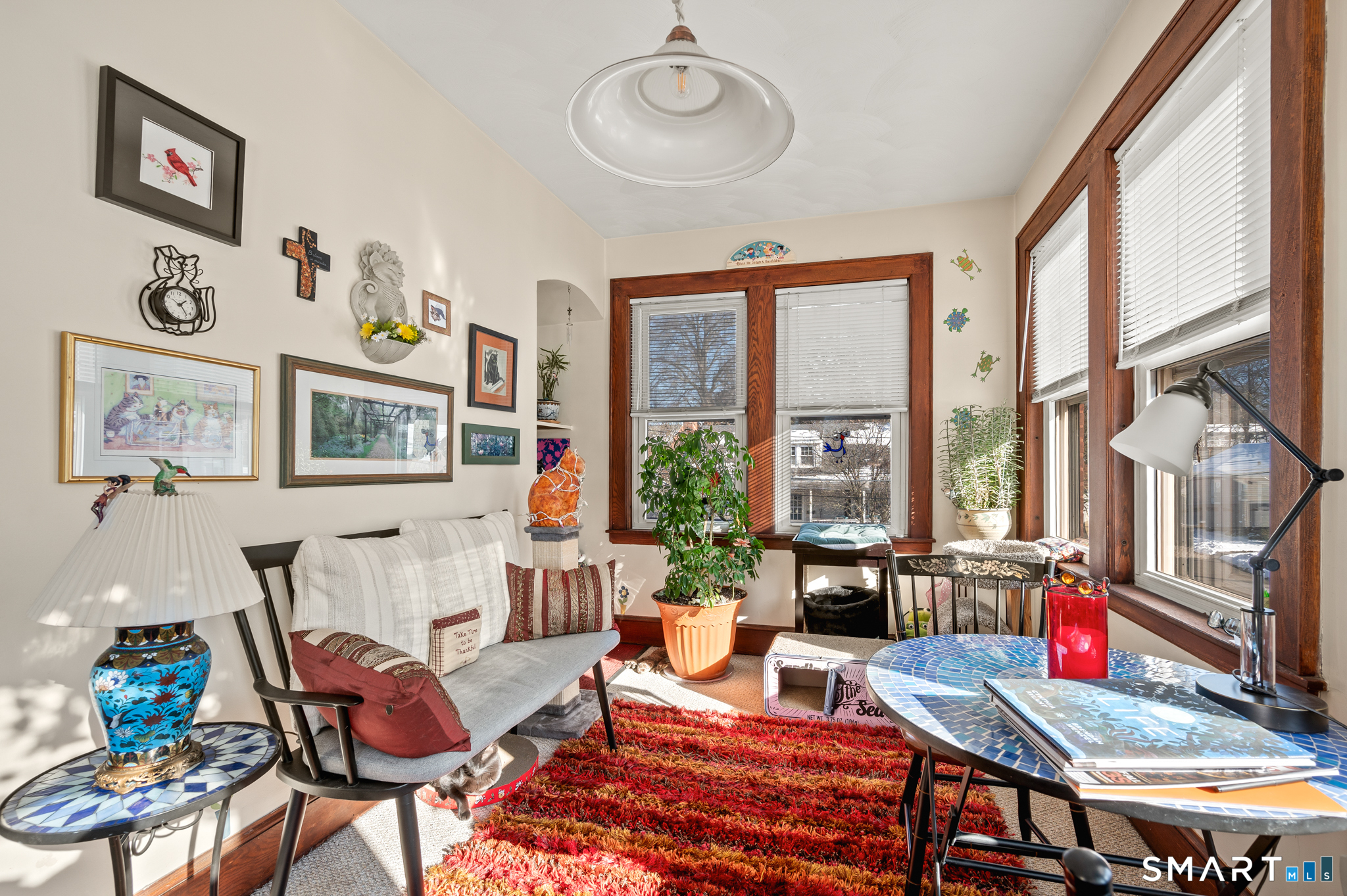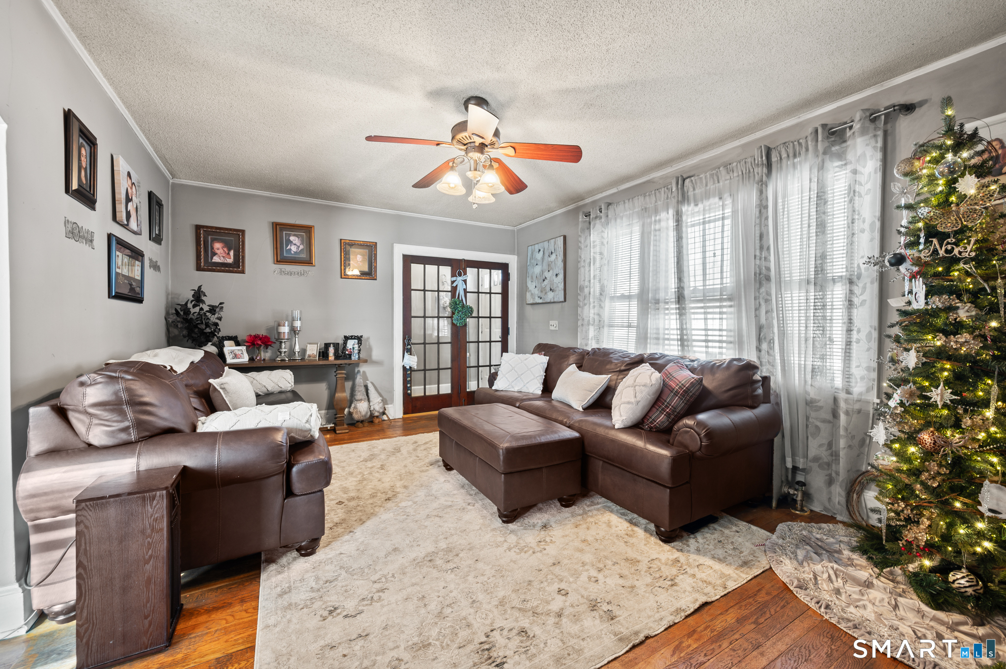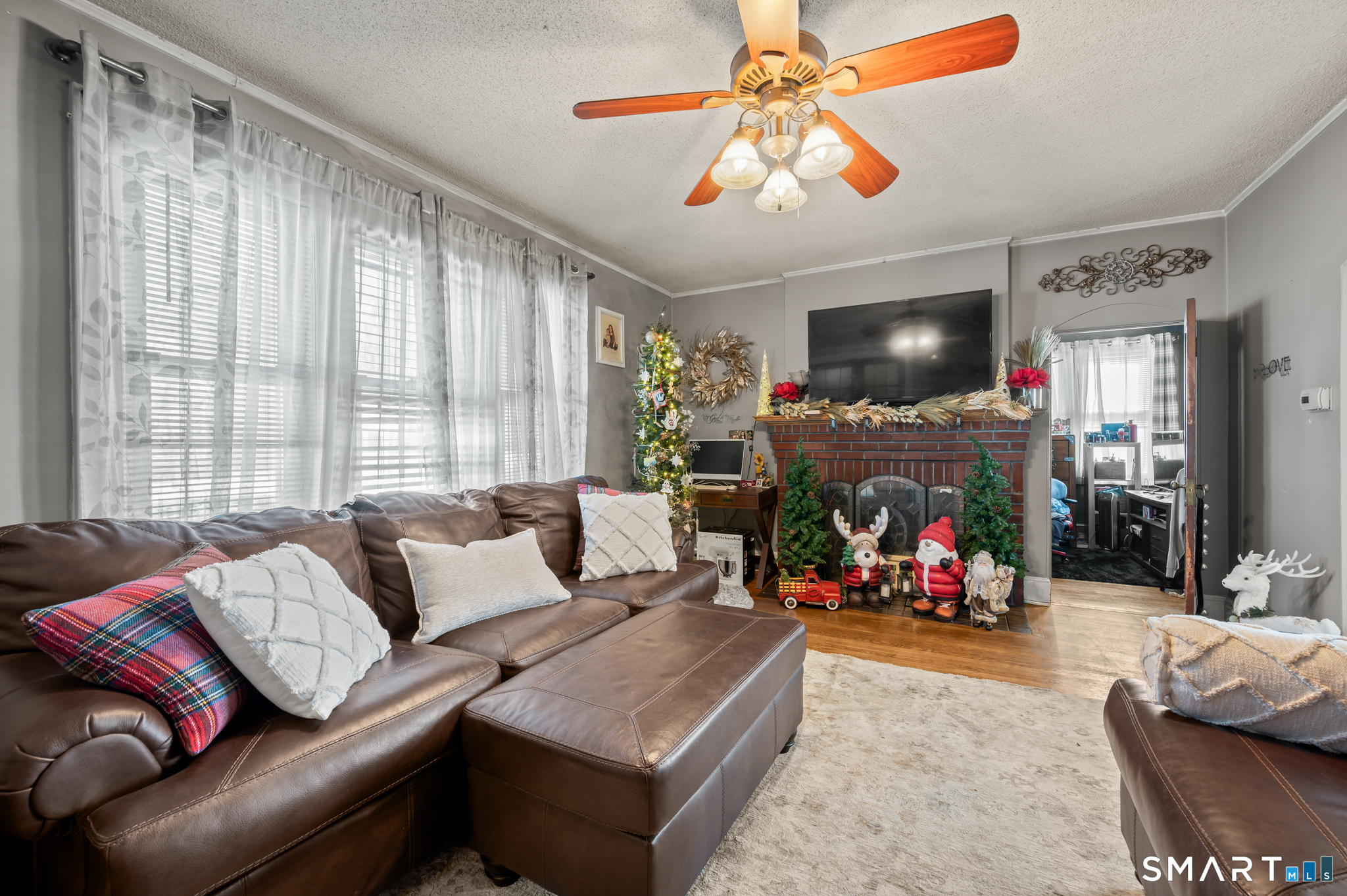 This well-maintained two-family property featuring mirrored unit layouts with hardwood flooring, brick fireplaces, oversized pantries, and generous storage throughout could be your next purchase! The upper unit offers three bedrooms and two full bathrooms, including a finished walk-up attic with a primary bedroom, sitting area, and second full bath. The main living level includes a living room with hardwood floors and brick fireplace, dining room, and kitchen with substantial pantry space. A four-season room provides additional usable space with abundant natural light. The main-level unit features a comparable layout with a living room and brick fireplace, dining room, and kitchen with oversized pantry. Two bedrooms and a full bathroom are located off the kitchen, along with a den accessed from the living room that may be used flexibly. Kitchen and bathroom areas include select modern updates. Both units offer functional layouts, pride of ownership and hardwood flooring throughout. The location is central, convenient to shopping and highways!