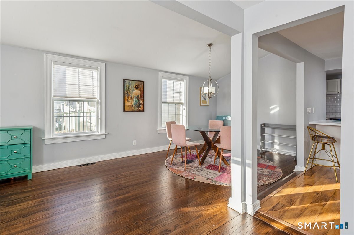 Immaculate updated home that is loaded with charm. Light and bright with an open floor plan. Inviting foyer opens to the Spacious living room with lots of windows. A formal dining room is nicely situated off the kitchen. Updated kitchen with stainless steel appliances, a white tile backsplash and skylight a long with a breakfast bar. There is also a stackable laundry in the kitchen closet as well as a door to the large deck. The master bedroom is conveniently located on the first floor next to a lovely updated bath with Bath fitter tub done in 2024 that gives a nice fresh feel. There is a newer powder room in the entry way . The second floor has two bedrooms. There is a full basement with a workshop and great storage. A brand new furnace and central air conditioning unit are two more features of the fine home. The huge fenced in yard has so much to offer and an abundance of outside summer living. This quiet street is conveniently located a stone throw away from Stew Leonards and lots of other shopping as well as SoNo. Easy access to both I-95 and route 7 with a quick hop onto the Merritt Pkwy.