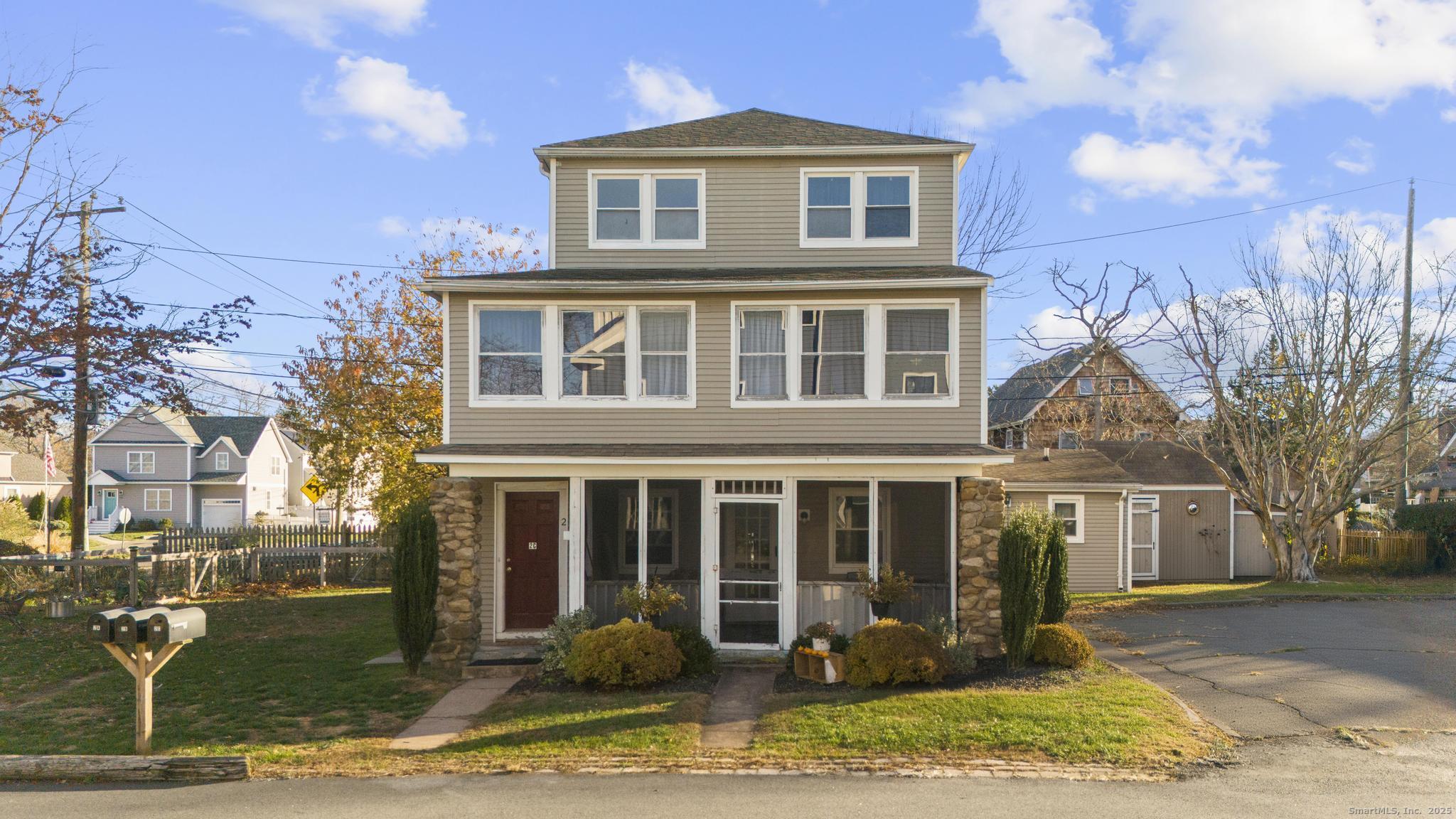 Discover a rare investment opportunity in one of Branford's most desirable shoreline neighborhoods. Located just steps from the water, 2 West Haycock Point presents a well-maintained 3-unit multifamily property ideal for owner-occupants, investors, or those seeking a reliable, income-producing asset near the shoreline. This property offers 3 bright units, each with a private entrance & thoughtfully designed layouts that attract long-term tenants. The home's classic New England charm blends seamlessly with its coastal surroundings. The property includes a large paved driveway with ample off-street parking, exterior storage space & a grassy yard with garden area. Unit Breakdown: 1st Floor (Unit B): Renovated 1 bed/1 bath featuring in-unit laundry, a comfortable living room, & an updated eat-in kitchen w/breakfast bar, new cabinets, stainless steel appliances & modern finishes. 1st Floor(A): 1 bed/1 bath apartment with its own private front porch, perfect for relaxing and enjoying the neighborhood. 2nd Floor Unit (Two Levels)(C): 3 bed/1.5 baths, in-unit laundry, living room, eat-in kitchen & an enclosed front porch. The location delivers true coastal living-distant views of Long Island Sound & walking distance to area beaches, local restaurants, marinas, scenic routes & Foote Park. Minutes to Branford's vibrant town center, easy access to I-95 & the Shore Line East commuter rail. 20 minutes to Yale University & Yale New Haven Hospital.