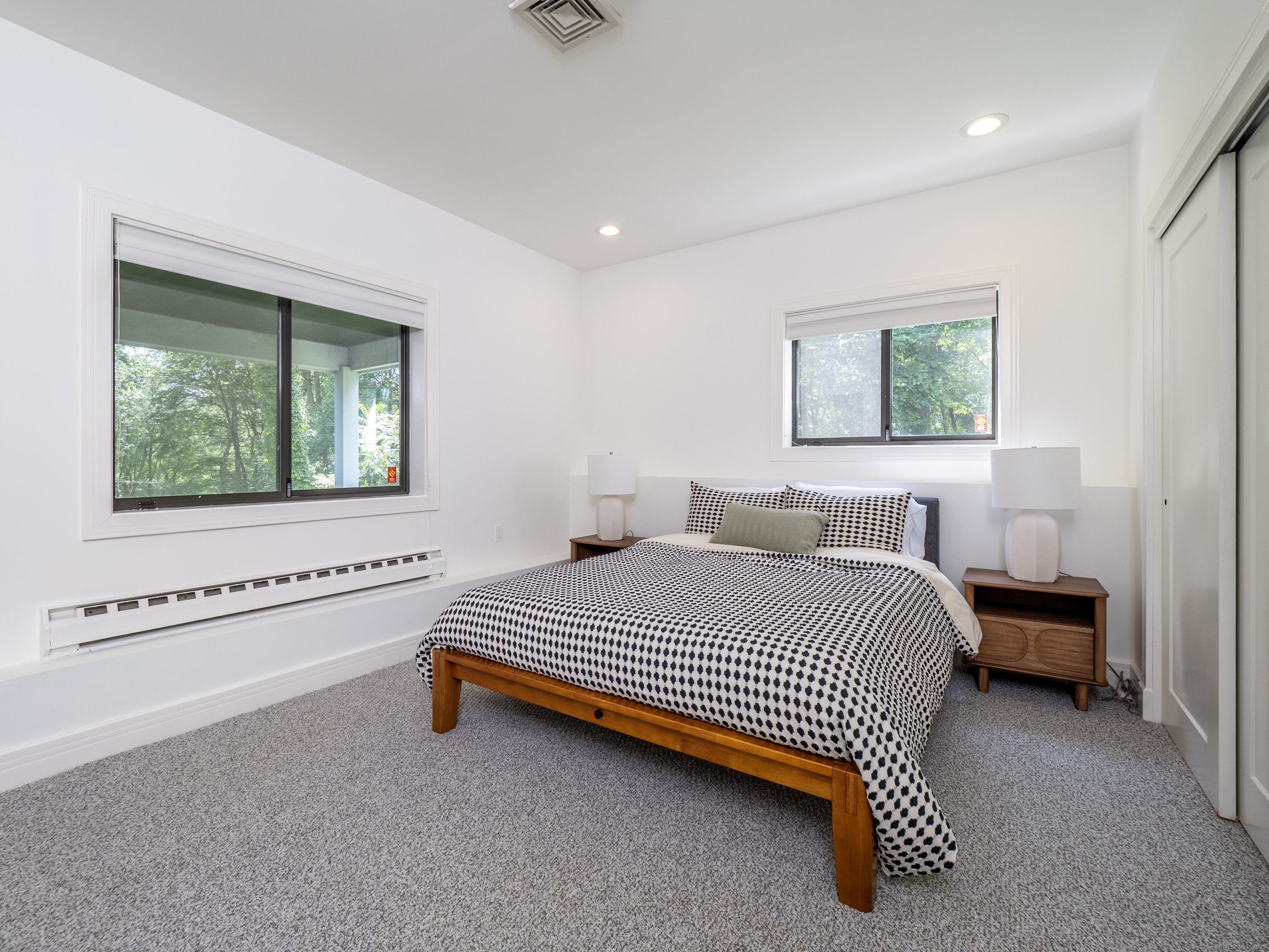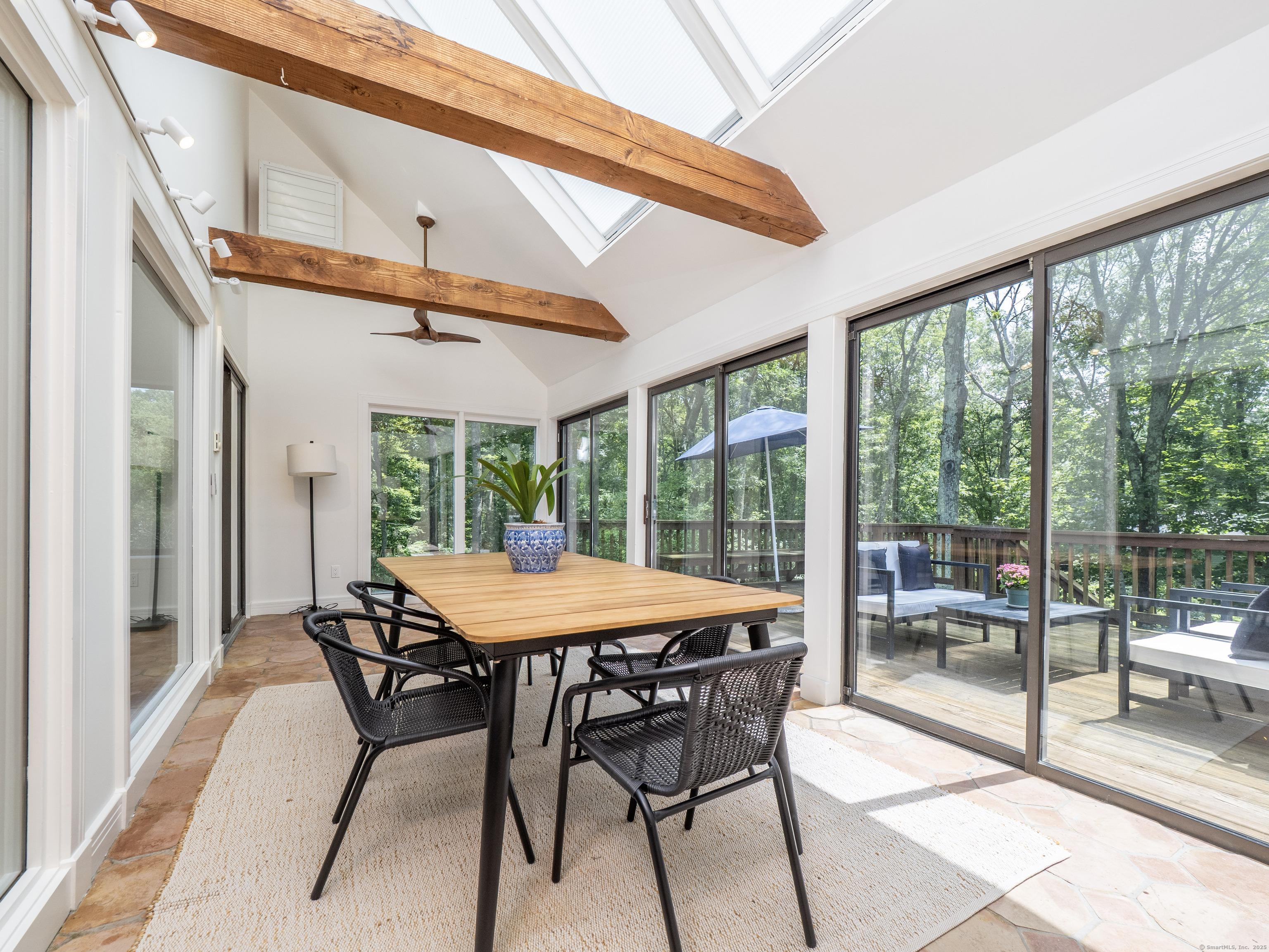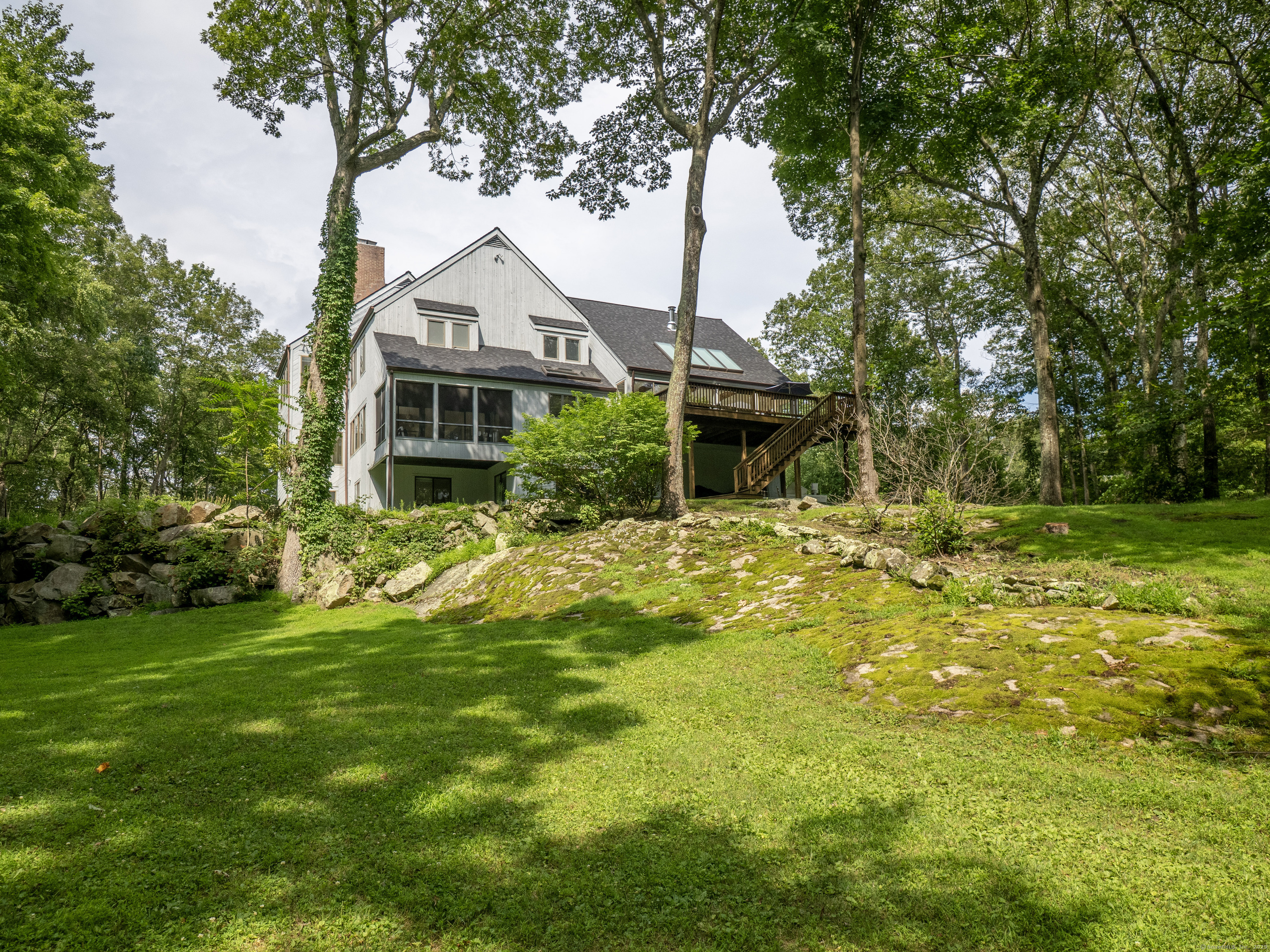 Tucked away on a quiet cul-de-sac in coveted South Wilton, just moments from Wilton and New Canaan town centers, this striking contemporary blends architectural elegance, refined finishes, and serene natural beauty. Surrounded by lush landscaping with sweeping views of Thayer Pond, the property offers a rare private dock: an ideal setting for year-round enjoyment. This friendly, walkable neighborhood is ideal for biking, jogging, or leisurely strolls with your dog. Bathed in natural light, the home features expansive interiors and seamless indoor-outdoor living. The chef's kitchen with granite countertops, gas cooktop, and double ovens opens to a dramatic family room with vaulted ceilings and a wood-stove, perfect for everyday living and entertaining. A sunroom flows effortlessly to the expansive deck, creating a stunning setting for year-round dining with pond views. The first floor office, (possible bedroom?), is adjacent to a full bath. Every bedroom in the home enjoys its own private ensuite bathroom, offering privacy and convenience.The luxurious primary suite features a fireplace, dressing room, and spa-inspired bath.Two additional ensuite bedrooms capture peaceful treetop and pond views.The walkout lower level provides excellent in-law or au pair potential, featuring a spacious recreation room, an ensuite bedroom, and an expansive storage area with large windows for an office, gym, or studio.This home is moments away from top Wilton schools, Lake Club, & Metro North.