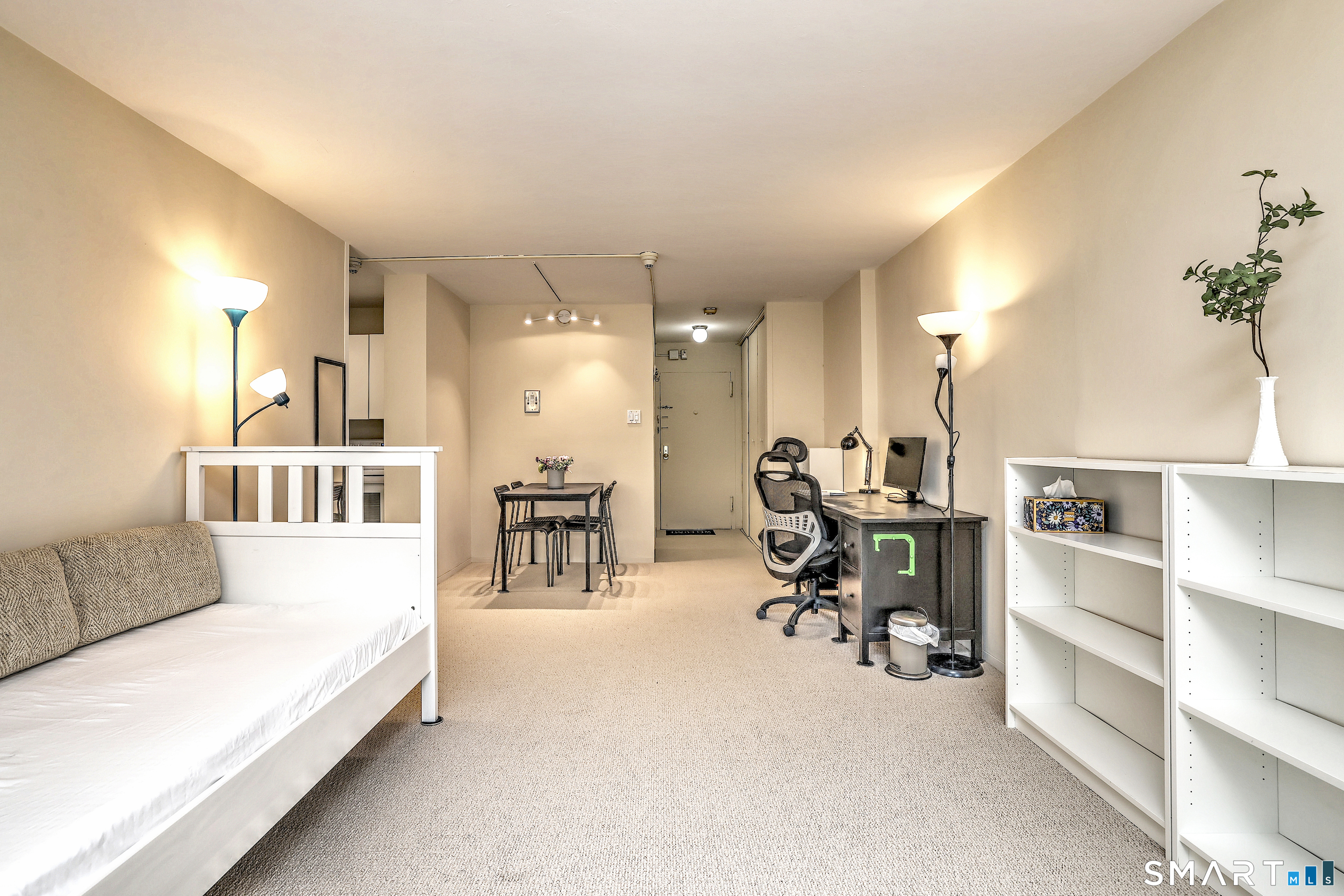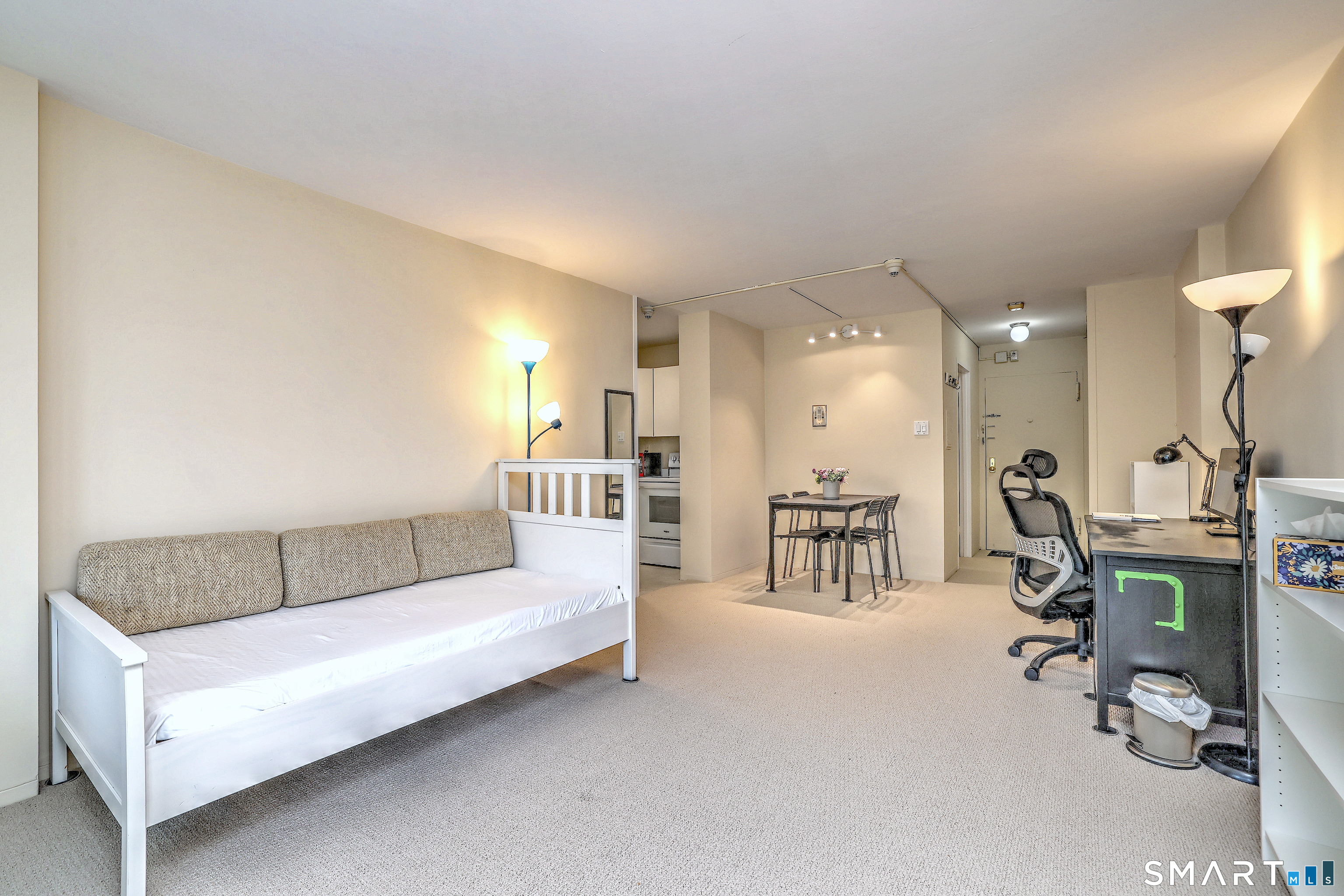 Bright and sun-filled urban studio co-op offering an open-concept layout and effortless city living. This well-maintained residence features a galley kitchen, excellent storage, and a private balcony overlooking York Street-perfect for enjoying the vibrancy of the neighborhood. Freshly painted with brand-new carpeting throughout, the space feels crisp, clean, and move-in ready. Monthly HOA includes taxes, heat, hot water, 24-hour door attendant, on-site management, common room, and laundry facilities. Available furnished or unfurnished. Optional storage unit and off-street parking are available for an additional charge. Don't miss this opportunity to own in one of New Haven's most sought-after locations. Ideally located on the Yale Shuttle bus line and just minutes from Yale New Haven Hospital, Yale University, top-rated restaurants, boutique shopping and public transportation and more! *OWNER AGENT