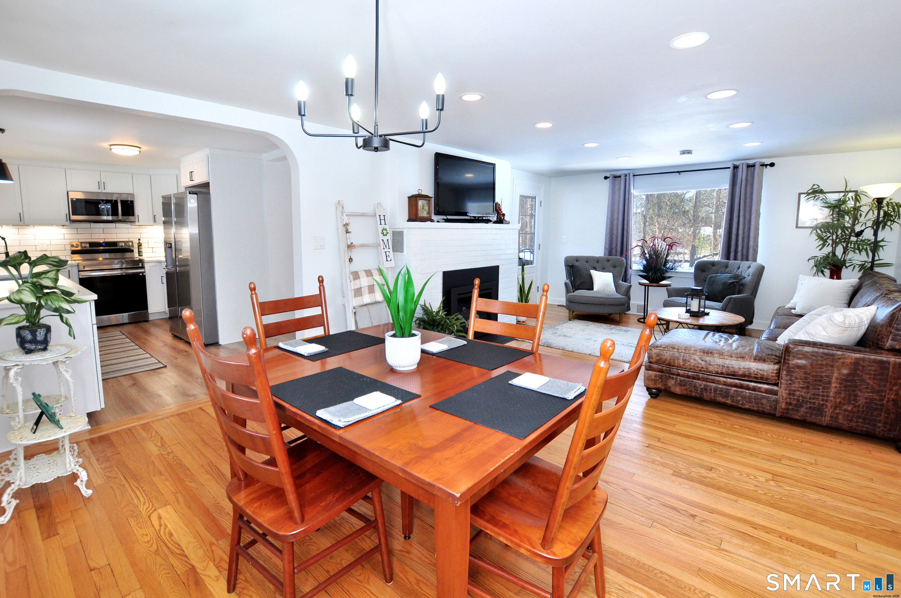 Welcome to 456 Plainville Ave, a beautifully maintained and thoughtfully renovated Ranch set on a spacious, private lot in the heart of Unionville. A new circular driveway and front porch create a welcoming first impression, while a front stone wall and oversized 2 car garage add both curb appeal and functionality. Inside, the home offers a bright, open layout ideal for everyday living and entertaining. The living room features a new propane fireplace insert, and flows seamlessly into a sun-filled dining area. The farmhouse-style kitchen is finished with quartz countertops, updated cabinetry, a counter to ceiling tile backsplash, vinyl plank flooring, and a full suite of stainless-steel appliances. The adjacent mudroom includes laundry and an additional half bathroom. Just down the hallway there are 3 bedrooms and a fully renovated full bathroom. Hardwood floors and neutral finishes throughout make this home truly move-in ready. The heated and cooled finished basement is an impressive lower-level space, providing additional flexibility, ideal for a family room, home office, gym, or guest space. This level includes new carpet, drywall, closet storage, and a pellet stove for added warmth, along with an unfinished room perfect for a workshop or additional storage. Enjoy outdoor living with a covered patio accessible from both the living room and mudroom overlooking your level back yard. A shed additionally provides excellent storage options. Other recent improvements include