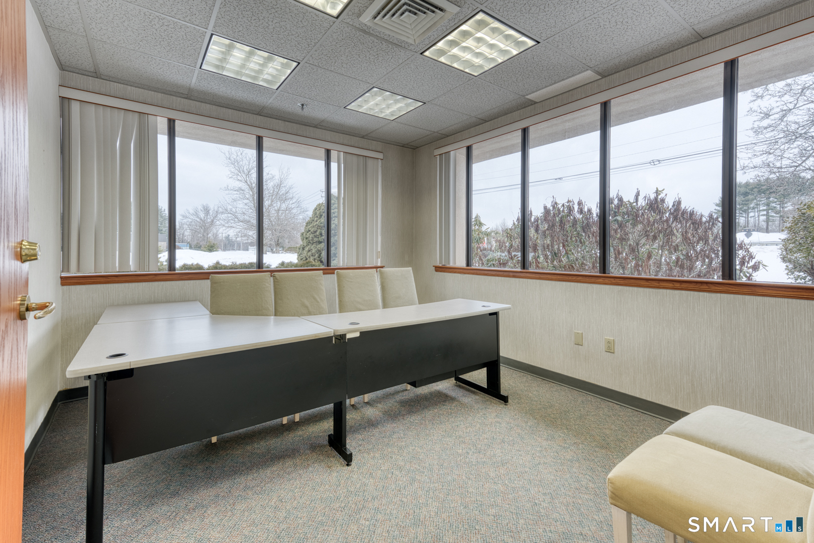 This is one unit in Phelps Place Condominium Association, an attractive 8 unit property in a business area with good access to I-91. The space is built out as office and would be excellent for general or professional office use, research, engineering, sales or training. Monthly condominium charges are $941 and includes yard maintenance, snow removal, water, outside electricity, and management. There are The layout features large room sizes with excellent window exposure. There is a basement area with shelving installed for storage. Excellent opportunity to own your own space rather than paying rent.